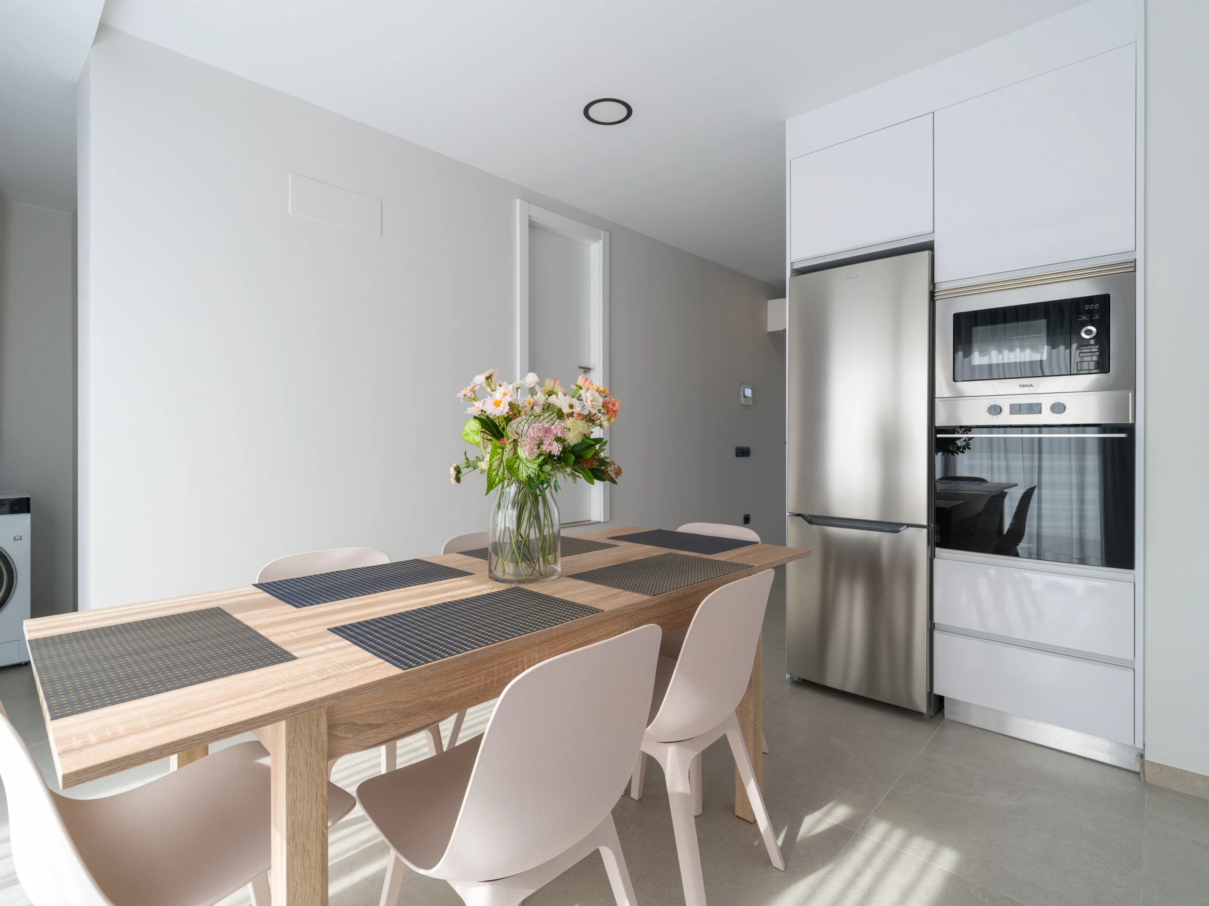 La cuisine américaine est entièrement équipée d'électroménagers de dernière génération, y compris un lave-linge, un sèche-linge, un lave-vaisselle, un four, un micro-ondes, une cafetière, un grille-pain, une bouilloire et un presse-agrumes. Vous trouverez tous les ustensiles de cuisine nécessaires pour préparer de délicieux repas.