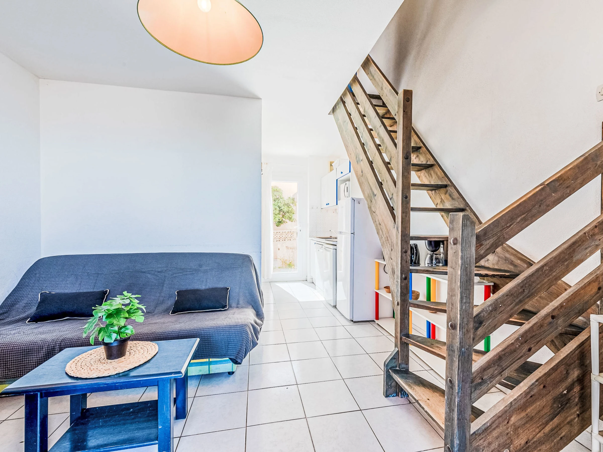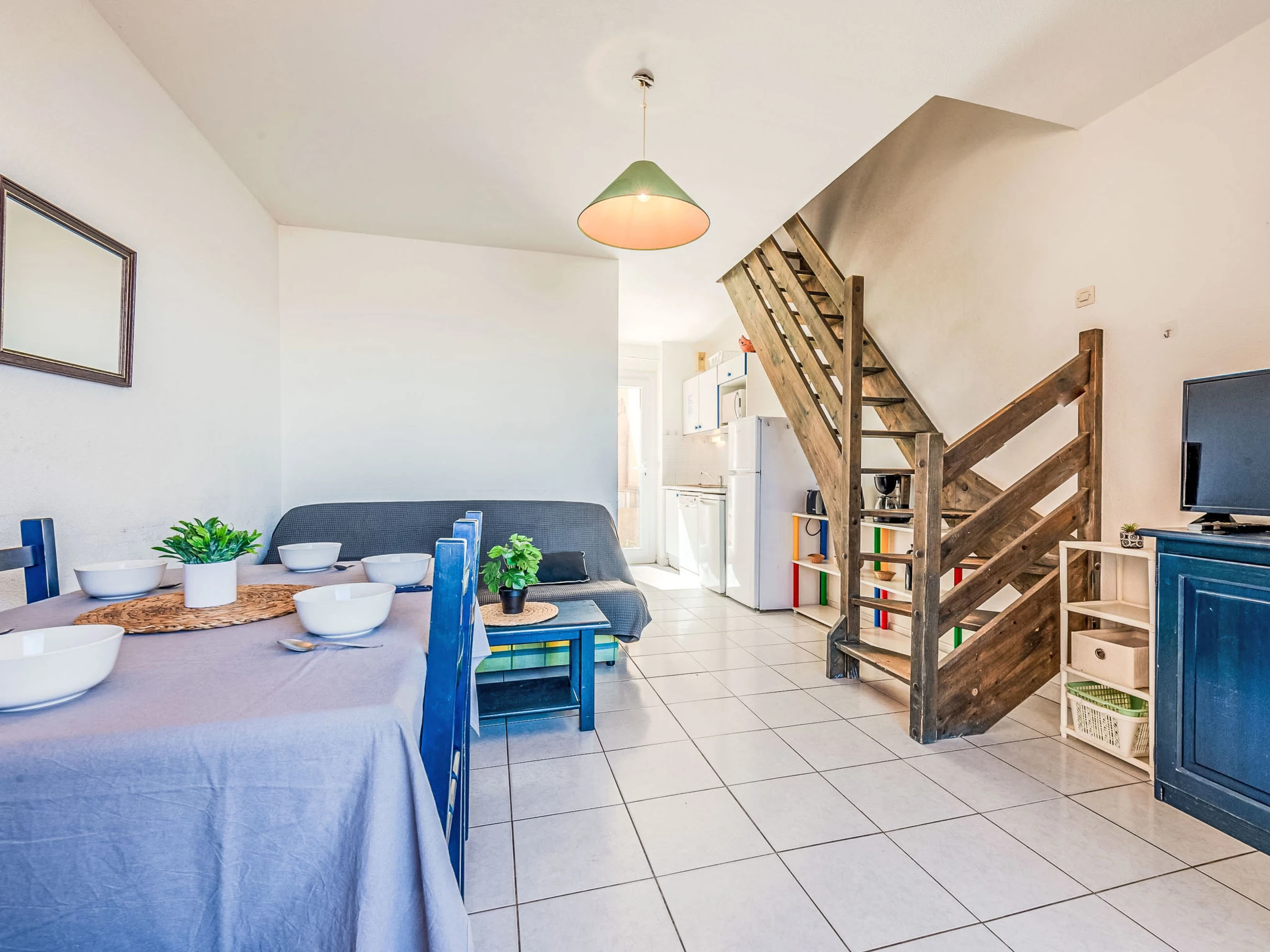 Maison mitoyenne 4 pièces 41 m2 sur 2 niveaux. Aménagement très simple: séjour/salle à manger avec 1 divan-lit (140 cm, longueur 190 cm), TV (écran plat). Sortie sur la terrasse. 1 chambre avec 1 grand-lit (140 cm, longueur 190 cm). Coin cuisine (4 plaques de cuisson, lave-vaisselle, micro-ondes, cafetière électrique). Chauffage électrique. À l'étage supérieur: 1 chambre avec 1 grand-lit (140 cm, longueur 190 cm). Sortie sur le balcon. 1 chambre avec 1 lit (90 cm, longueur 190 cm). Salle de bains, WC séparé. Terrasse 12 m2. Meubles de terrasse. A disposition: Internet (Connexion WIFI, gratuit). Veuillez noter: détecteur de fumée.