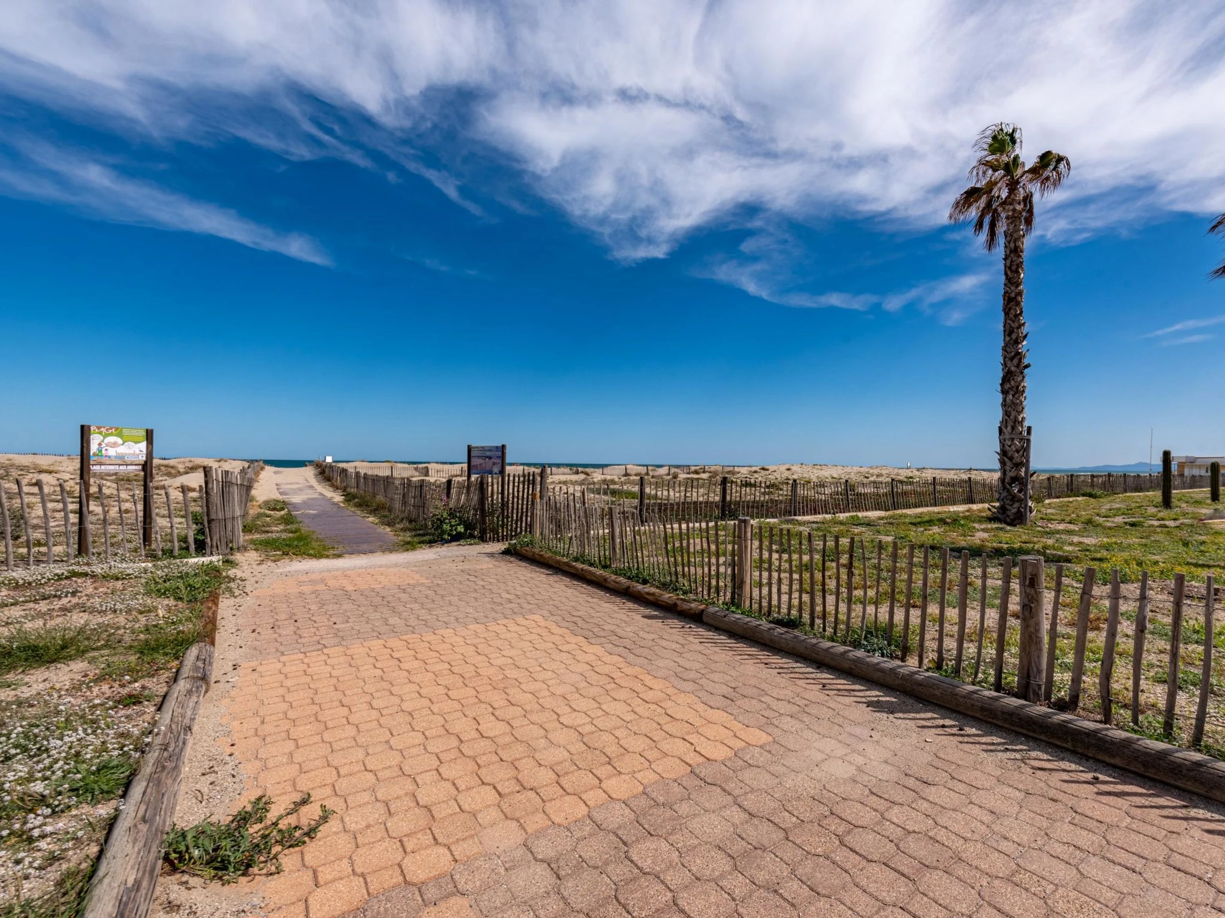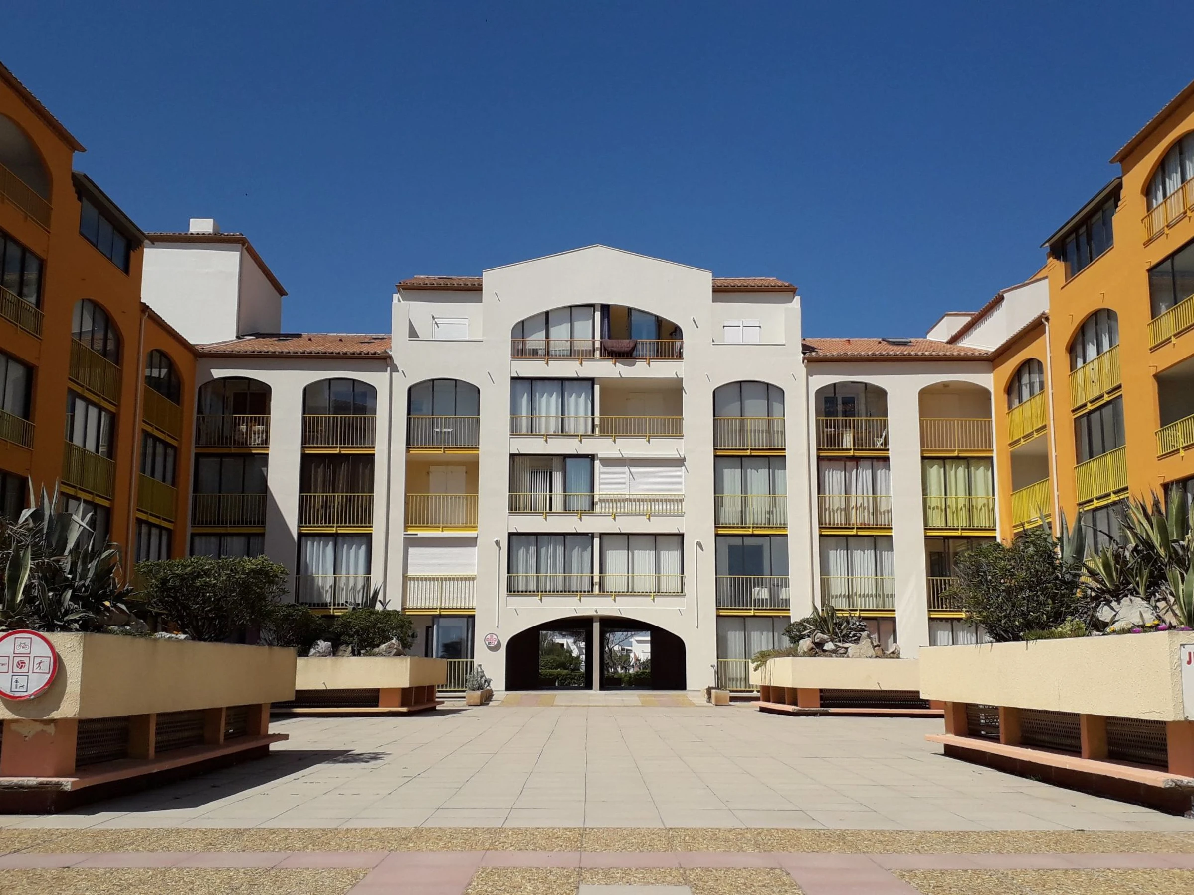 Résidence "Palm Beach", de 3 étages. 300 appartements dans la résidence. Dans le quartier de La Grande Plage, à 100 m de la mer, à 100 m de la plage. Parking public 150 m. Magasins, magasin d'alimentation, centre commercial, restaurant, bar, café, location de bicyclettes 150 m, arrêt de bus "Les Marines" 650 m, gare ferroviaire "de la Franqui" 15 km. Port plaisance 4 km. Attractions à proximité: Aqualand Port Leucate 2 km, Réserve Africaine de Sigean 41 km, site des dosses 4 km, téléski nautique 5 km. Les lacs connus sont facilement accessibles: Etang de Leucate ou salses 8 km, Lac de Villeneuve de la Raho 28 km. Région de randonnées: Sentier du guetteur 8 km, la forteresse de salses 15 km, Sentier du littoral Collioure 40 km. Veuillez noter: D’autres appartements sont également proposés à la location dans cette maison de vacances.