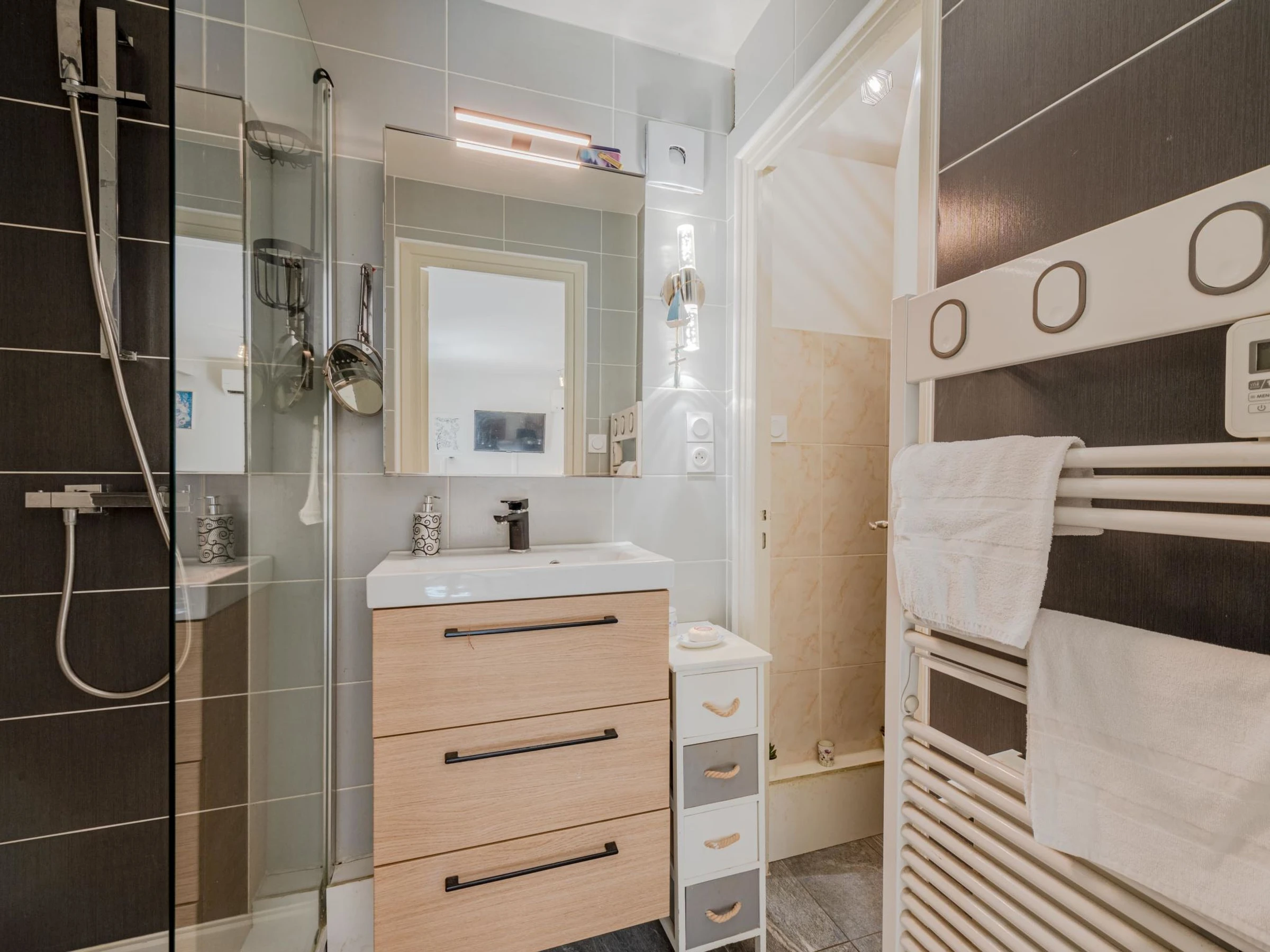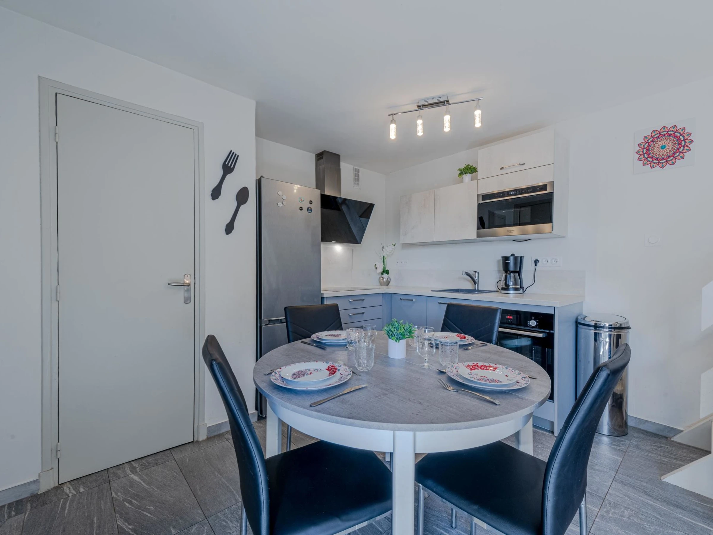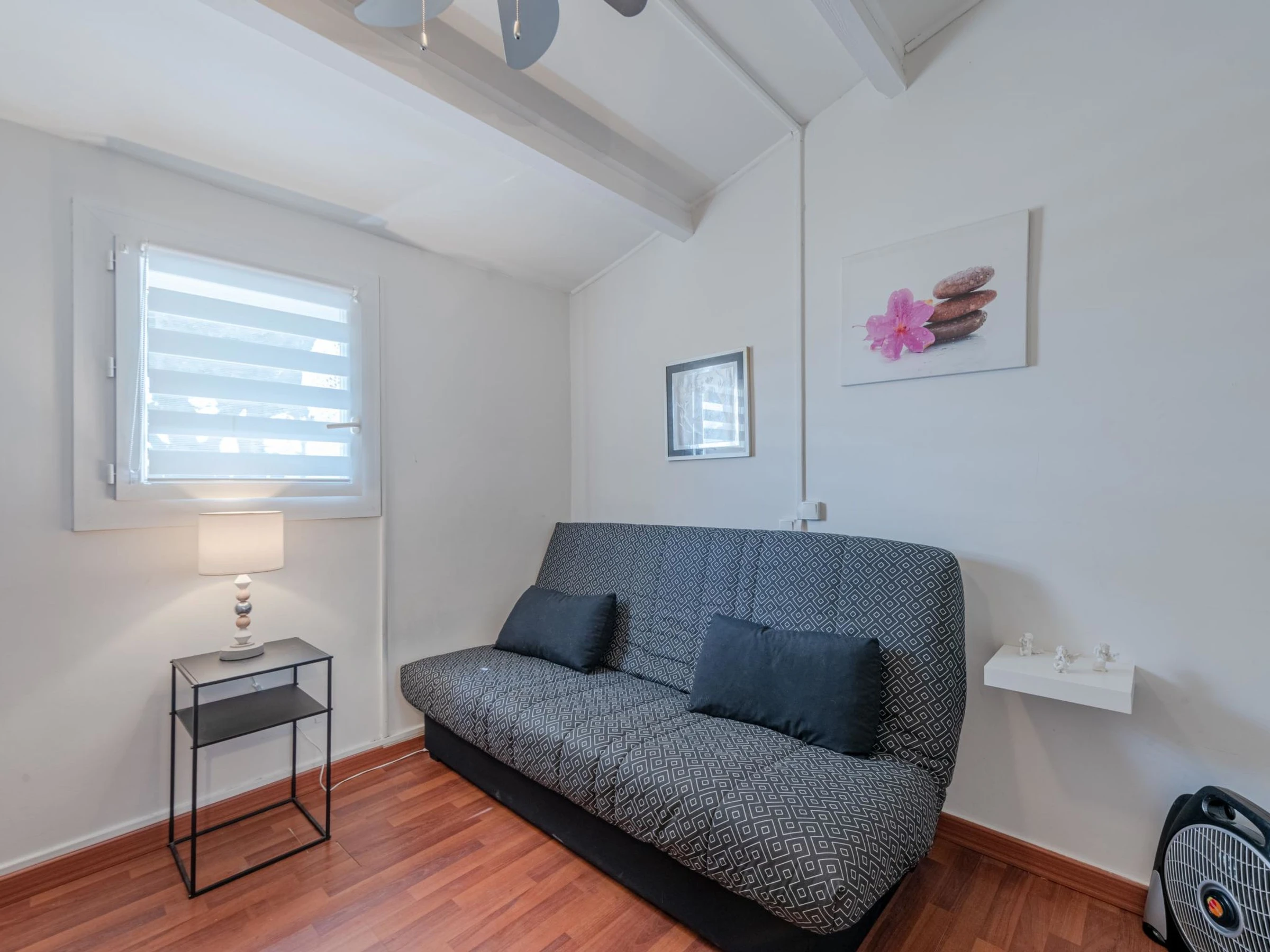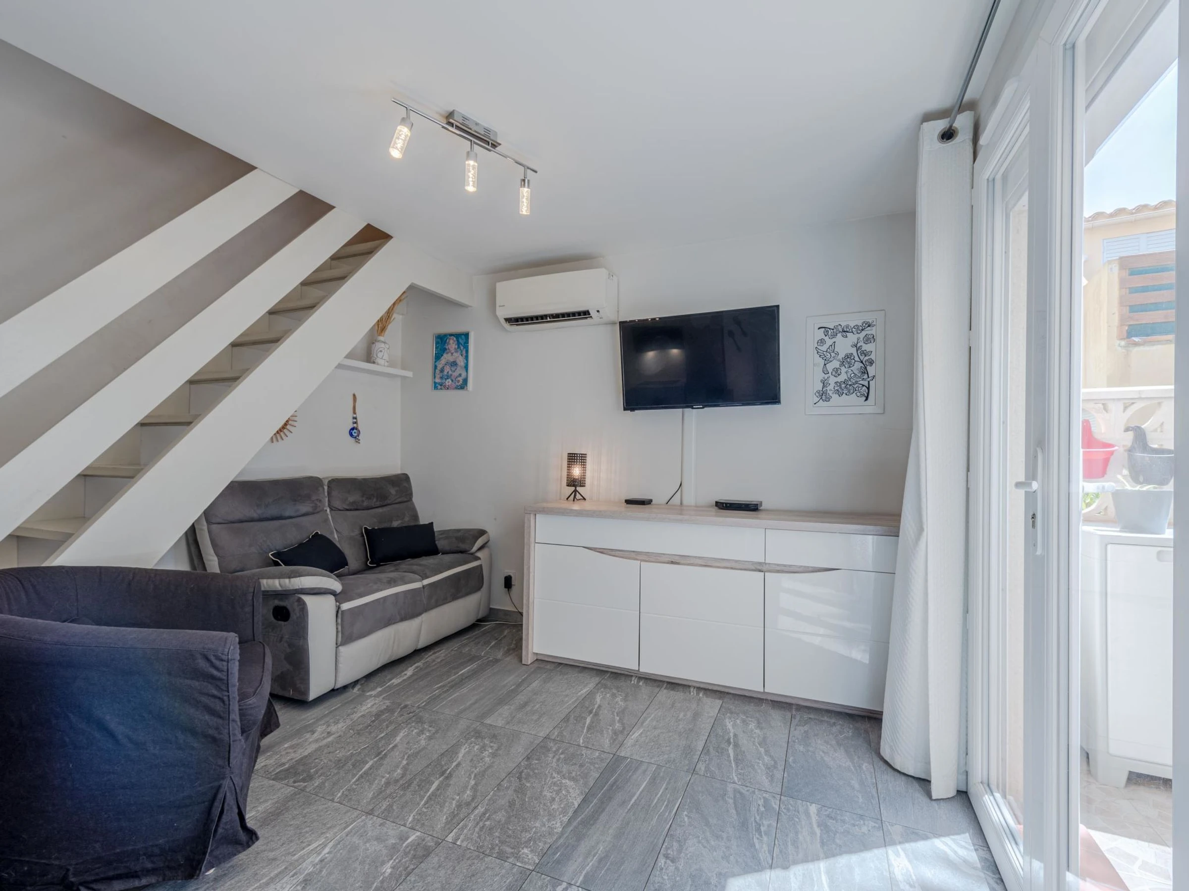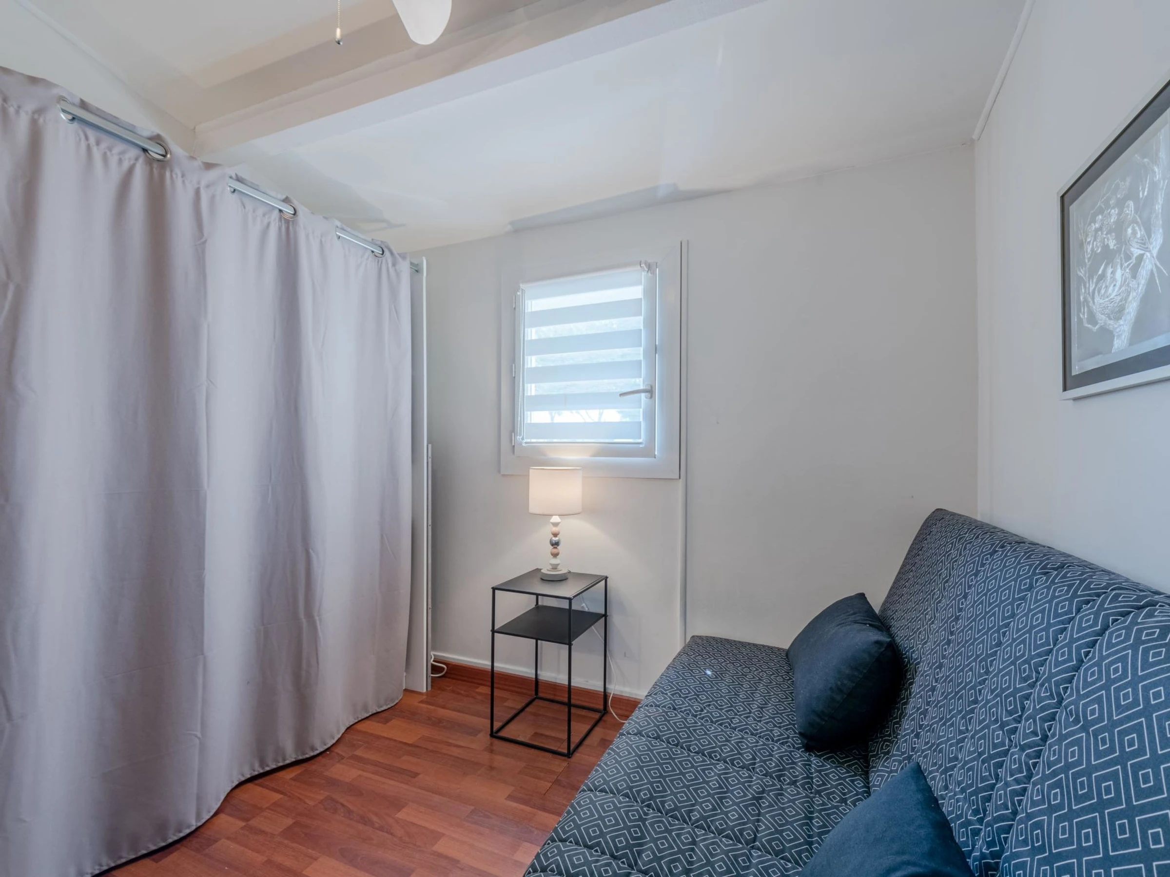 Apt 3 pièces 40 m2 sur 2 niveaux, au rez-de-chaussée. Aménagement agréable: séjour/salle à manger avec TV (écran plat). Sortie sur la terrasse. 1 chambre avec 1 grand-lit (1 x 160 cm, longueur 200 cm). Cuisine ouverte (four, lave-vaisselle, 3 plaques à induction, grille-pain, bouilloire électrique, micro-ondes, cafetière électrique). Douche, WC séparé. Air-conditionné. À l'étage supérieur: 1 chambre avec 1 divan-lit double (1 x 140 cm, longueur 190 cm). Terrasse 15 m2. Meubles de terrasse. A disposition: lave-linge. Internet (Connexion WIFI, gratuit). Place de parking. Veuillez noter: 1 animal/ chien de petite taille autorisé. Détecteur de fumée. Annonce d'un particulier (art 155, IV du CGI). [hidden]