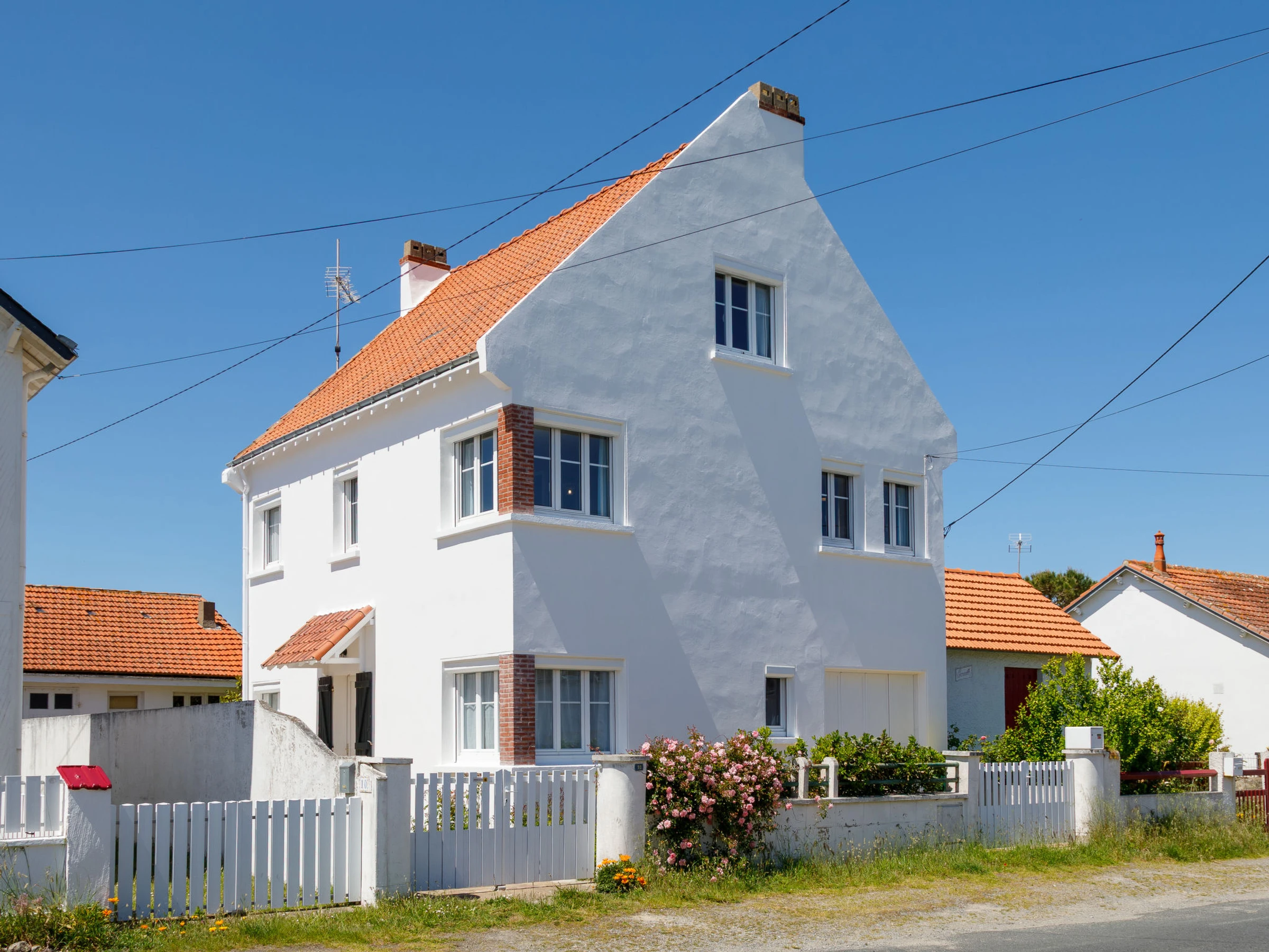 Grande maison "Charme de la Plage de Port Lin", rénovée en 2025. Dans la localité, à 700 m du centre de Le Croisic, quartier résidentiel, à 490 m de la mer, à 490 m de la plage. A usage privé: terrain 500 m2 (clôturé) avec pelouse, place de parking (pour 2 voitures), garage individuel. Magasins, supermarché 590 m, restaurant 490 m, location de bicyclettes, arrêt de bus 510 m, gare ferroviaire "Le Croisic (terminus TGV)" 510 m, plage de sable "Port Lin" 490 m. Port plaisance 700 m, terrain de golf (9 trous) 3.5 km, ecole de voile 1.5 km, tennis 490 m. Attractions à proximité: Port du Croisic (cité de caractère) 700 m, Le Pouliguen 7 km, Guérande et les Marais Salants 11 km, La Baule 13 km, La Turballe-Piriac sur Mer 21 km, Vannes-Nantes 85 km. Région de randonnées: GR34. Le propriétaire n'accepte pas les groupes de jeunes.