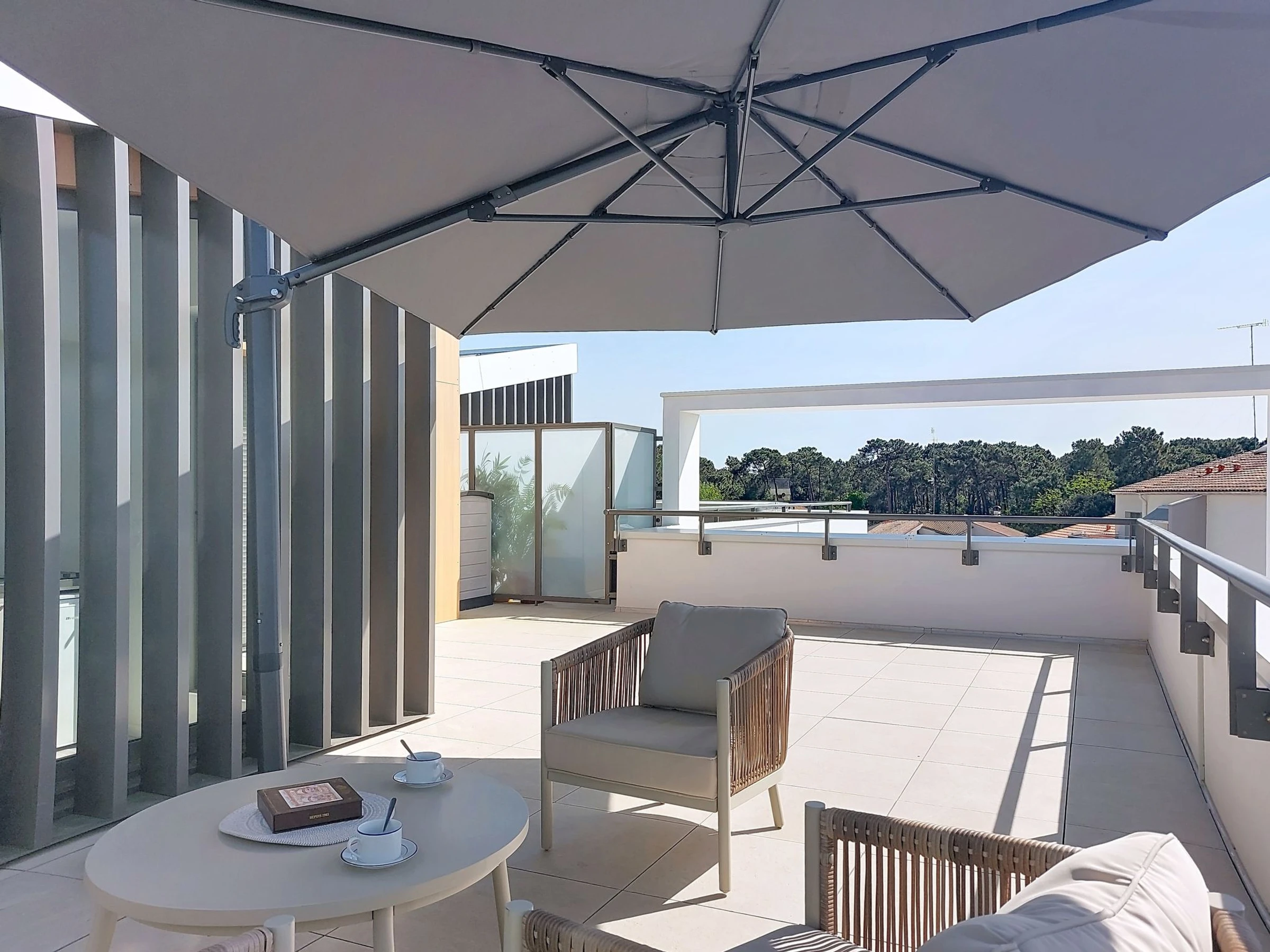 La Palmyre: Résidence "Veleda", année de construction 2025. Situation centrale, animée, à 800 m de la mer, à 800 m de la plage. Infrastructures de la résidence: ascenseur, réduit pour bicyclettes. Magasins, magasin d'alimentation 100 m, restaurant 30 m, bar 70 m, boulangerie 25 m, café 20 m, arrêt de bus "Arrêt office de tourisme" 300 m, gare ferroviaire "Royan" 19 km, plage de sable "Plage de La Palmyre" 800 m. Port plaisance 800 m, terrain de golf (9 trous) 2.5 km, ecole de surf 800 m, centre équestre 2 km. Attractions à proximité: Zoo de La Palmyre 1.1 km, Hippodrome - La Palmyre 900 m, Port La Tremblade - Boyard / Ile d'Aix 11 km, Luna Park (Juillet - Août) 4.5 km, Zagal Cabaret - La Palmyre 1.1 km, Golf Resort La Palmyre 2.5 km. Le propriétaire n'accepte pas les groupes de jeunes. La remise des clés a lieu à l’agence de La Palmyre. Environnement très sensible au bruit. Silence et bonne tenue exigés.