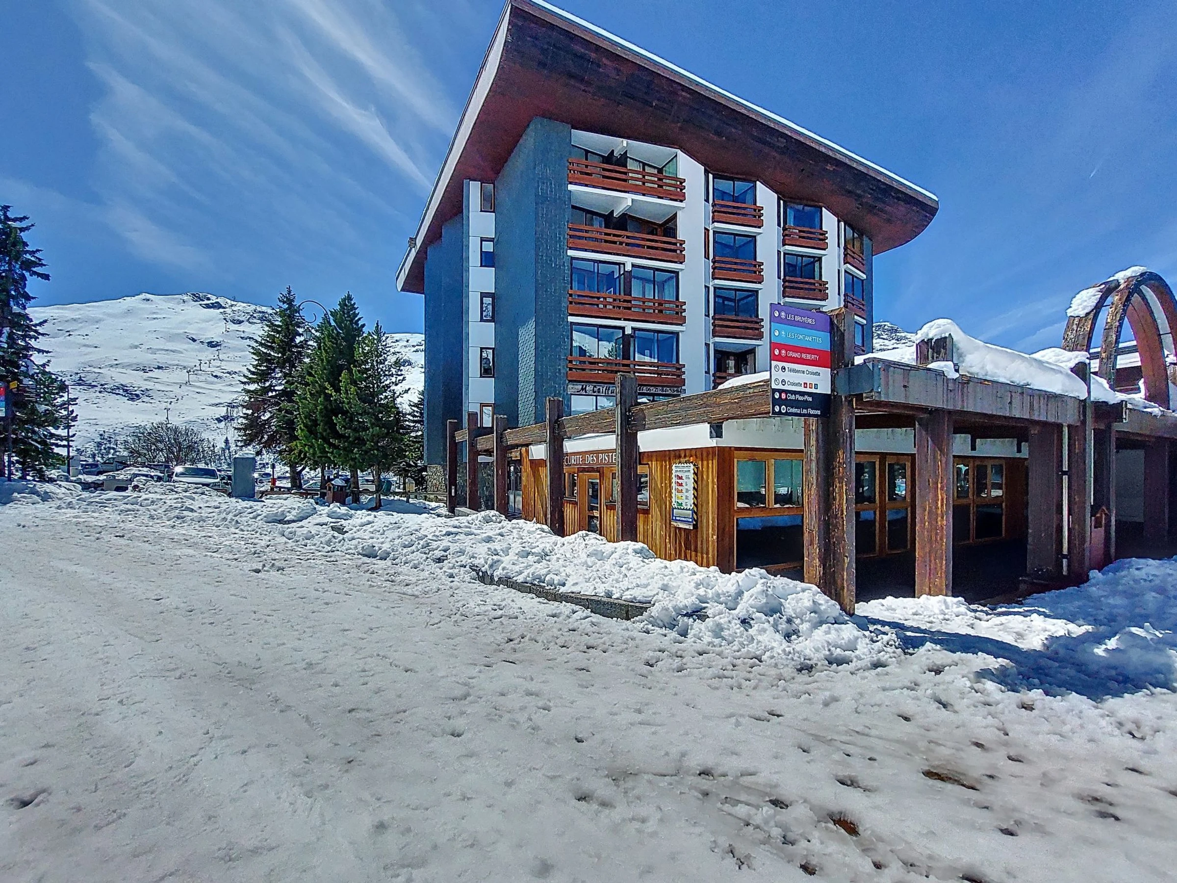Belle résidence "Chanteneige La Croisette". Dans le quartier de la Croisette, au centre de la station, juste au bord du domaine skiable. Infrastructures de la résidence: ascenseur, local pour les skis, chauffage central. Accès en voiture jusqu'à la maison. Parking public 20 m. Arrêt de bus "ARRET la croisette" 200 m. Centre sportif, remontées mécaniques, pistes de ski 20 m, location de ski 15 m. École de ski, jardin d'enfants (hiver) 50 m. Les domaines skiables de renommée sont facilement accessibles: Domaine des 3 vallées. Veuillez noter: La photo ne montre qu’un exemple de location de vacances. D’autres appartements sont également proposés à la location dans cette maison de vacances.