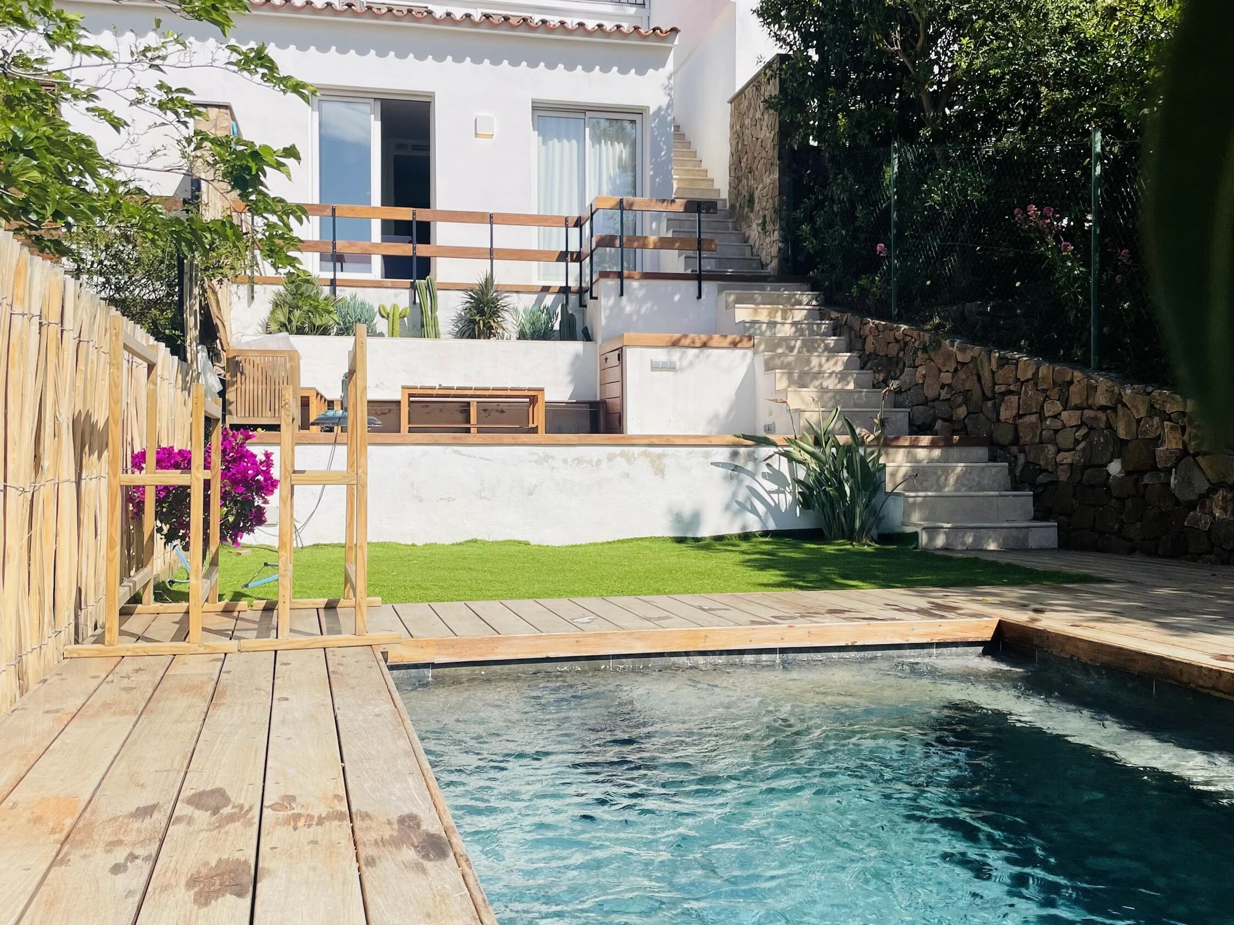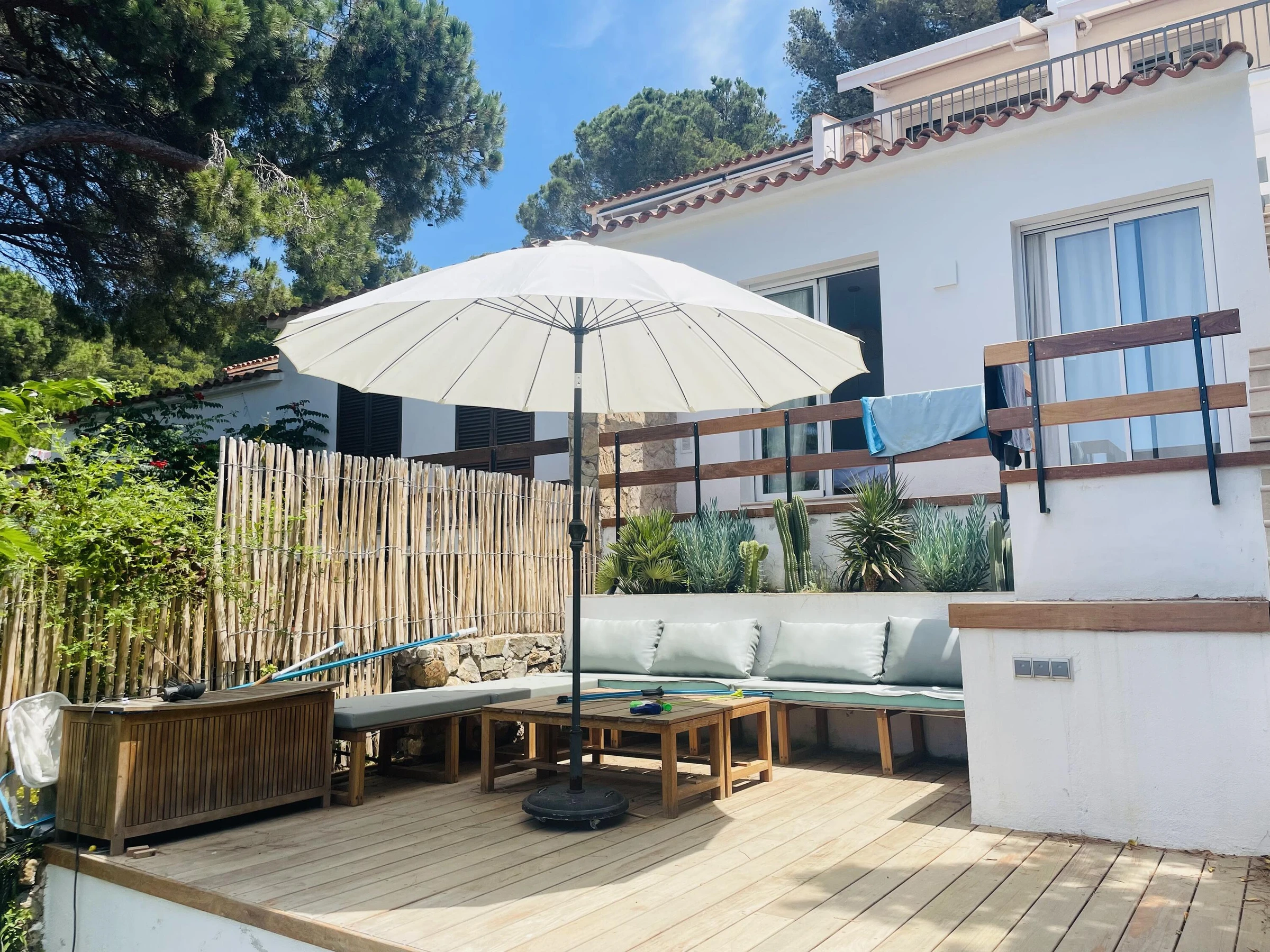 Maison avec piscine 3x4 située dans l’un des quartiers les plus exclusifs de Llafranc, sur la Costa Brava. La Casita vous offre un environnement paisible avec une vue imprenable sur la mer, à seulement 8 minutes à pied de la plage et du centre de Llafranc. Entièrement rénovée en 2024 et équipée de la climatisation, elle est entourée de pins, ce qui lui confère beaucoup de charme et la rend idéale pour les familles recherchant confort et proximité de la mer. La maison est répartie sur trois niveaux : • Niveau d’accès (étage supérieur) : Grand salon-salle à manger avec accès direct à une terrasse offrant une vue spectaculaire sur la mer. Cuisine ouverte entièrement équipée et salle de bain • Étage inférieur (espace enfants) : o 1 chambre avec un grand lit o 1 chambre avec 3 lits simples o 1 salle de bain complète avec douche et baignoire. • Niveau jardin (étage inférieur) : o 2 chambres avec un grand lit et une salle de bain avec douche. CAPACITÉ : 8 personnes. La maison dispose de la climatisation, du chauffage et du wifi. ANIMAUX NON ADMIS