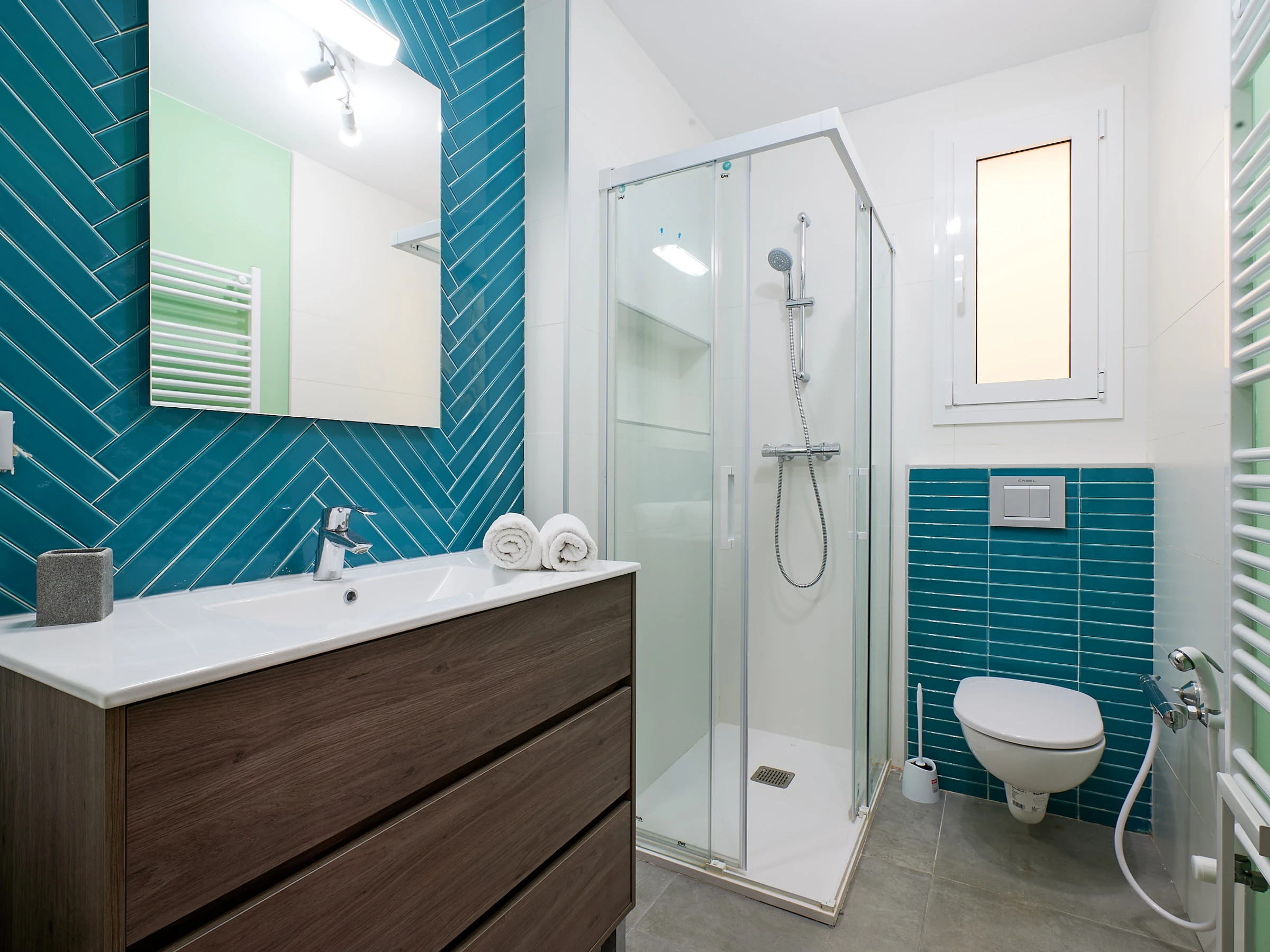 Zone intérieure de 210m2 répartie sur deux étages. Au niveau supérieur, au niveau de la rue, nous trouvons 3 suites (lit matrimonial et salle de bain avec douche dans chacune), l'une d'entre elles dispose d'une terrasse avec vue sur la mer, 1 chambre avec lit individuel et une autre salle de bain complète avec douche.