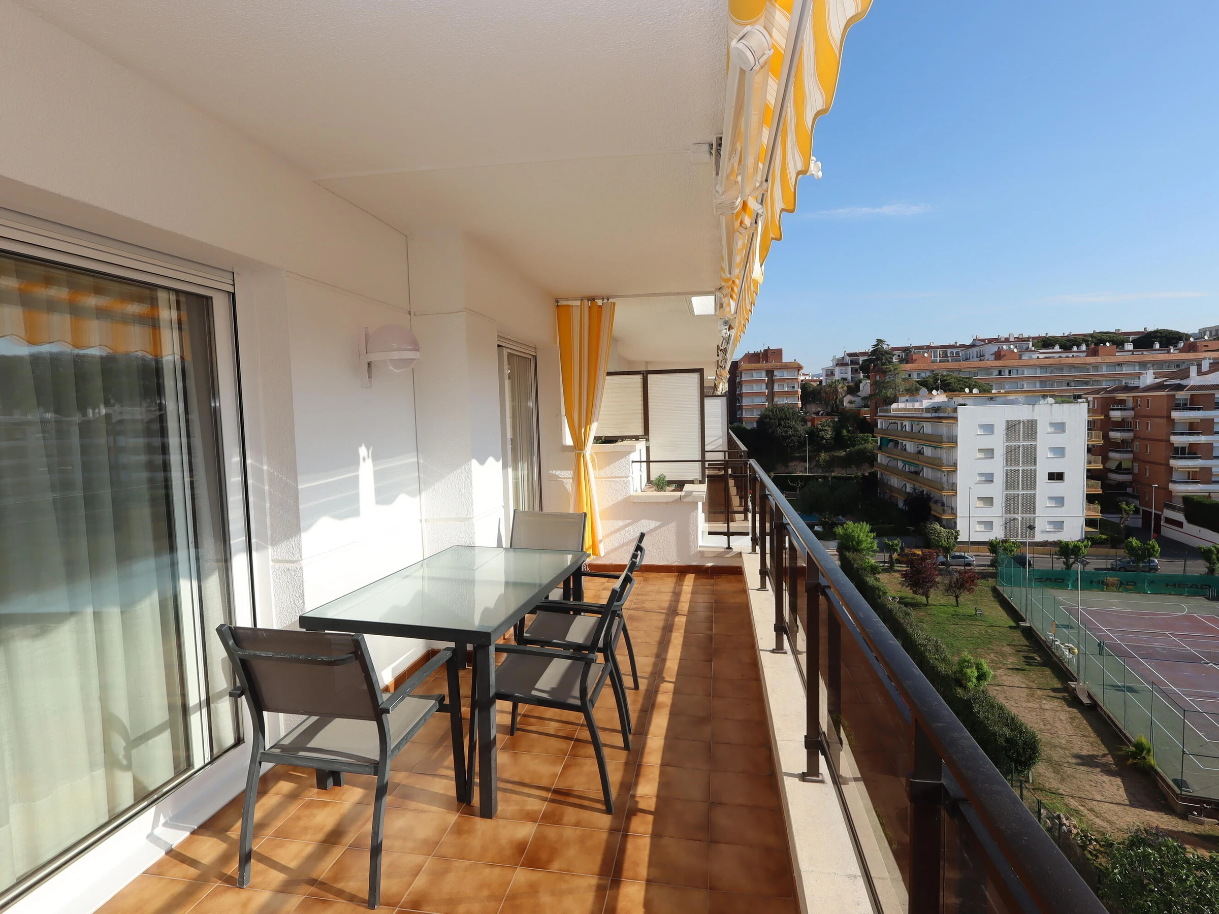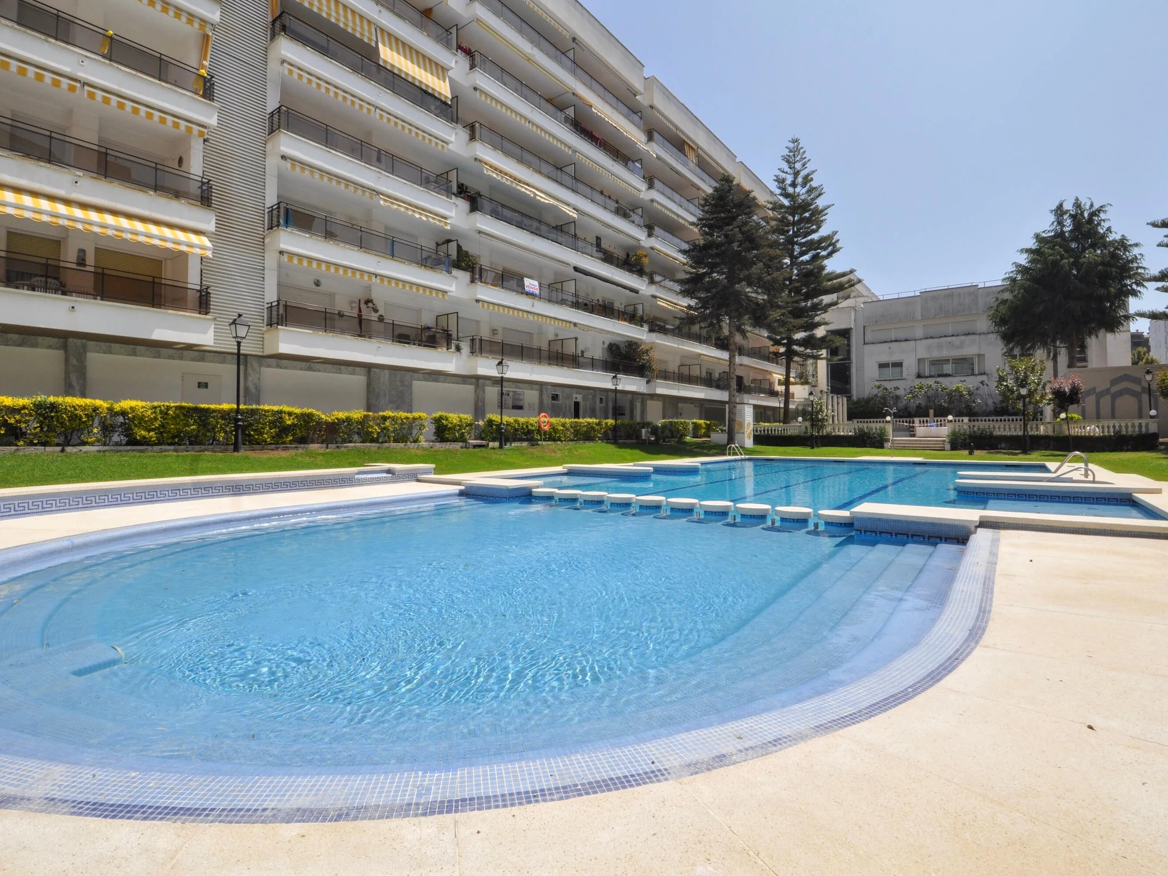 Appartement Blanc confortable à Lloret de Mar, idéal pour des vacances en famille ou entre amis. Il dispose de 2 chambres et peut accueillir jusqu’à 4 personnes : une chambre avec un lit double et une autre avec deux lits simples. Le logement comprend un grand salon avec climatisation, une cuisine entièrement équipée avec tout le nécessaire, ainsi qu’une grande terrasse avec vue sur la piscine, parfaite pour se détendre en plein air. Il dispose également d’une piscine commune pour profiter du séjour. Situé au sixième étage d’un immeuble avec ascenseur, il offre confort et un excellent emplacement. L’âge minimum pour réserver cet appartement est de 25 ans, idéal pour les familles ou les couples.