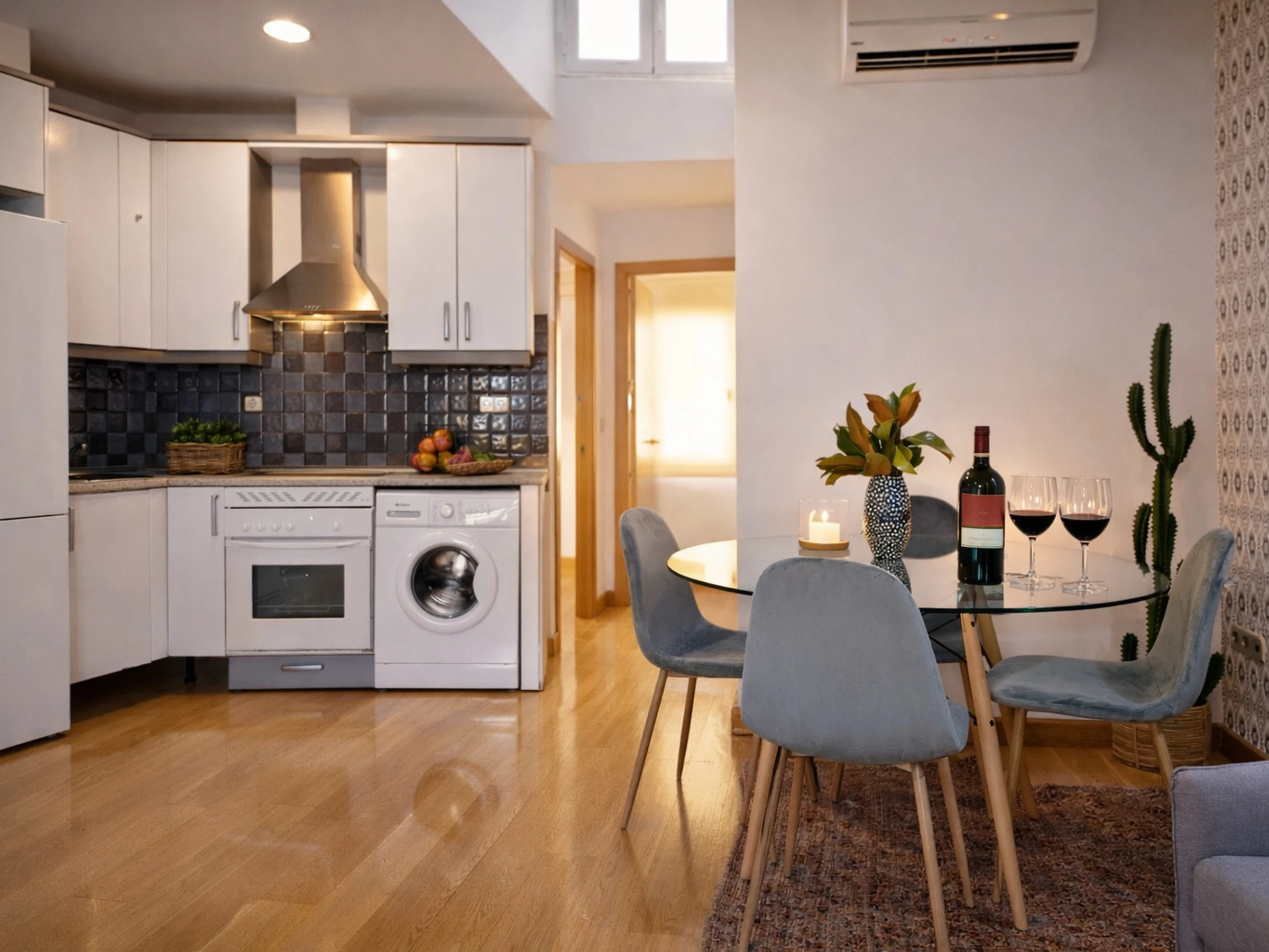 Cet appartement confortable de 50 m² est situé au centre de Madrid, à quelques pas des principales attractions de la ville. C\'est l\'endroit idéal pour les familles, les groupes d\'amis ou les voyages d\'affaires qui recherchent un séjour confortable et central.