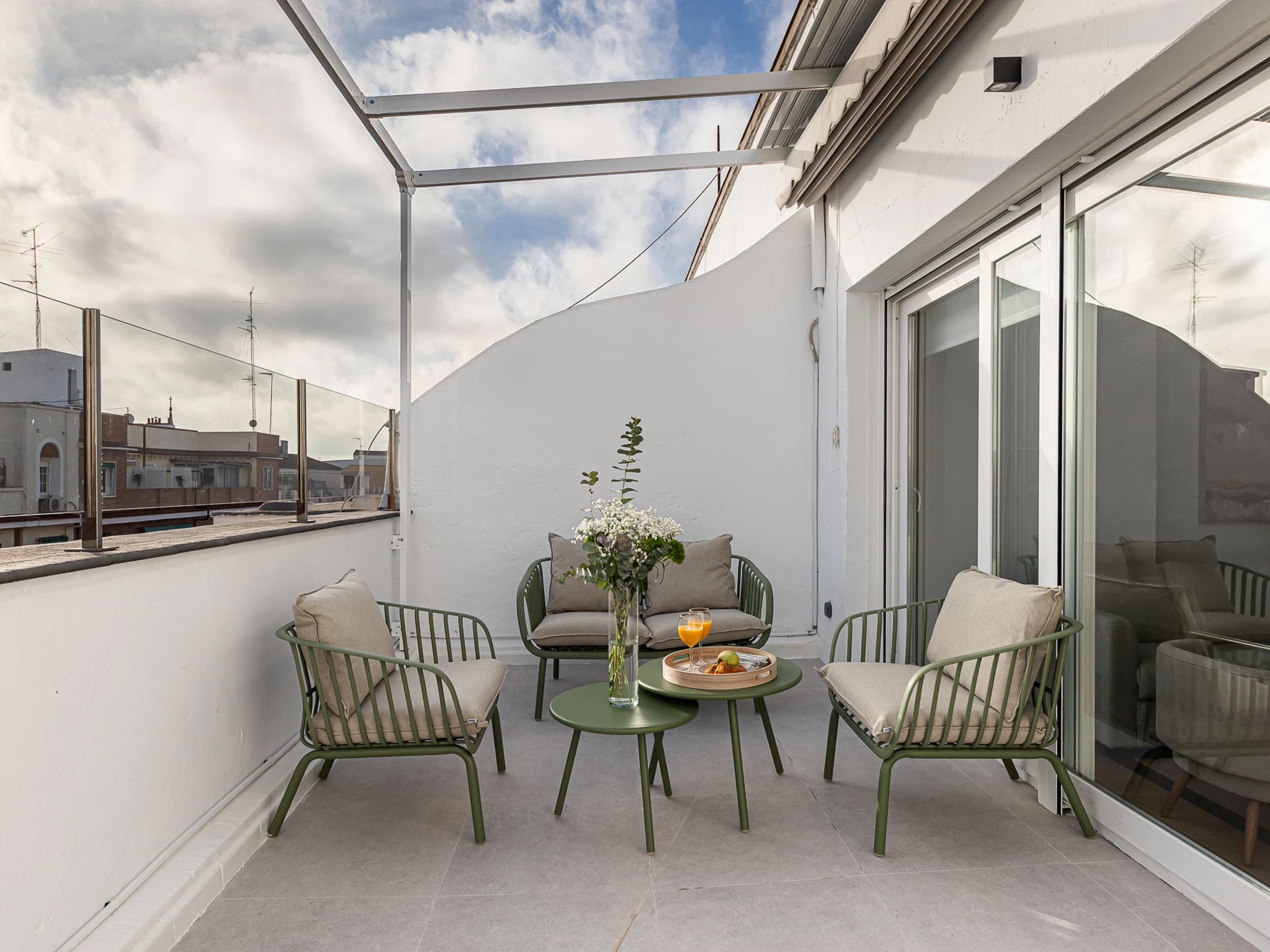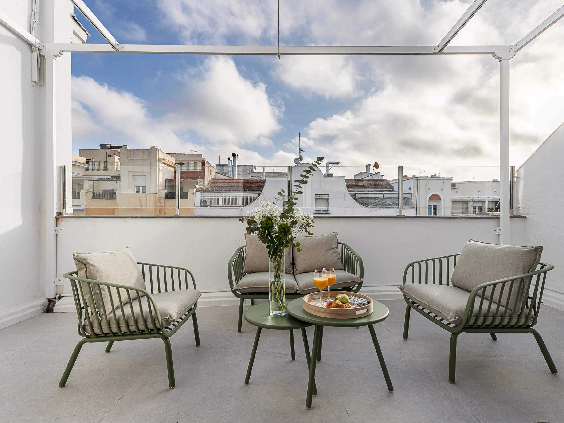 Un hébergement idéal pour ceux qui souhaitent combiner l’intimité de 5 suites indépendantes avec de vastes espaces communs et le privilège d’une terrasse unique en plein centre de Madrid.