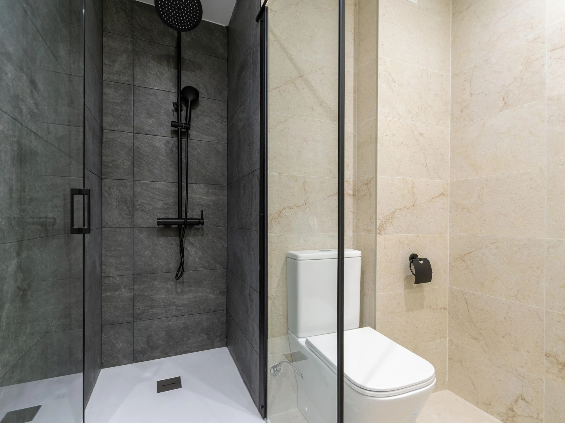 Salles de bain :Au total, l'appartement possède deux salles de bain. La salle de bain ensuite de la chambre principale garantit confort et intimité. La deuxième salle de bain, accessible depuis les espaces communs, est conçue dans un style moderne et comprend toutes les commodités nécessaires, telles qu'une douche, un lavabo et des toilettes, ce qui la rend à la fois fonctionnelle et élégante.