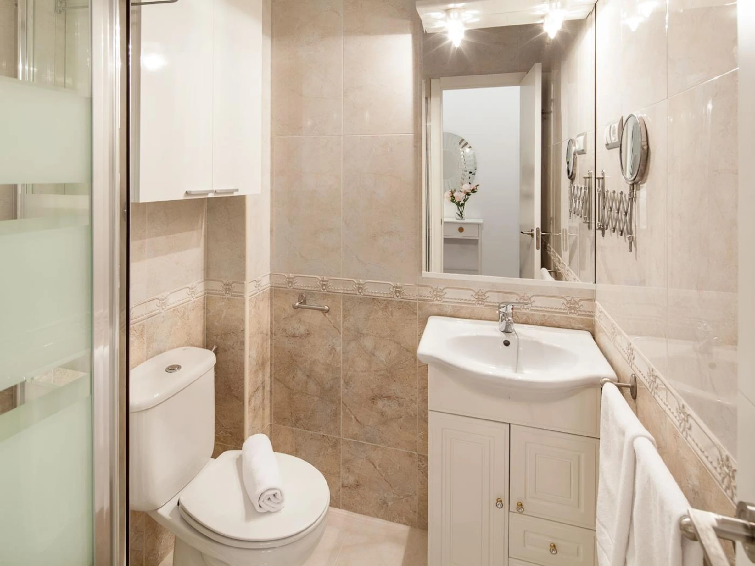 L'appartement dispose deux chambres à coucher, une salle de bain munie avec d'un séche-cheveux, serviettes de haute qualité et d'articles de toilette.