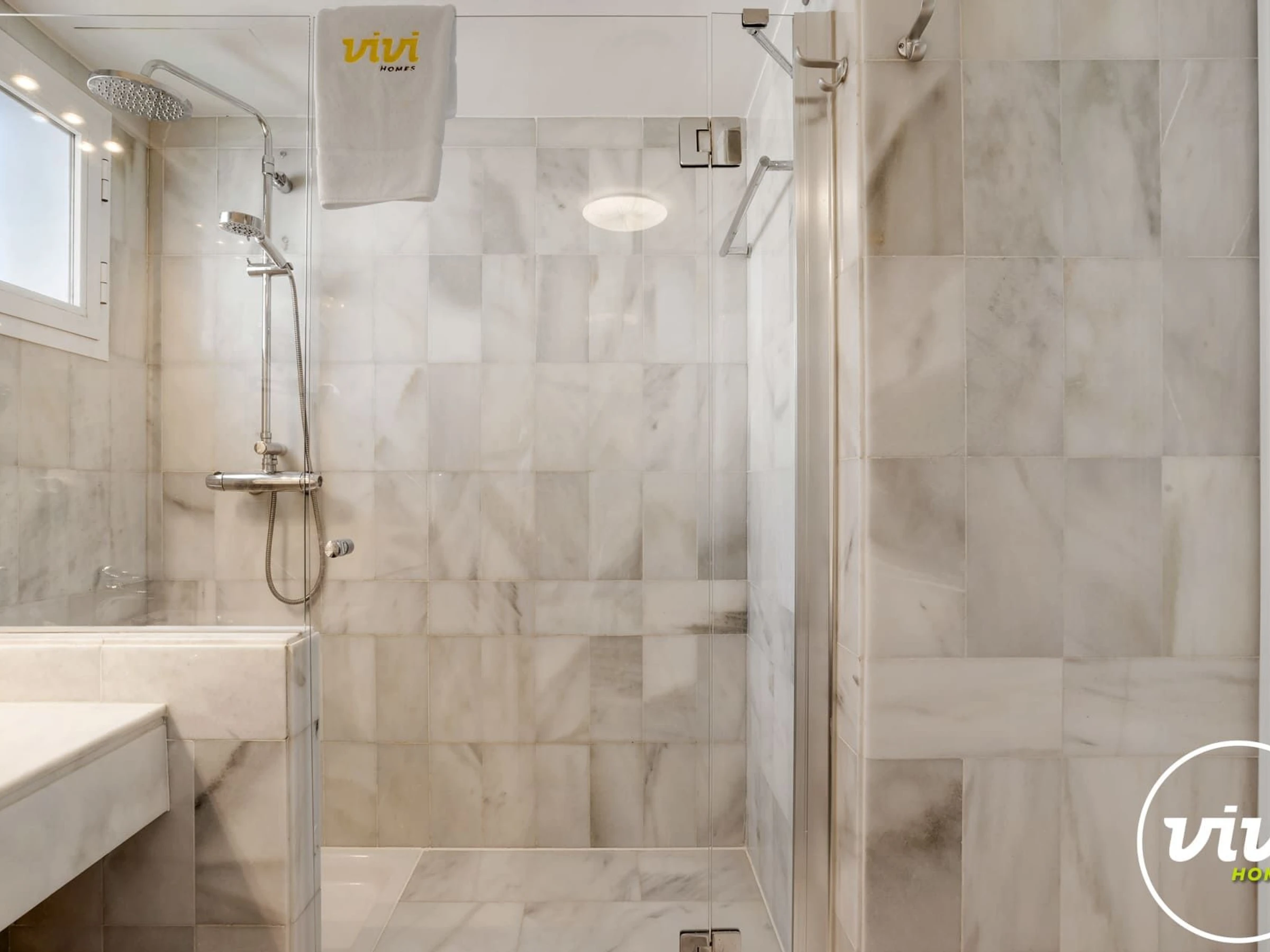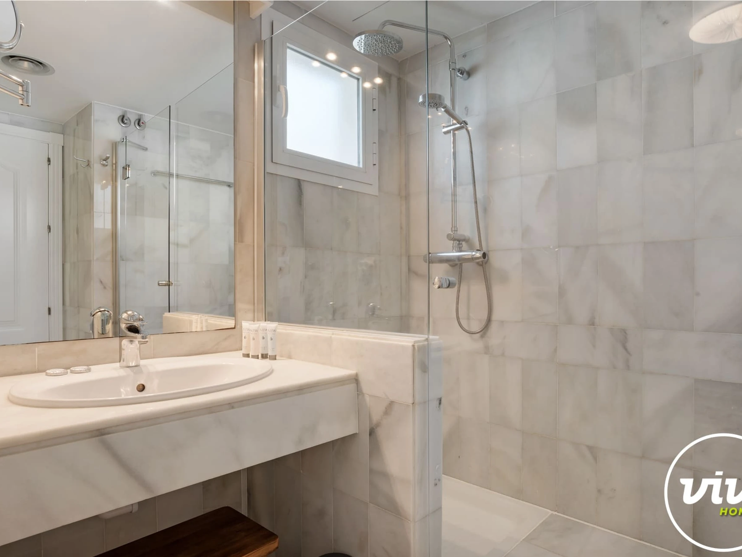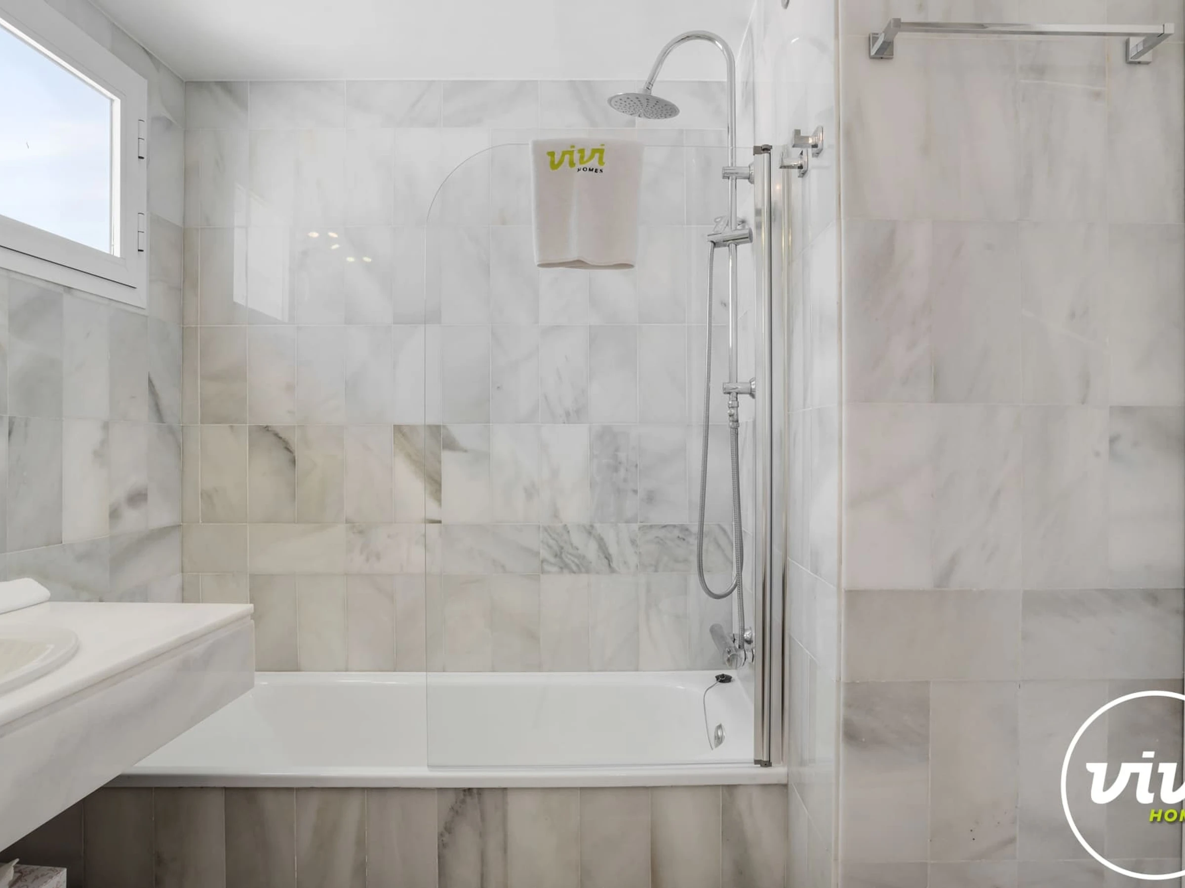 Elle dispose de mobilier de jardin, clôture, 35 m² de terrasse, lave-linge, barbecue, fer à repasser, coffre-fort, accès internet (wifi), sèche-cheveux, balcon, chauffage central, climatisation dans tout le logement, piscine collective, parking extérieur bâtiment proche, 1 Télévision.