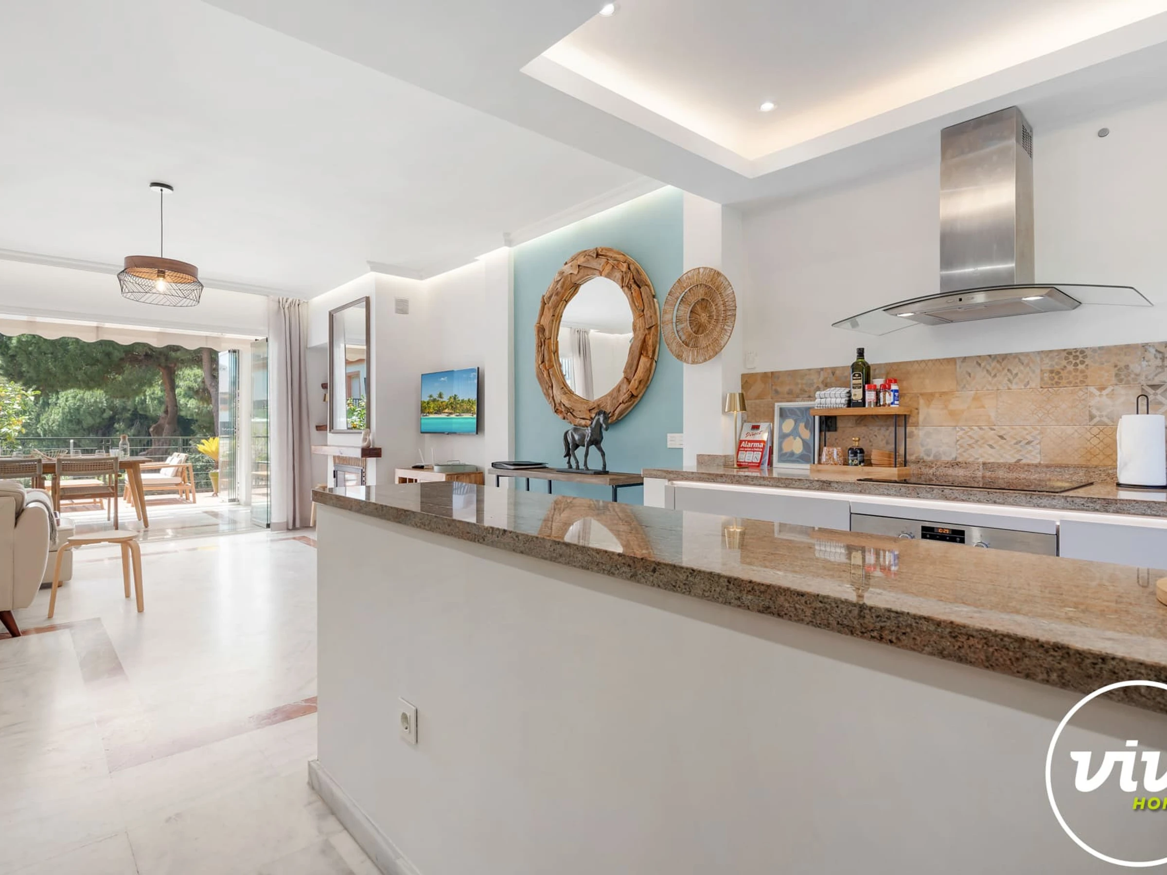 Logement de 129 m² accueillant et totalement équipé, situé en première ligne de golf, avec vue sur la mer et la montagne.