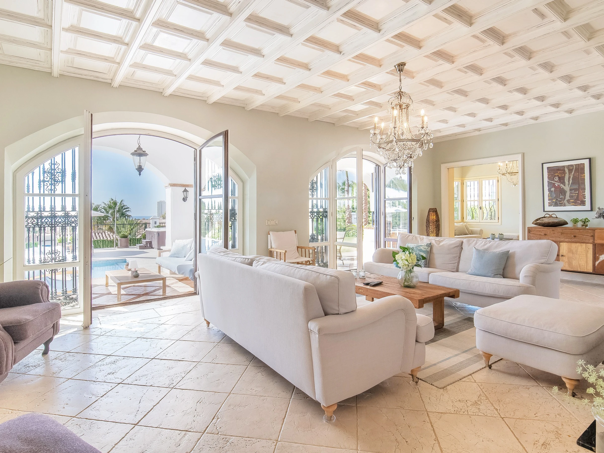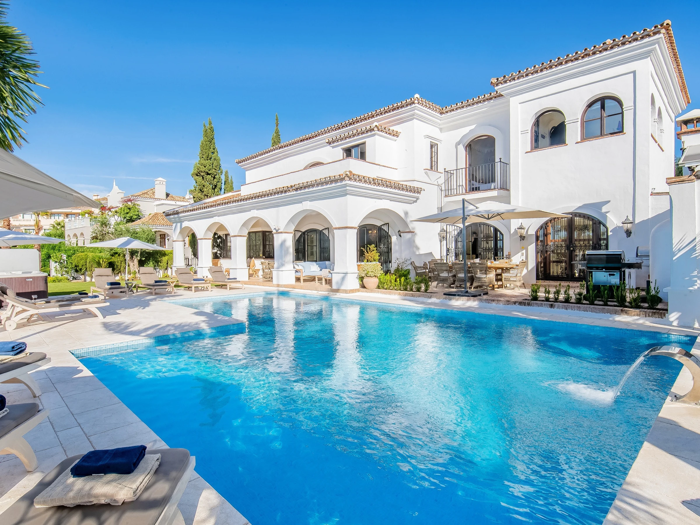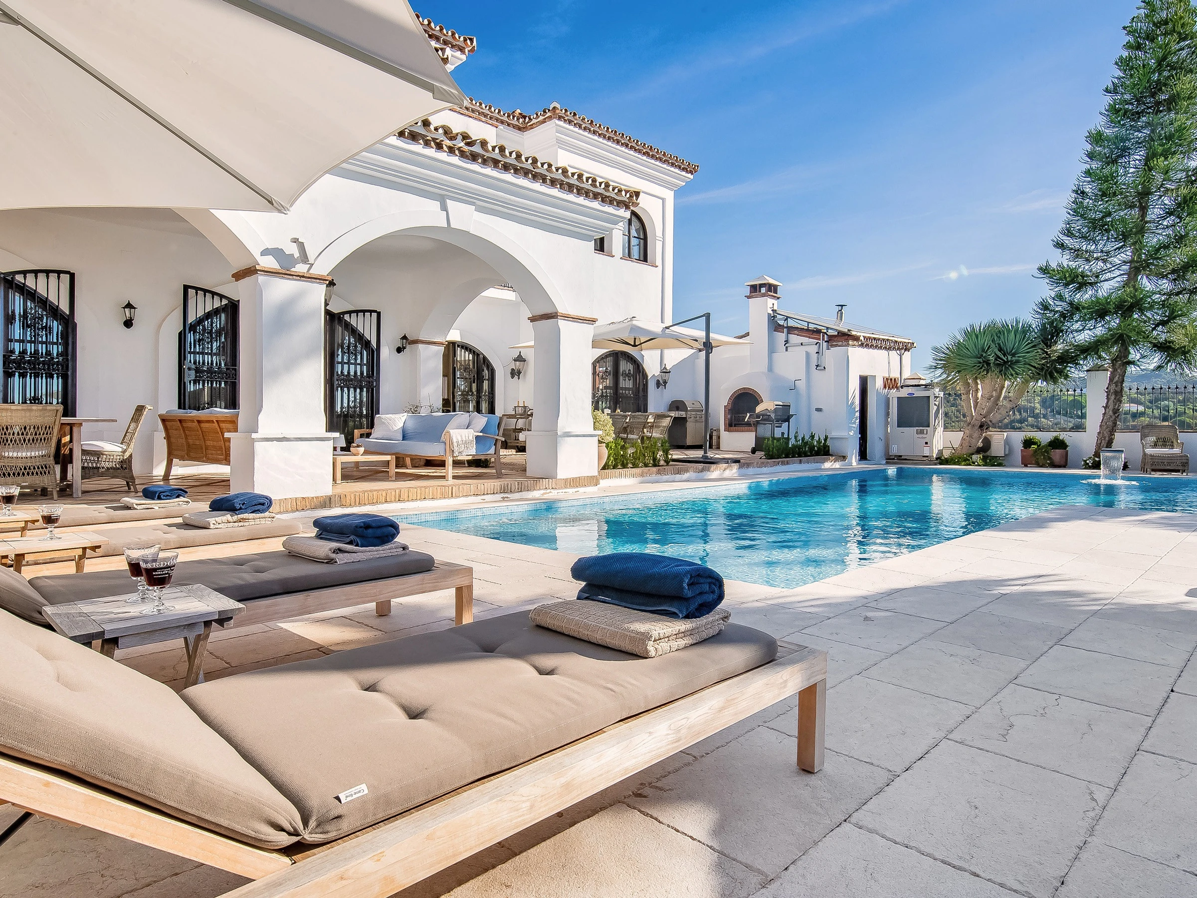 Une villa de style andalou merveilleuse avec des installations extérieures fantastiques comme une piscine chauffée privée et un jacuzzi à courte distance d'une belle plage. La villa peut accueillir 12 personnes.
