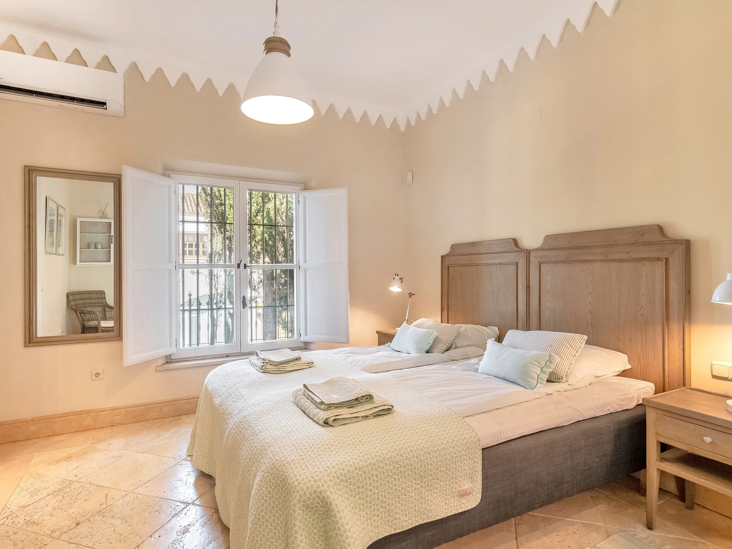 Cette villa exceptionnelle avec 4 chambres doubles + 1 chambre familiale avec 2 pièces indépendantes en suite pour 4 personnes, 4 salles de bains et un toilette d'invités est située à 250 mètres du Santa Maria Golf Club et à moins de 2 km de la plage. Peut accueillir au total 12 personnes.