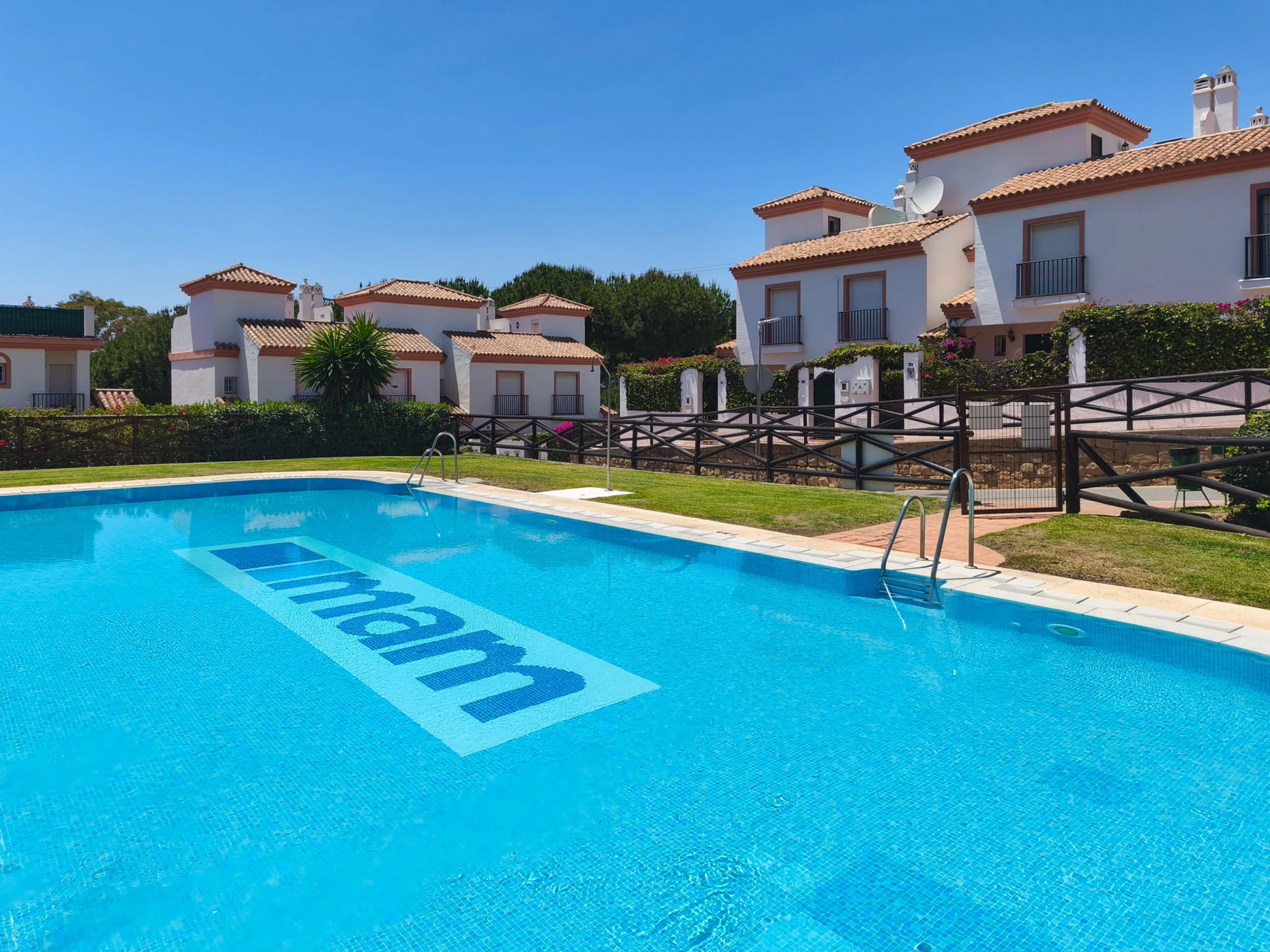 Cabopino: Belle maison mitoyenne "Las lomas de Cabopino", année de construction 2002. À 14 km du centre de Marbella, à 17 km du centre de Fuengirola, situation tranquille, à 1 km de la mer, à 1 km de la plage. En commun: jardin avec pelouse, piscine (disponibilité saisonnière: [hidden] - [hidden] horaires d'ouverture de la piscine: 08:00-22:00). Bassin pour les enfants, garage individuel. Magasins 3 km, supermarché 3 km, restaurant 300 m, arrêt de bus "Camping Cabopino" 250 m, plage de sable 1 km. Port plaisance 1 km, terrain de golf (19 trous) 1.9 km. Veuillez noter: adapté(e) aux familles. Le propriétaire n'accepte pas les groupes de jeunes. Environnement très sensible au bruit. Silence et bonne tenue exigés.