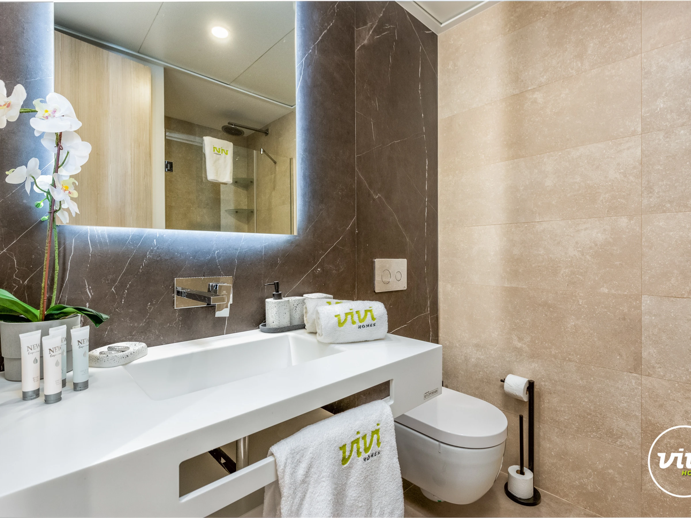Elle dispose de ascenseur, mobilier de jardin, clôture, 25 m² de terrasse, lave-linge, fer à repasser, coffre-fort, accès internet (wifi), sèche-cheveux, salle de sport, spa, chauffage central, climatisation, piscine collective+infantile, garage même bâtiment, TV.