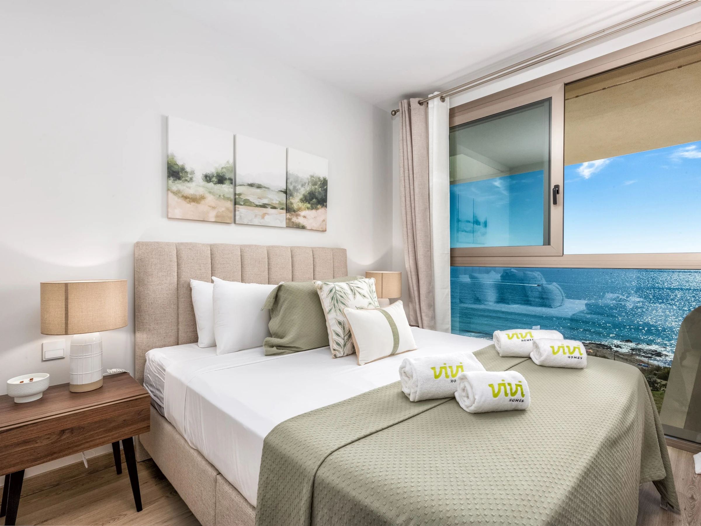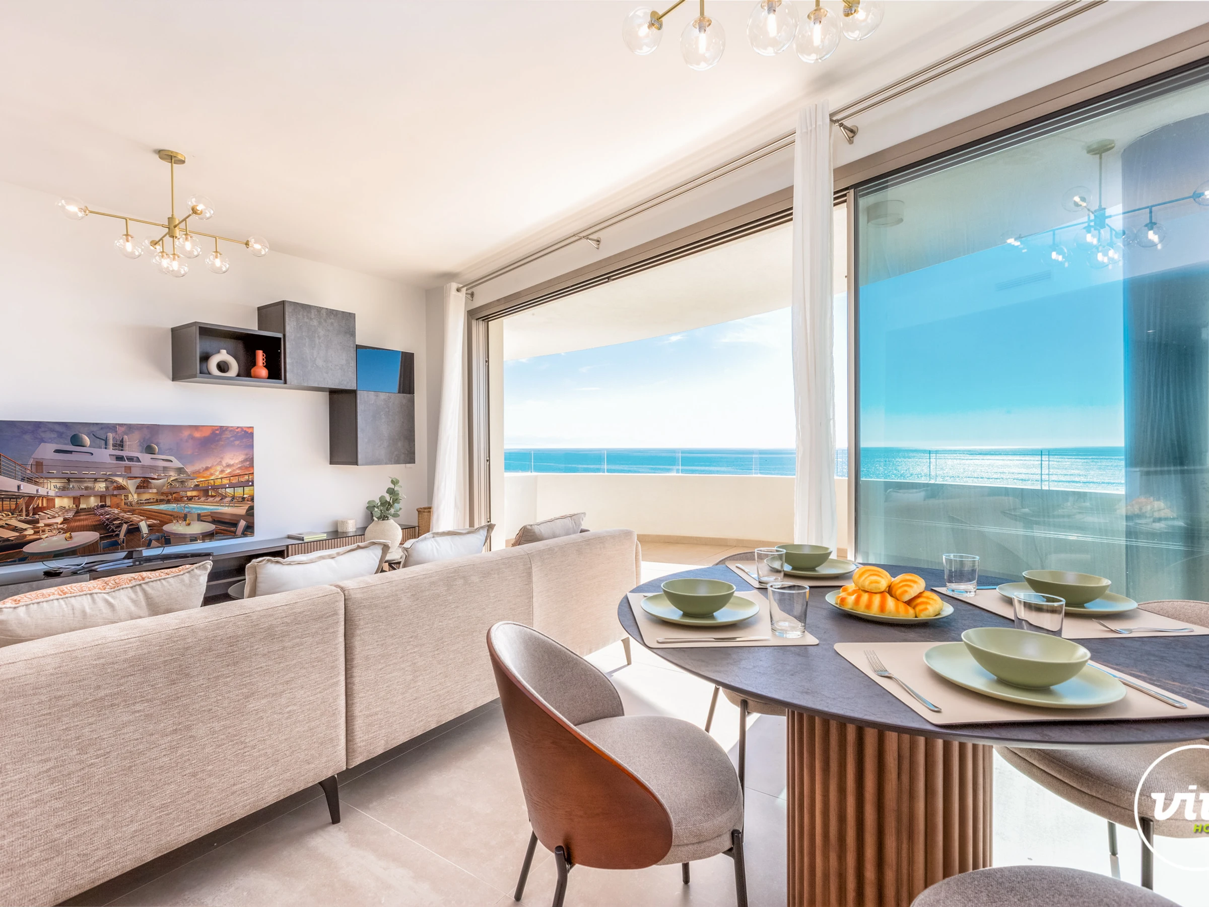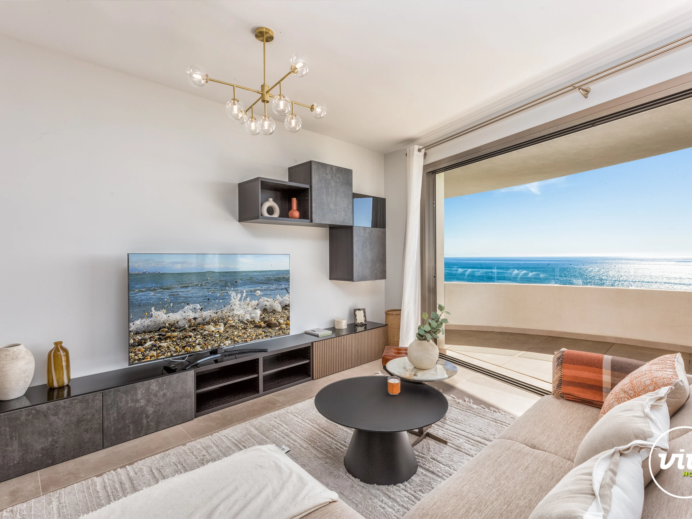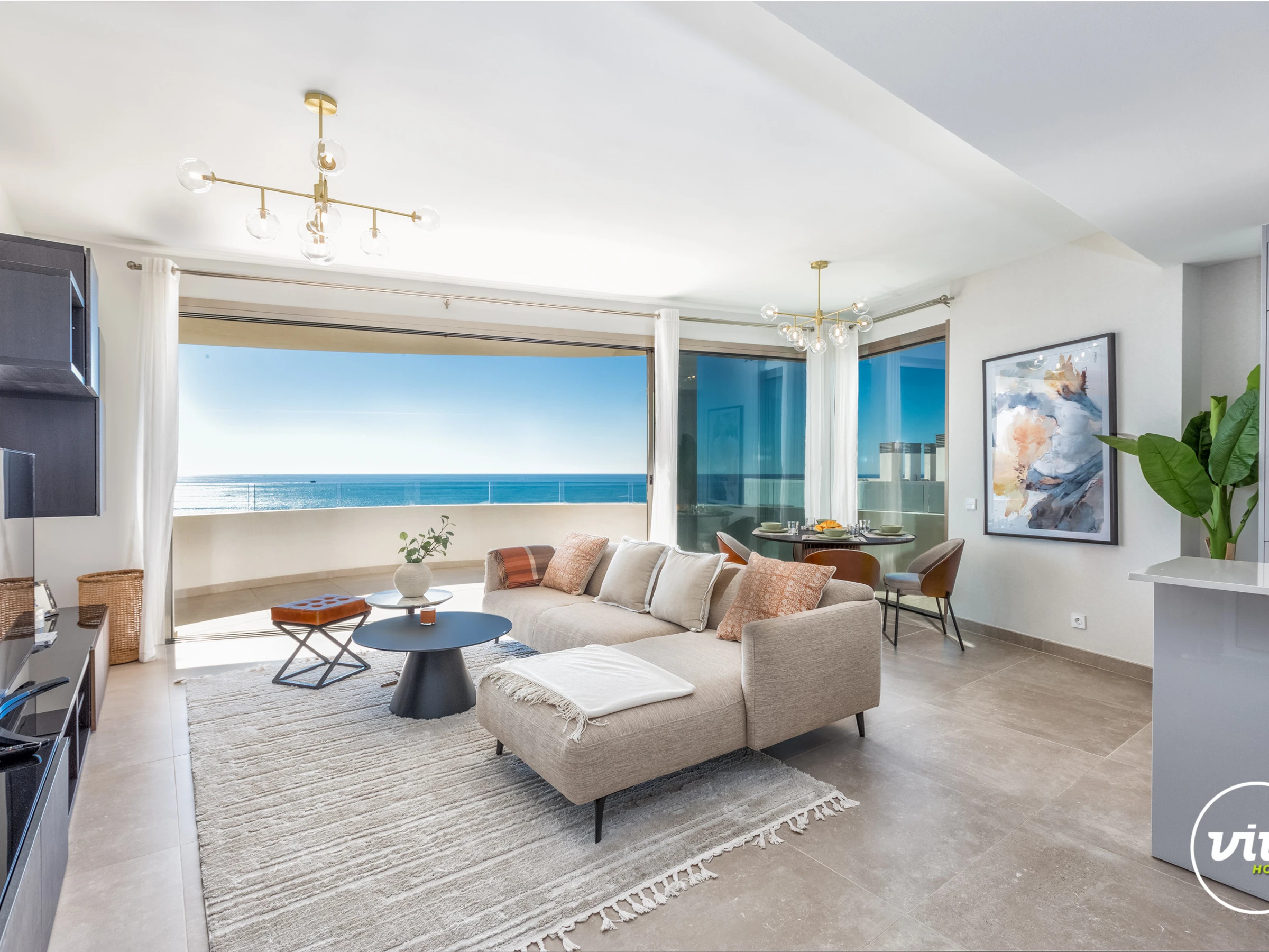 Logement de 135 m² joli et moderne, situé en front de plage, avec vue sur la mer et le jardin.
