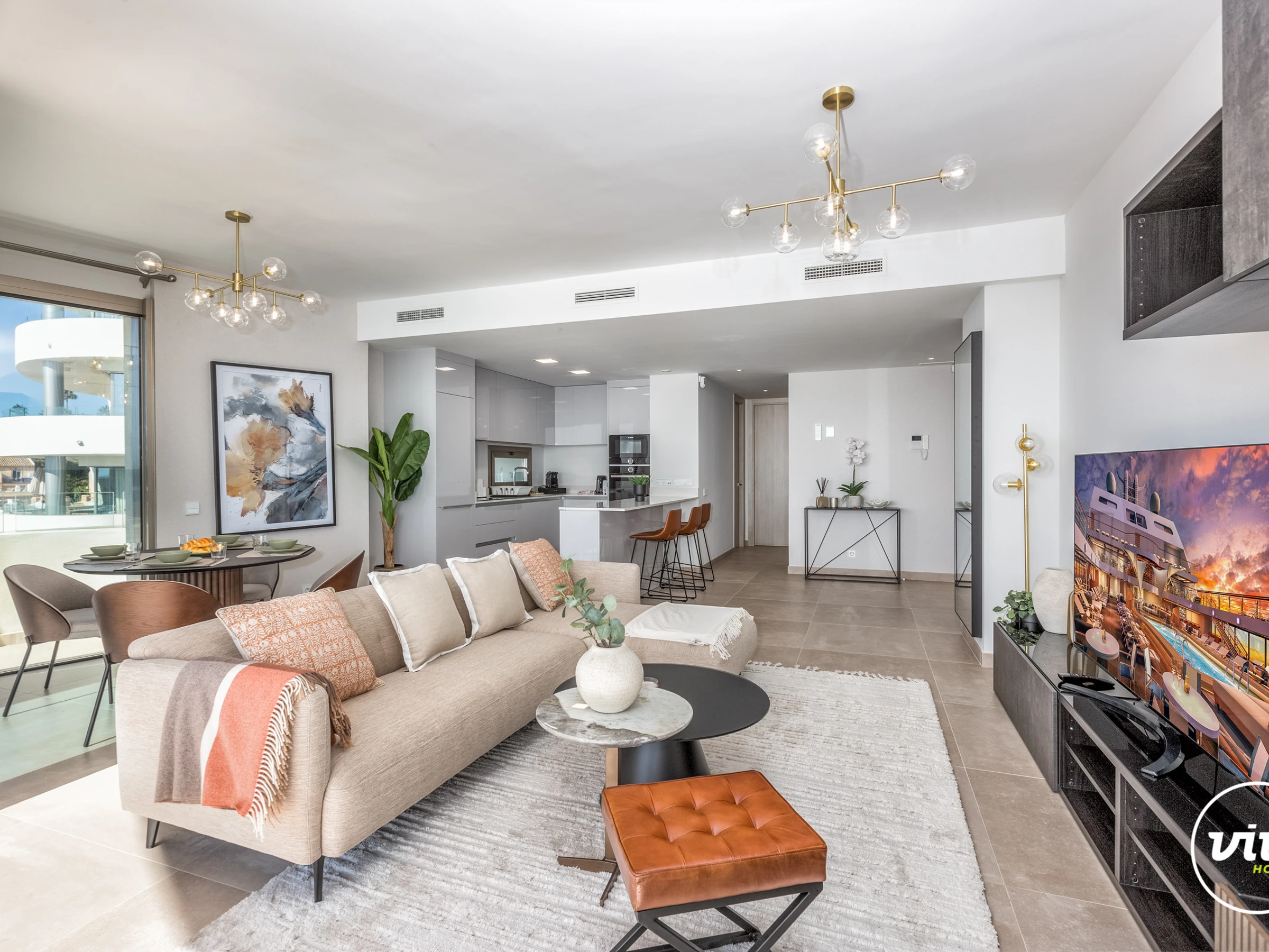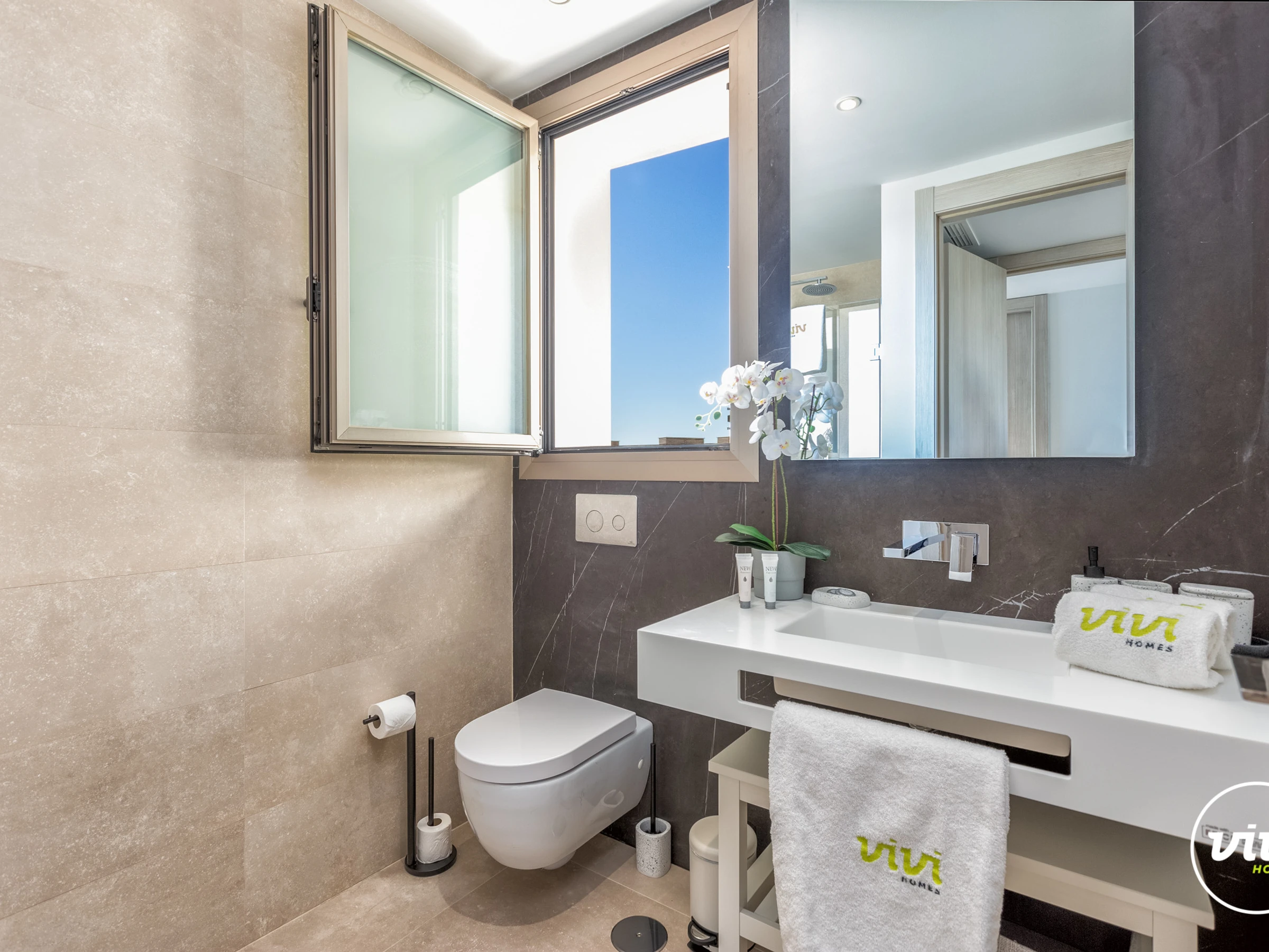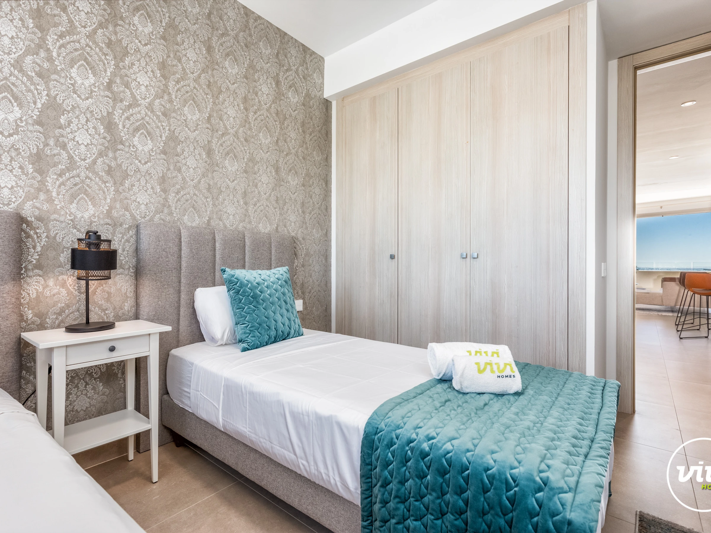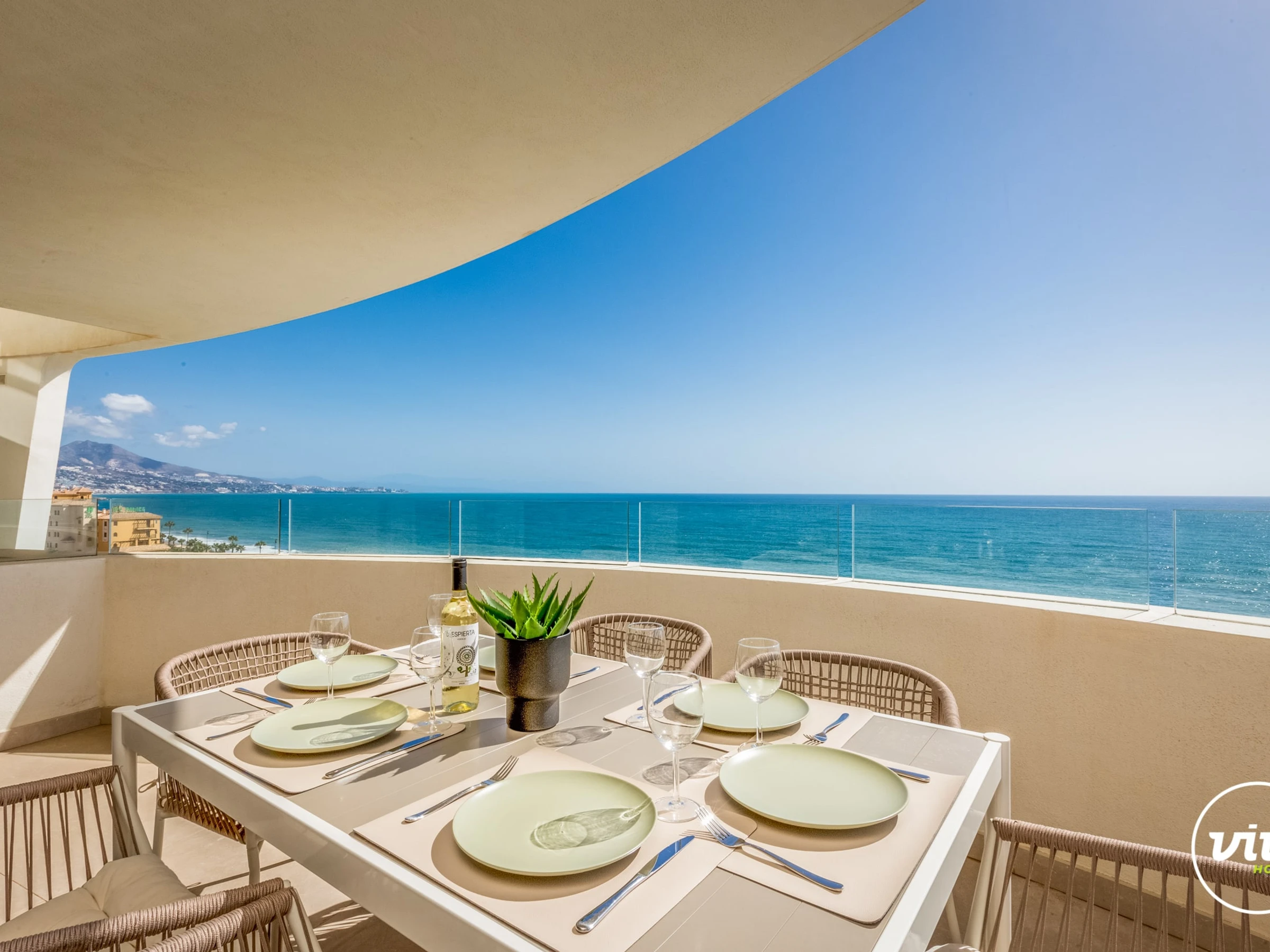 Logement de 135 m² joli et moderne, situé en front de plage, avec vue sur la mer et le jardin.