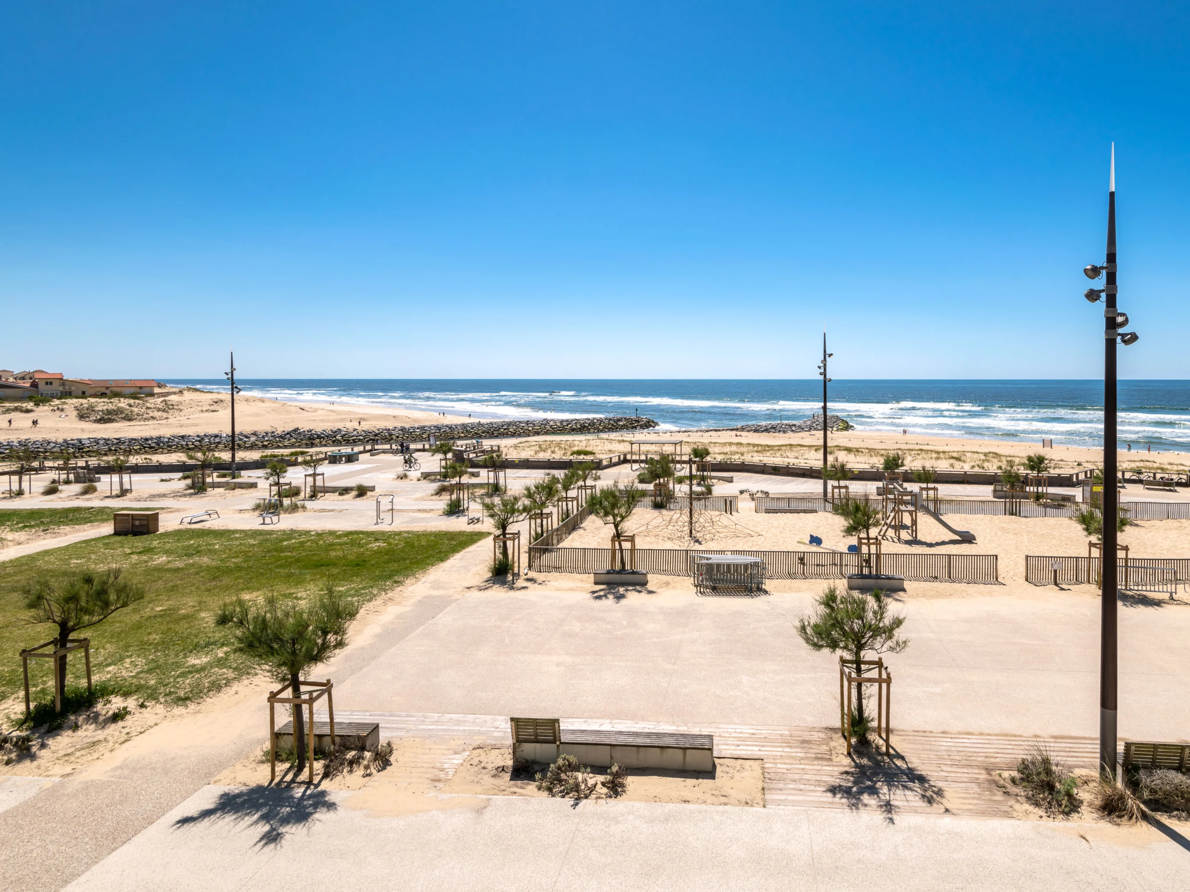 Mimizan-Plage: Immeuble de 3 étages bénéficiant d'une situation privilégiée dominant la plage face à l'océan, à proximité immédiate de la corniche piétonne. Résidence "Cap Océan". Dans la localité, à 100 m du centre de Mimizan-Plage, situation centrale, animée, à 100 m de la mer, à 100 m de la plage. Infrastructures de la résidence: ascenseur, réduit pour bicyclettes. Place de parking. Magasin d'alimentation 80 m, supermarché 500 m, restaurant 80 m, arrêt de bus 400 m, gare ferroviaire "Labouheyre" 30 km, plage de sable "la garluche" 100 m, parc "Landes aventures" 6 km, piscine couverte 6 km, baignade en lac "Aureilhan" 10 km. Terrain de golf (9 trous) 7 km, ecole de surf 100 m, centre équestre 7 km. Attractions à proximité: Bassin Arcachon 70 km, Biscarrosse 35 km, Casino Mimizan - Plage 1 km, Centre Nautique 6 km. Veuillez noter: D’autres appartements sont également proposés à la location dans cette maison de vacances.