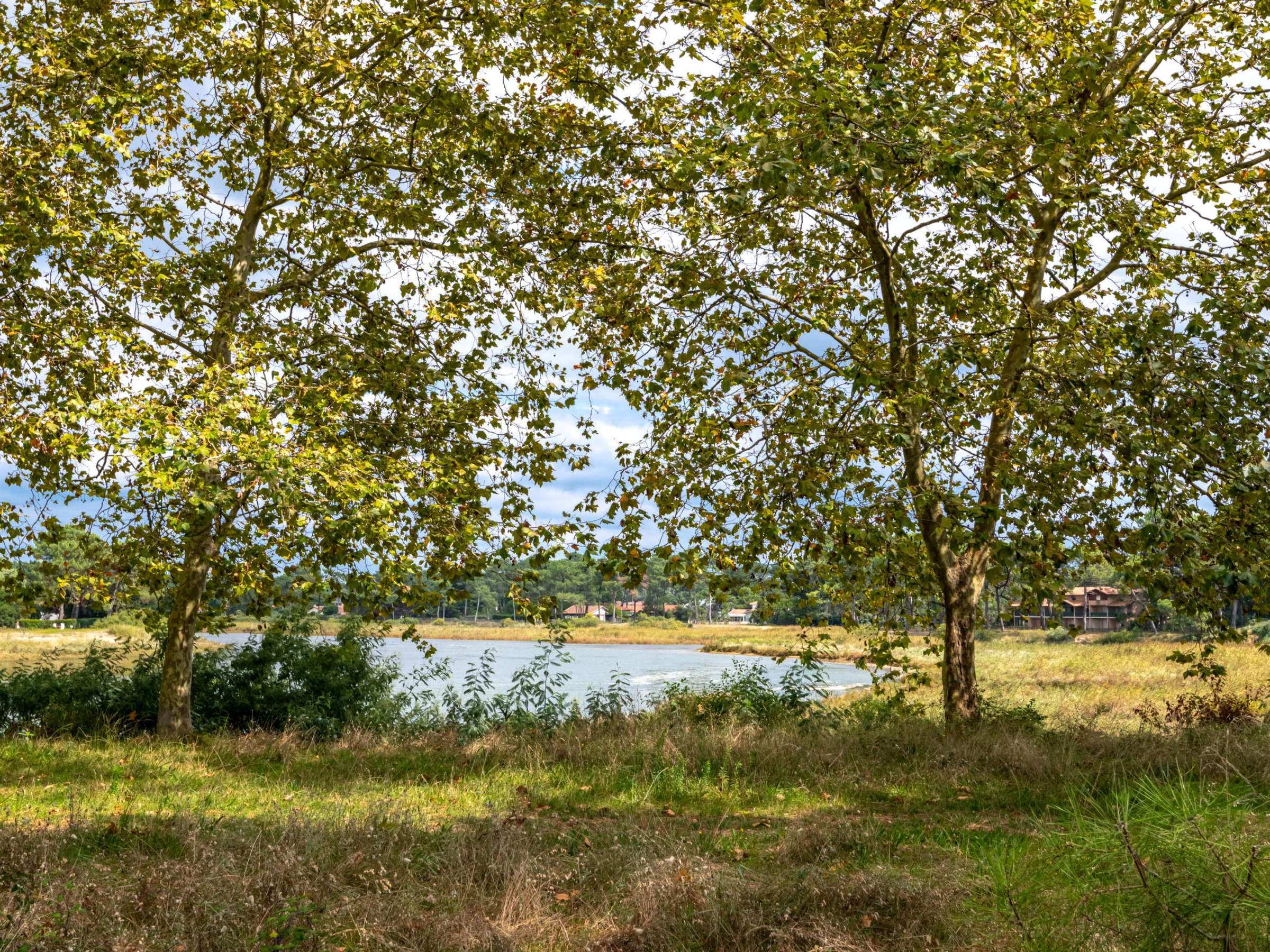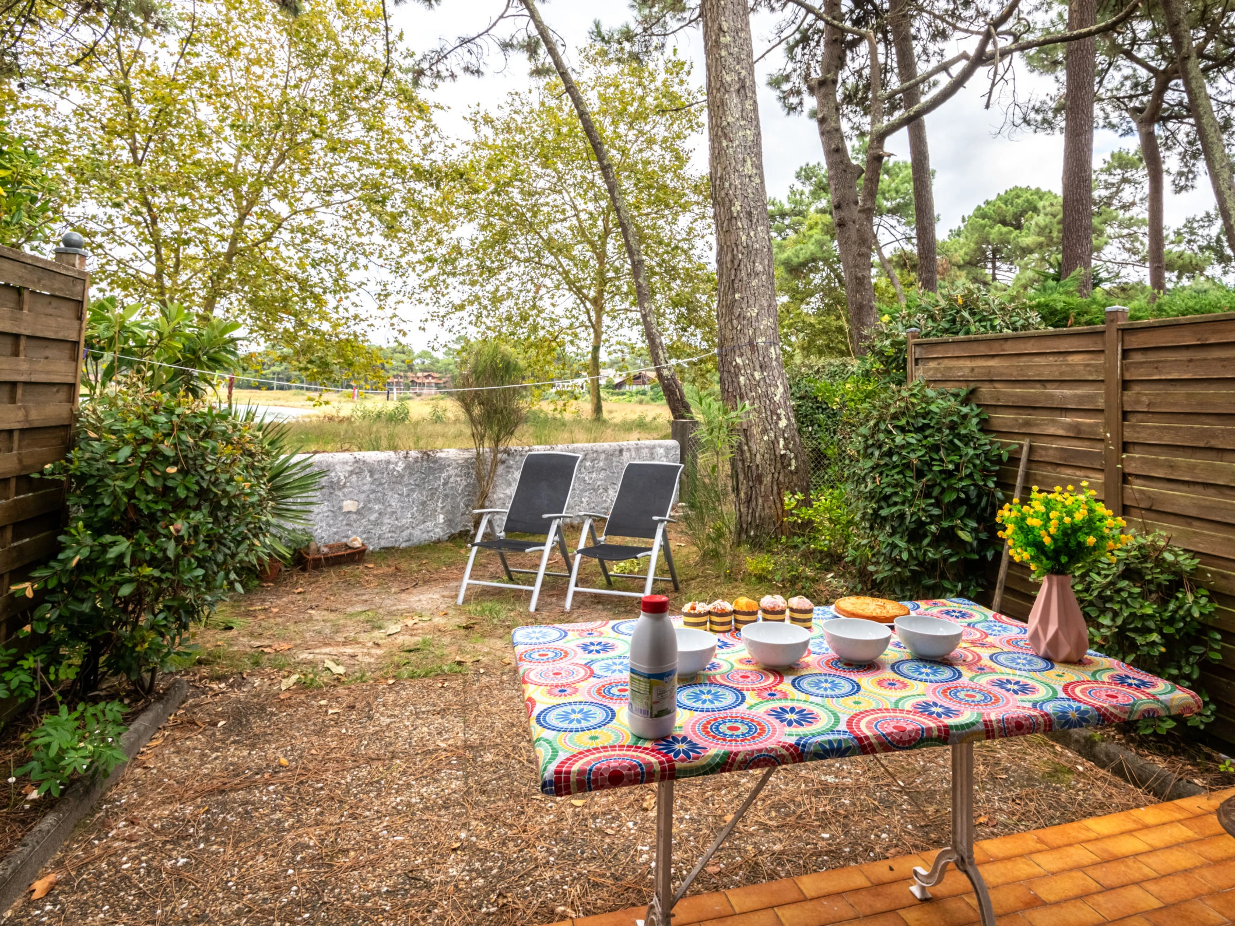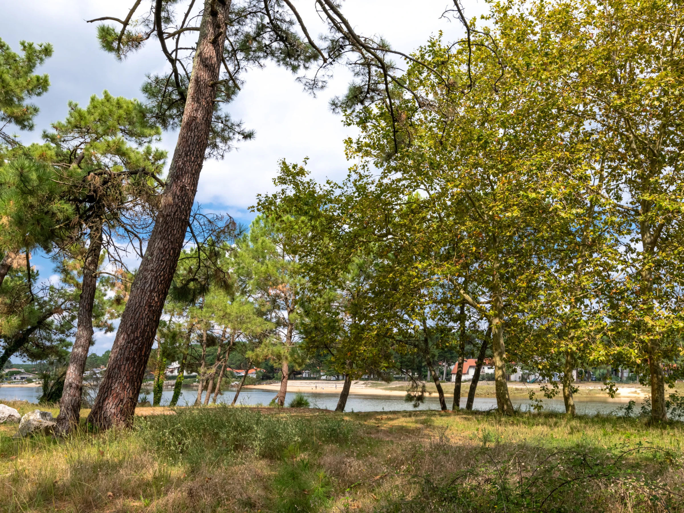 Mimizan Plage: Résidence "Hameau du courant". À 400 m de la forêt, à 1 km de la mer, à 10 km du lac, à 1 km de la plage, à 100 m de la rivière. Magasins 1.2 km, magasin d'alimentation 2 km, supermarché 2 km, centre commercial 5 km, restaurant 1.2 km, boulangerie 1.5 km, zone piétonne 2 km, arrêt de bus 1.2 km, plage de sable "sud digue" 1 km, baignade en lac "Aureilhan" 10 km. Terrain de golf (9 trous) 6 km, ecole de surf 2 km, tennis 1 km. Attractions à proximité: Biscarrosse 35 km, Arcachon le pilat 75 km, Musée de marquèze 45 km. Les lacs connus sont facilement accessibles: Aureilhan 10 km.
