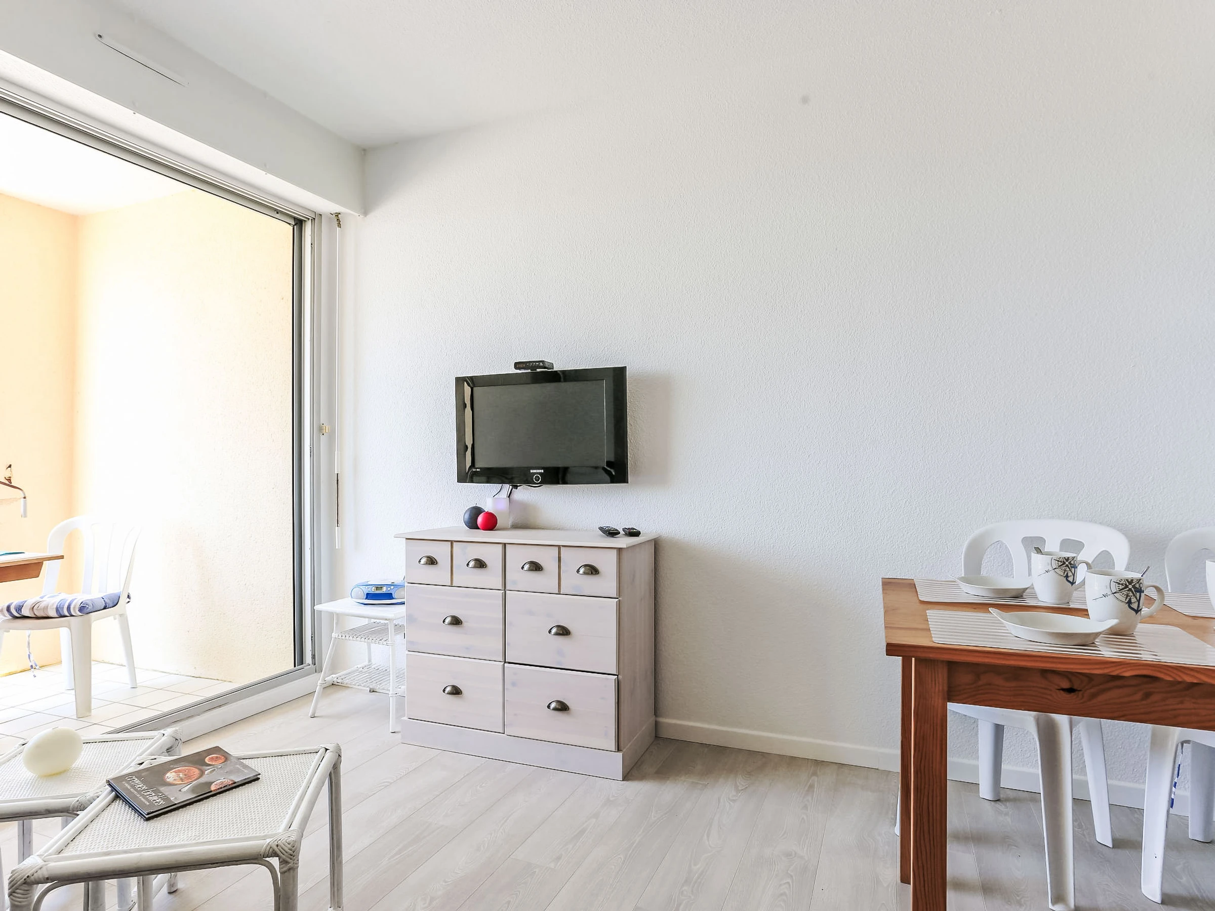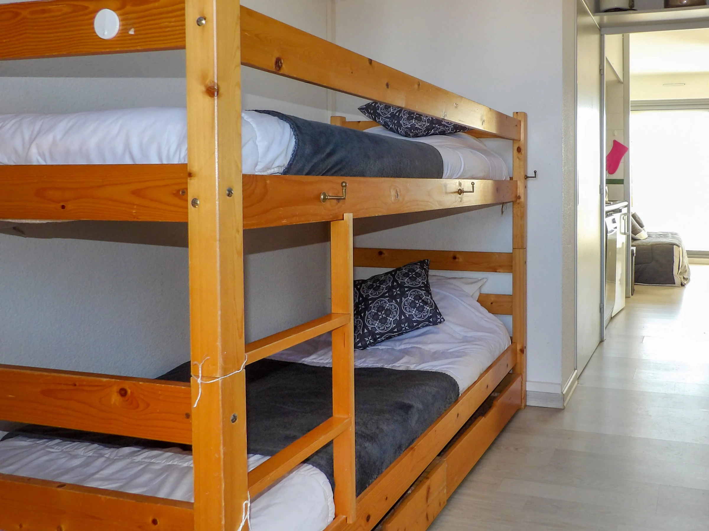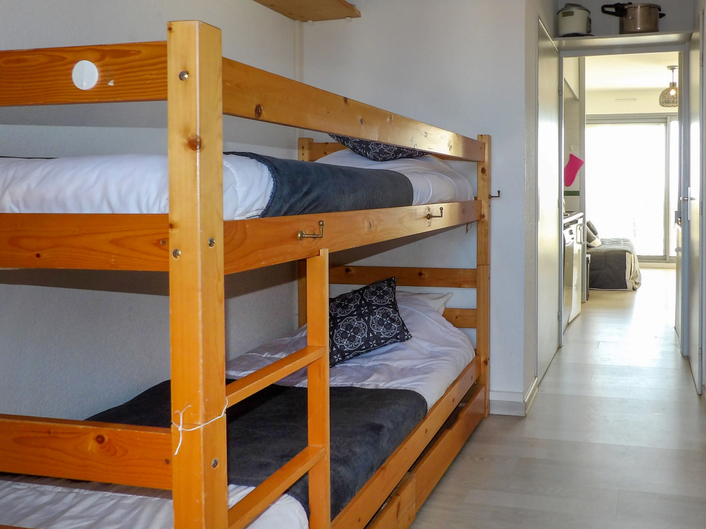 Apt 2 pièces 28 m2 au 1er étage. Aménagement simple et fonctionnel: entrée avec 1 x 2 lits superposés (90 cm, longueur 190 cm), TV (écran plat). Sortie sur le balcon. 1 petite chambre avec 1 grand-lit (1 x 140 cm, longueur 190 cm). Coin cuisine (mini-four, lave-vaisselle, 1 plaque vitrocéramiques, 4 feux, micro-ondes, cafetière électrique). Bain/WC. Chauffage électrique. Balcon. Mobilier de balcon. Vue sur la mer. A disposition: lave-linge. Internet (Connexion WIFI, gratuit). Place de parking No 108 (1 Voiture). Veuillez noter: parking pour 1 petite voiture. TV seulement FR. Détecteur de fumée. [hidden]