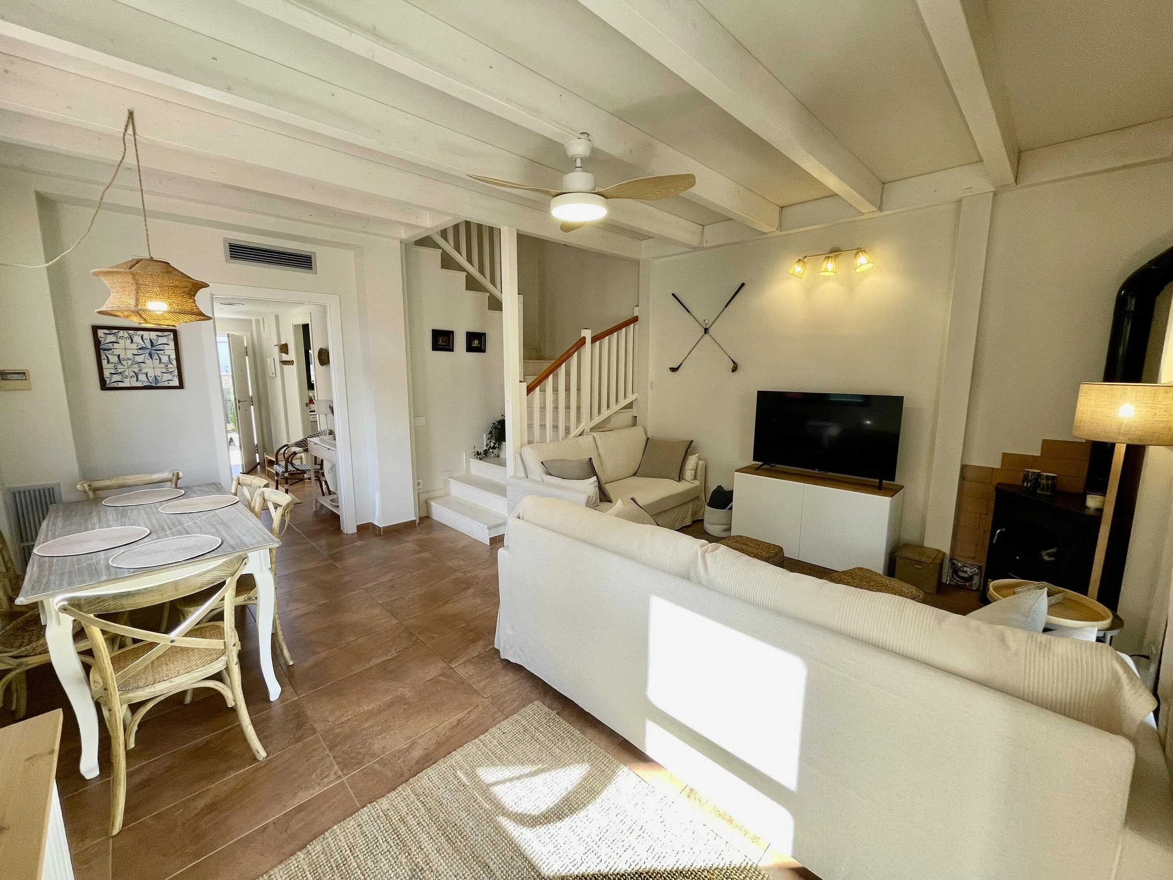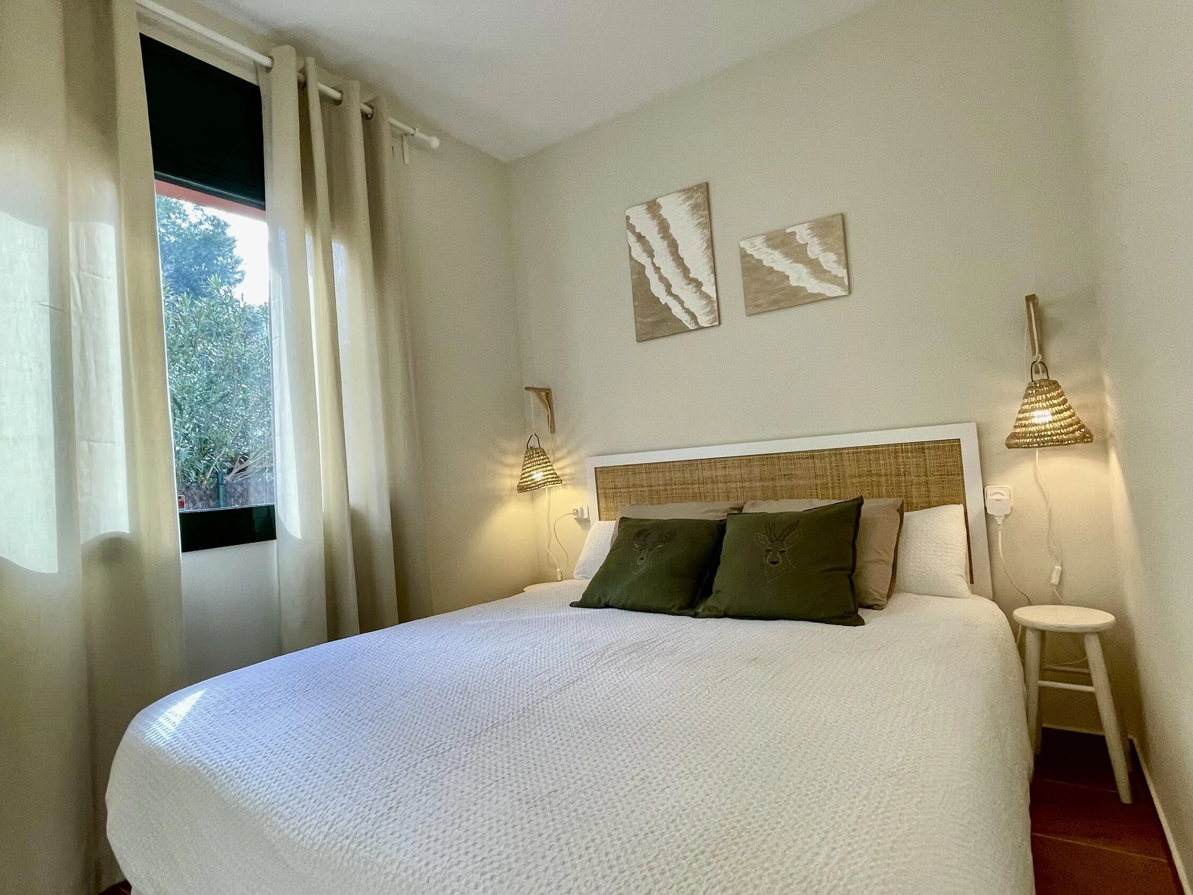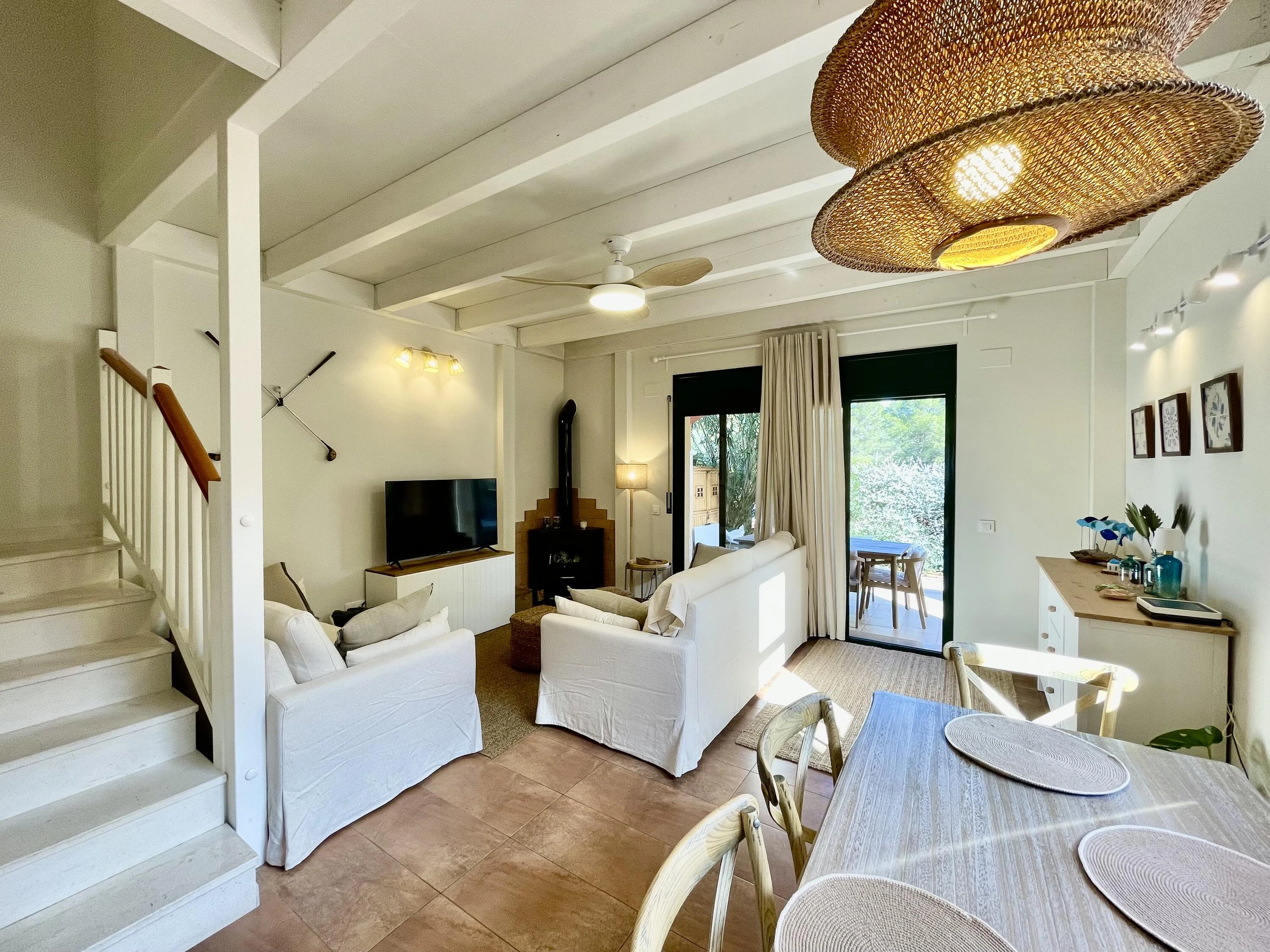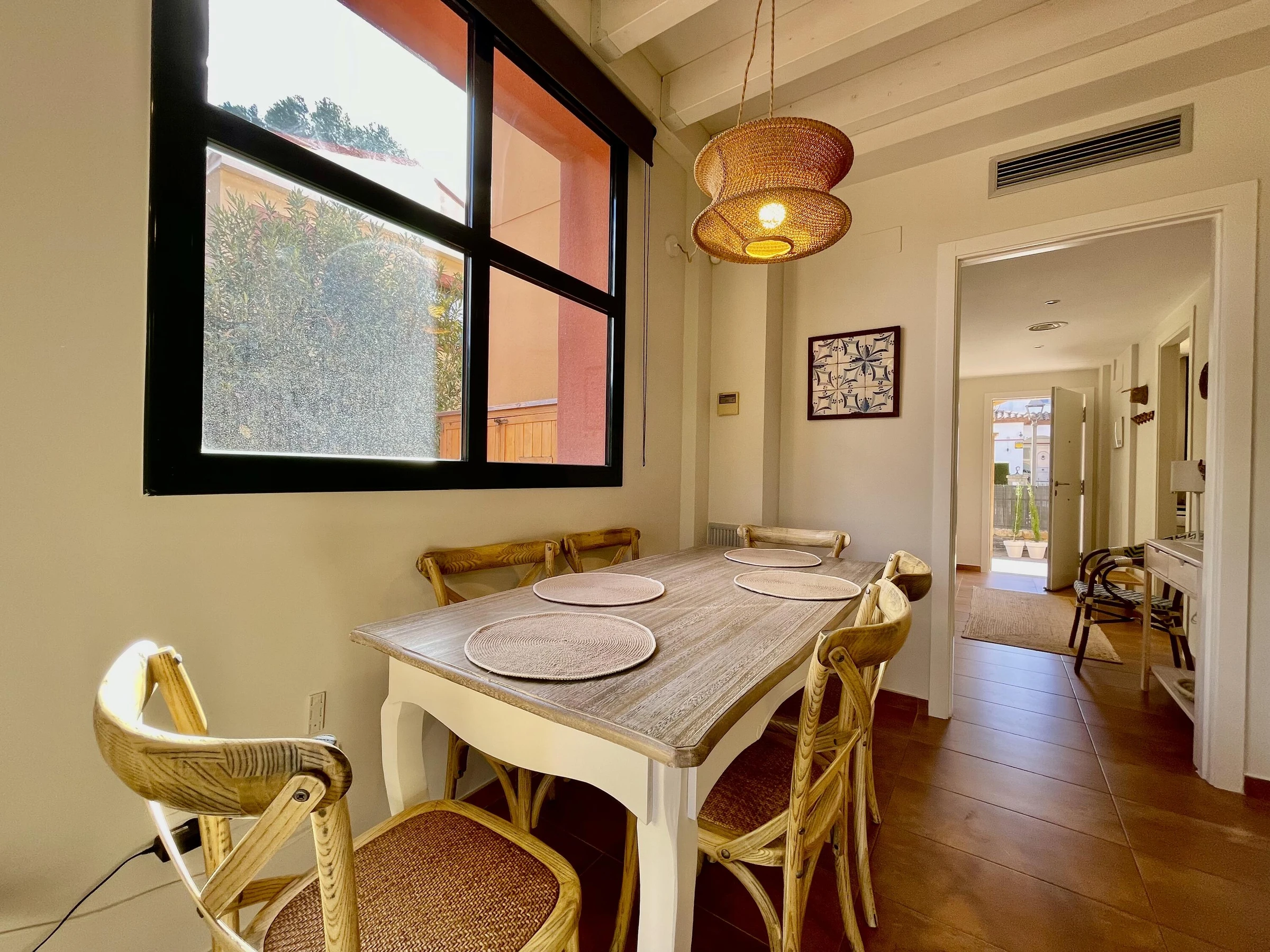 Charmante maison jumelée située dans l'urbanisation Bonmont Terres Noves. Un cadre idéal pour se détendre et s'évader. Cette magnifique propriété se déploie sur deux niveaux. Le rez-de-chaussée comprend un hall d'entrée, une cuisine entièrement équipée, une chambre double, une salle de bains et un séjour/salle à manger convivial donnant sur un jardin privatif et une agréable terrasse avec barbecue, parfaite pour partager des moments conviviaux en famille ou entre amis. Vous bénéficierez également d'un accès direct à la piscine commune, de la climatisation centrale et du Wi-Fi. L'étage supérieur dispose de deux chambres doubles et d'une salle de bains. Une place de parking est incluse. Réservez vos vacances dès maintenant et ne manquez pas cette opportunité ! Les animaux de compagnie sont les bienvenus (8 kg maximum). Le linge de lit et les serviettes ne sont pas fournis. La taxe de séjour est à régler à l'arrivée.