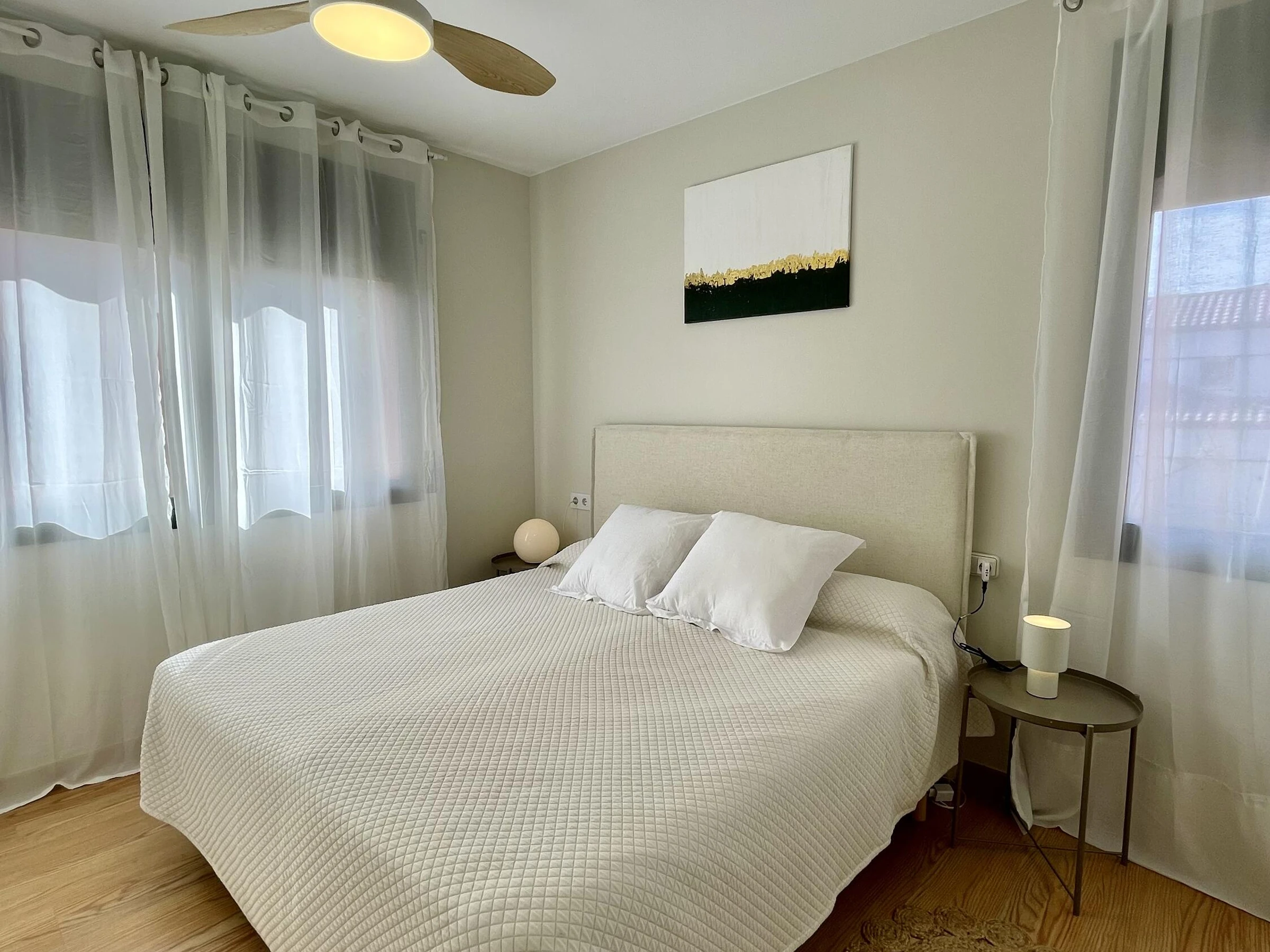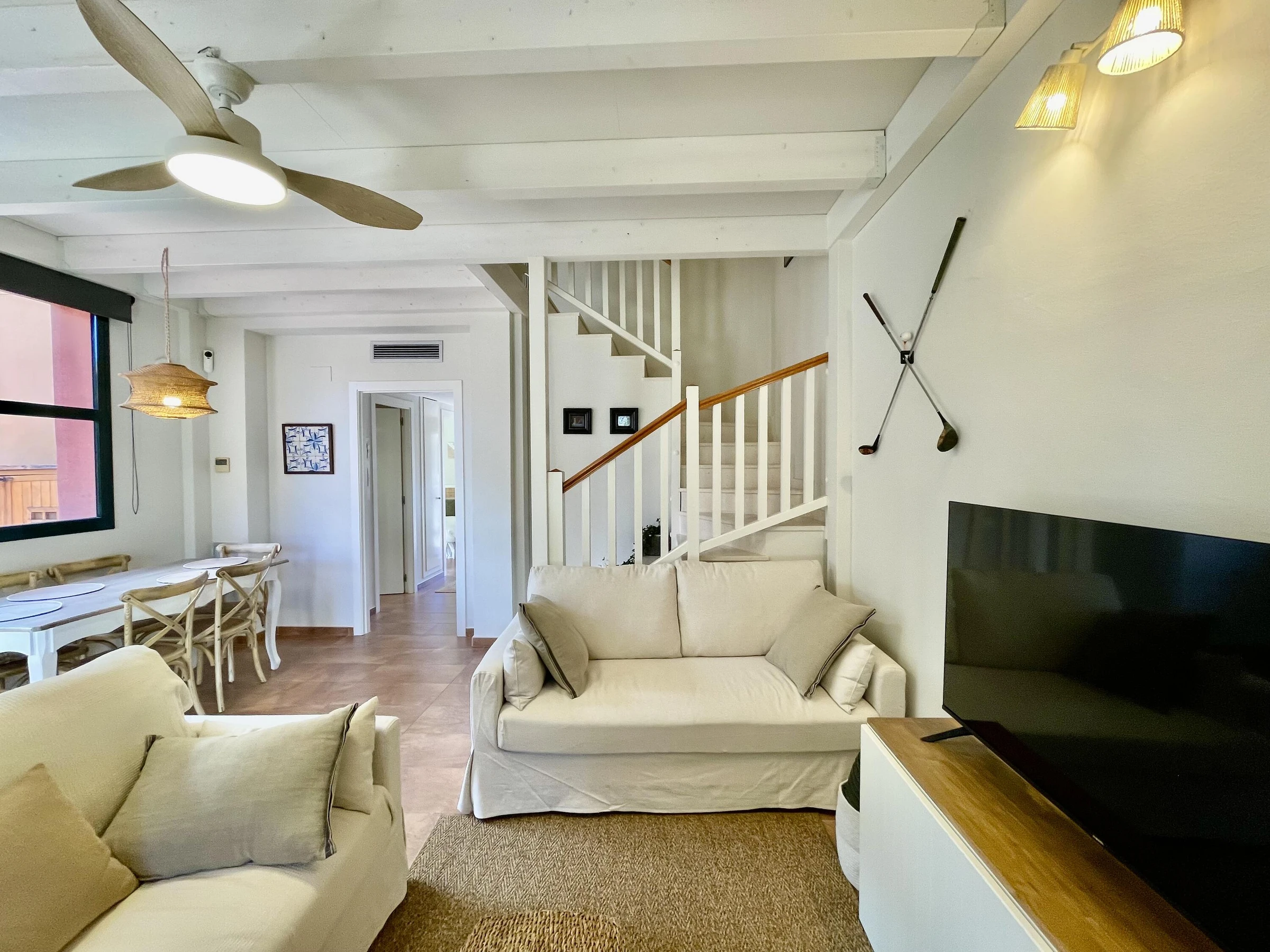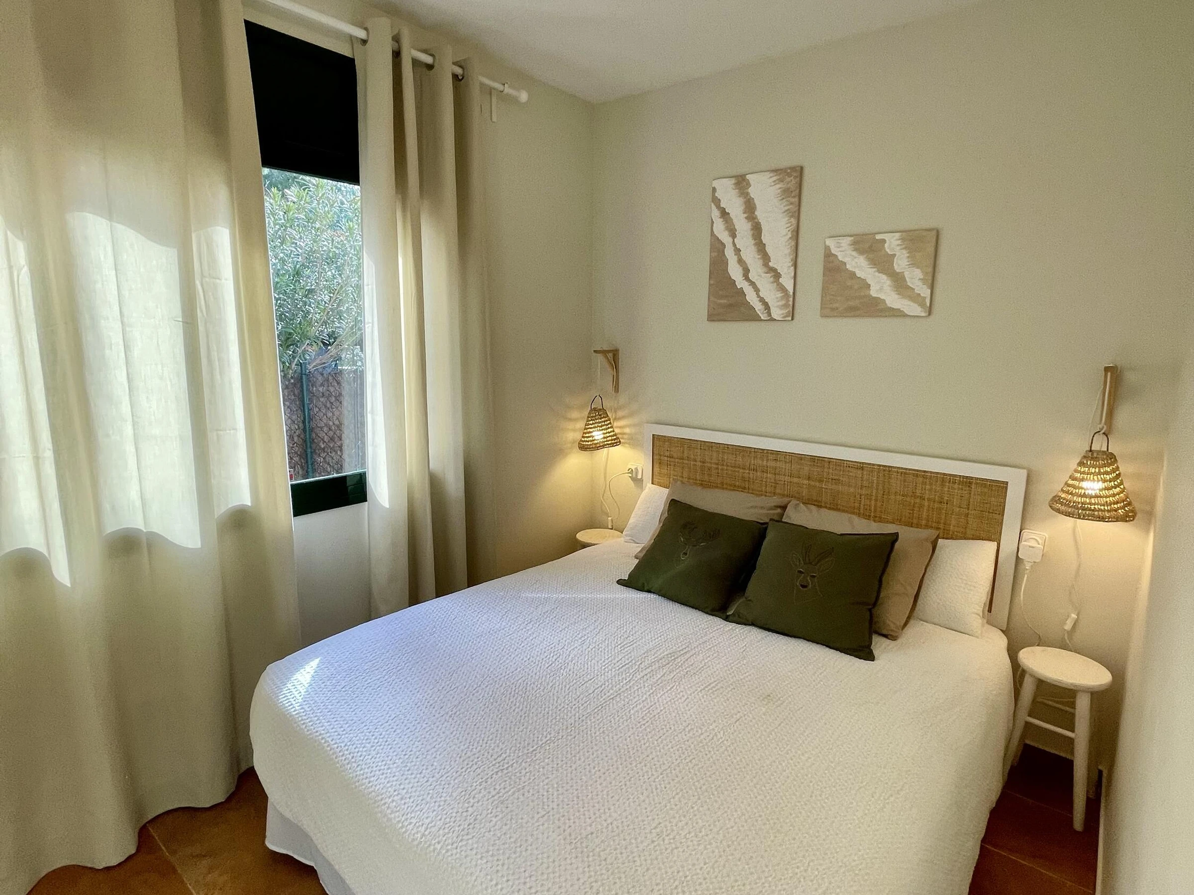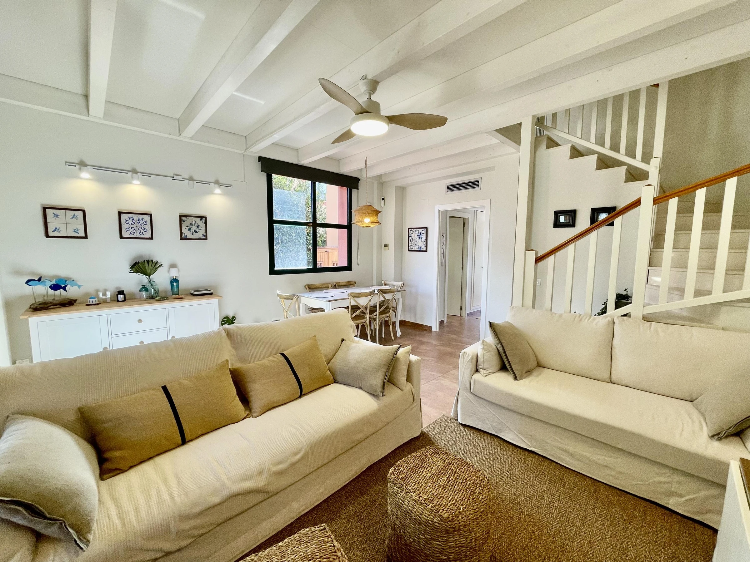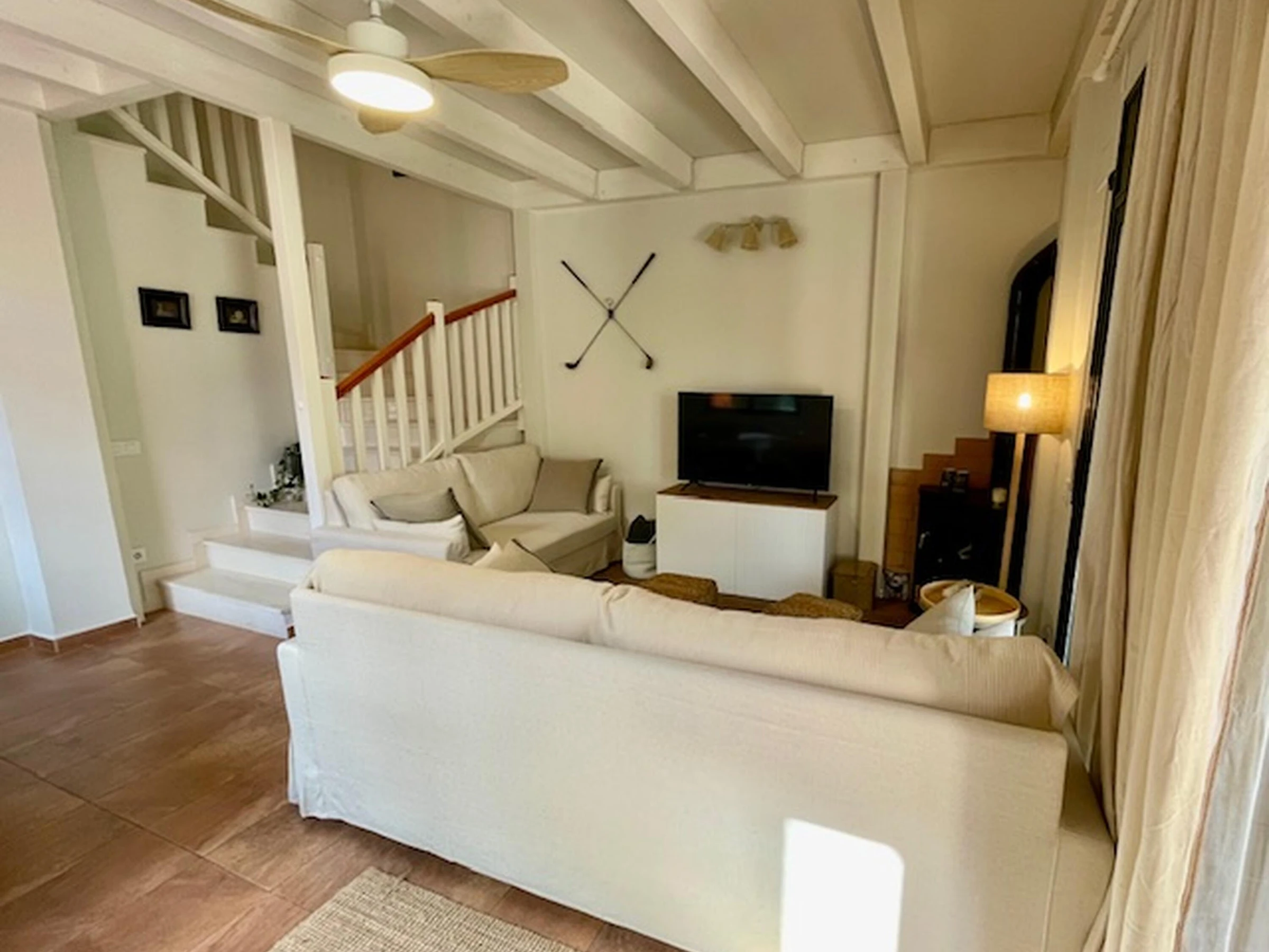 Charmante maison jumelée située dans l'urbanisation Bonmont Terres Noves. Un cadre idéal pour se détendre et s'évader. Cette magnifique propriété se déploie sur deux niveaux. Le rez-de-chaussée comprend un hall d'entrée, une cuisine entièrement équipée, une chambre double, une salle de bains et un séjour/salle à manger convivial donnant sur un jardin privatif et une agréable terrasse avec barbecue, parfaite pour partager des moments conviviaux en famille ou entre amis. Vous bénéficierez également d'un accès direct à la piscine commune, de la climatisation centrale et du Wi-Fi. L'étage supérieur dispose de deux chambres doubles et d'une salle de bains. Une place de parking est incluse. Réservez vos vacances dès maintenant et ne manquez pas cette opportunité ! Les animaux de compagnie sont les bienvenus (8 kg maximum). Le linge de lit et les serviettes ne sont pas fournis. La taxe de séjour est à régler à l'arrivée.