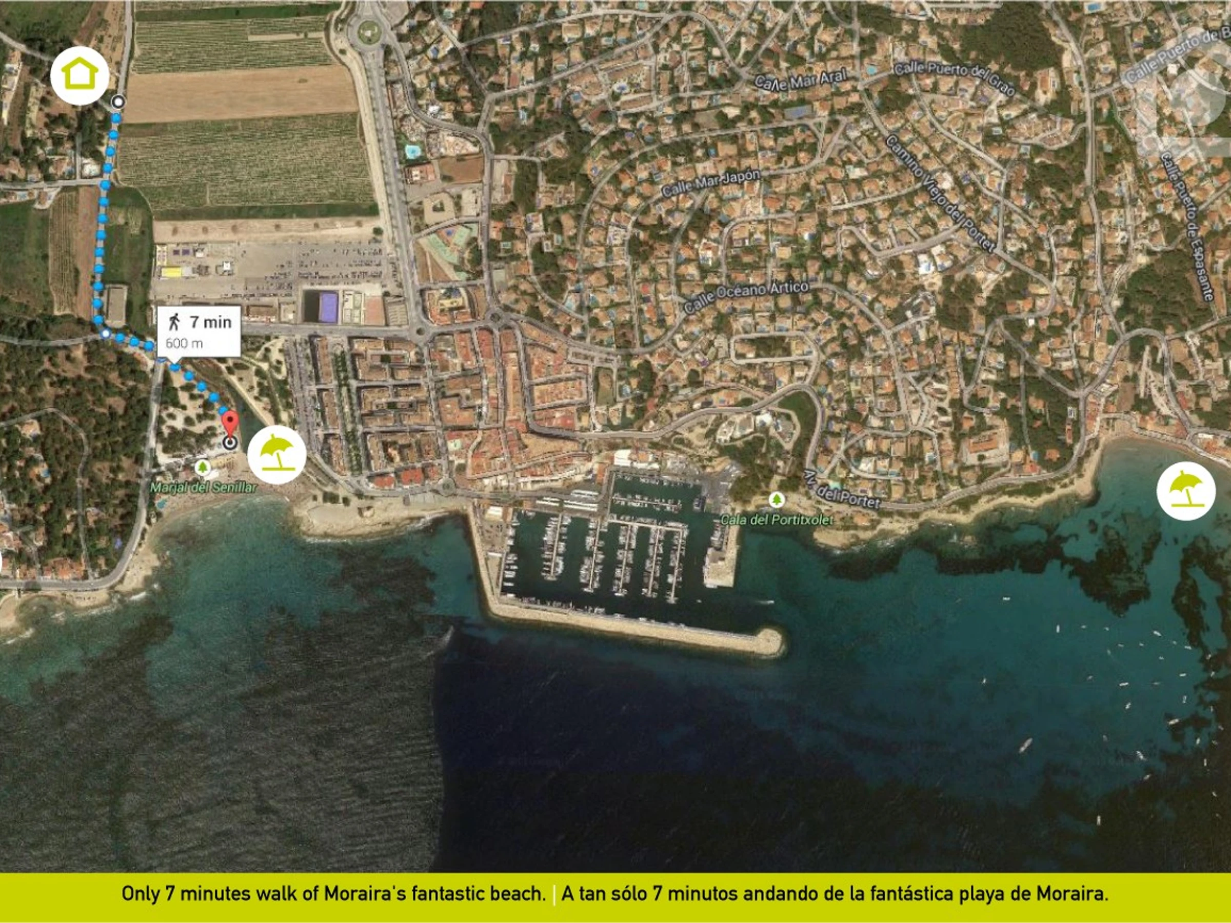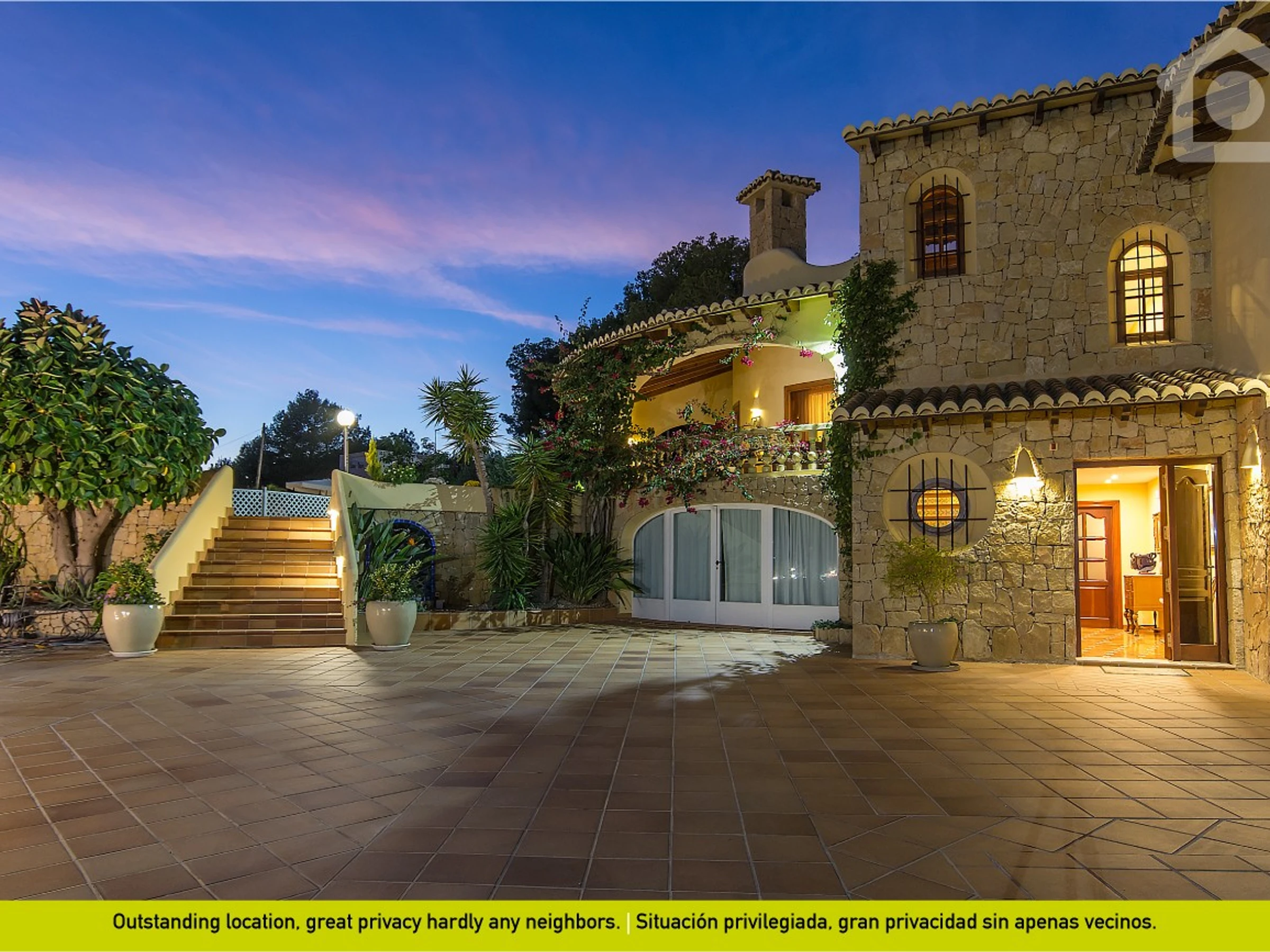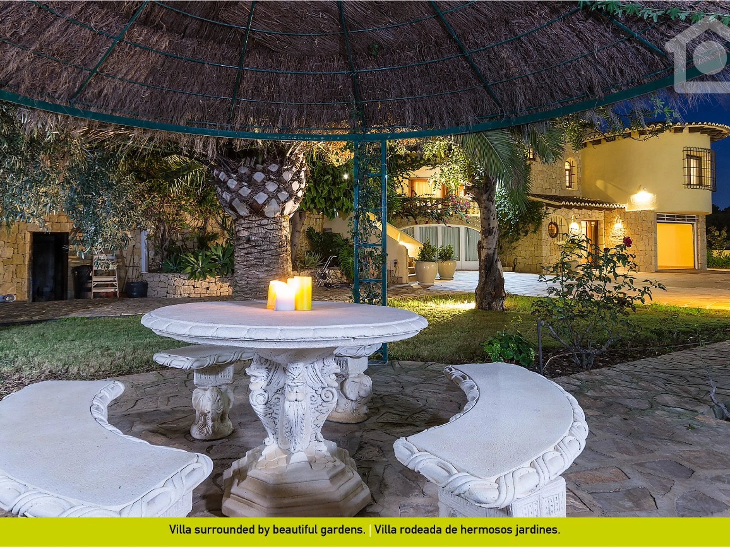 Cette merveilleuse maison est entourée d'un jardin méditerranéen exquisément entretenu où se distinguent les rosiers, les bougainvilliers et les oliviers. Elle est située sur un grand terrain rustique entouré d'arbres et de vignobles. Un emplacement privilégié, très privé, presque sans voisins et à seulement 600 mètres du charmant village de pêcheurs de Moraira, célèbre pour ses plages de sable spectaculaires aux eaux cristallines, sa tranquillité, et la qualité de ses offres de restauration et de commerce.