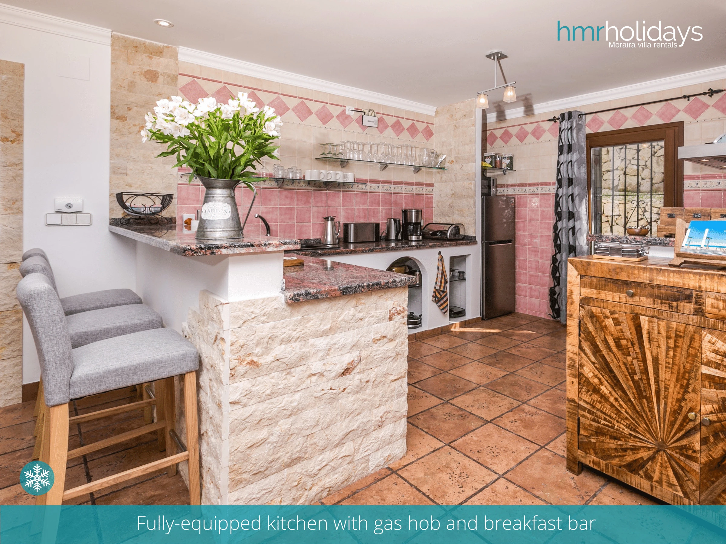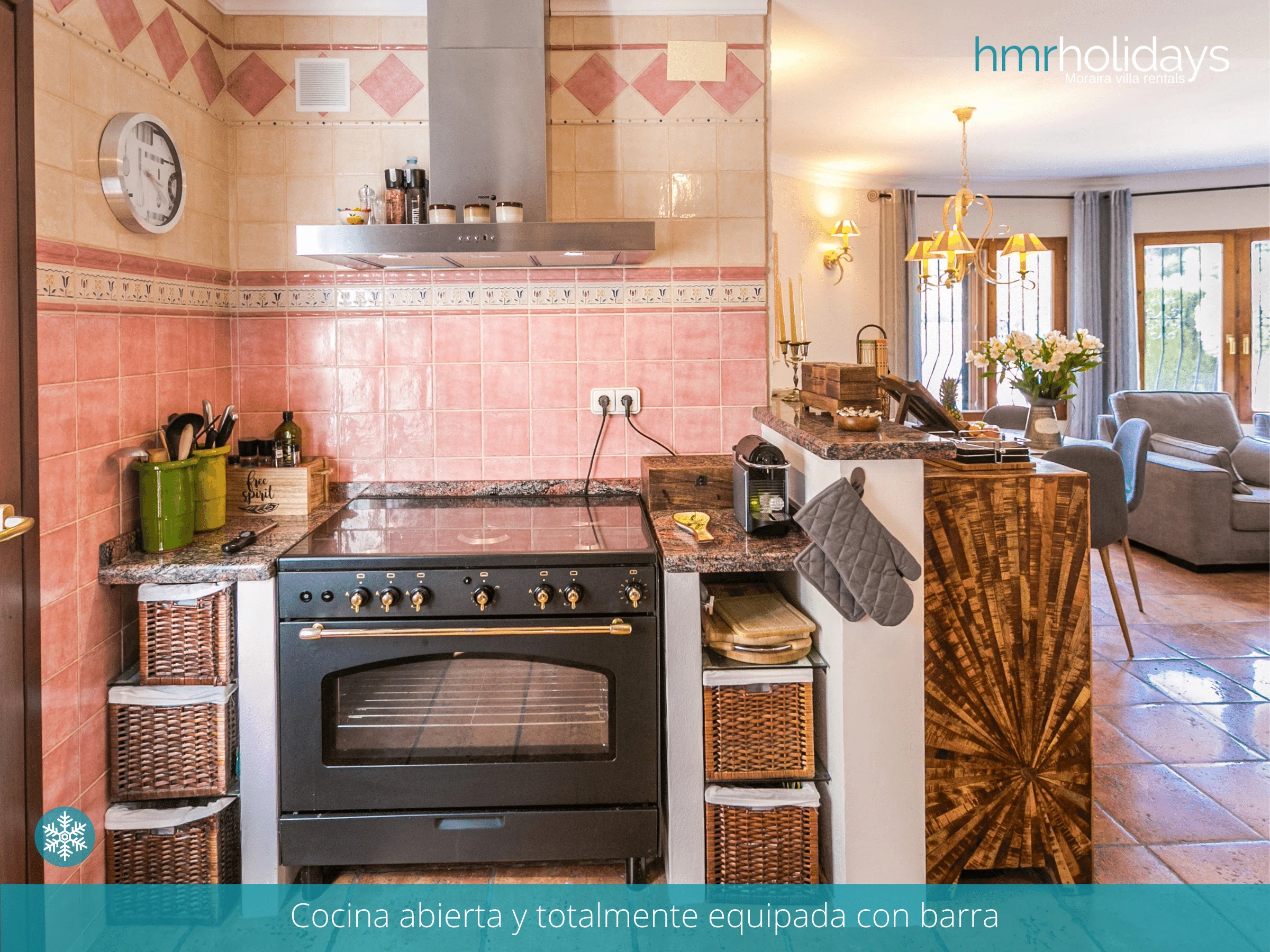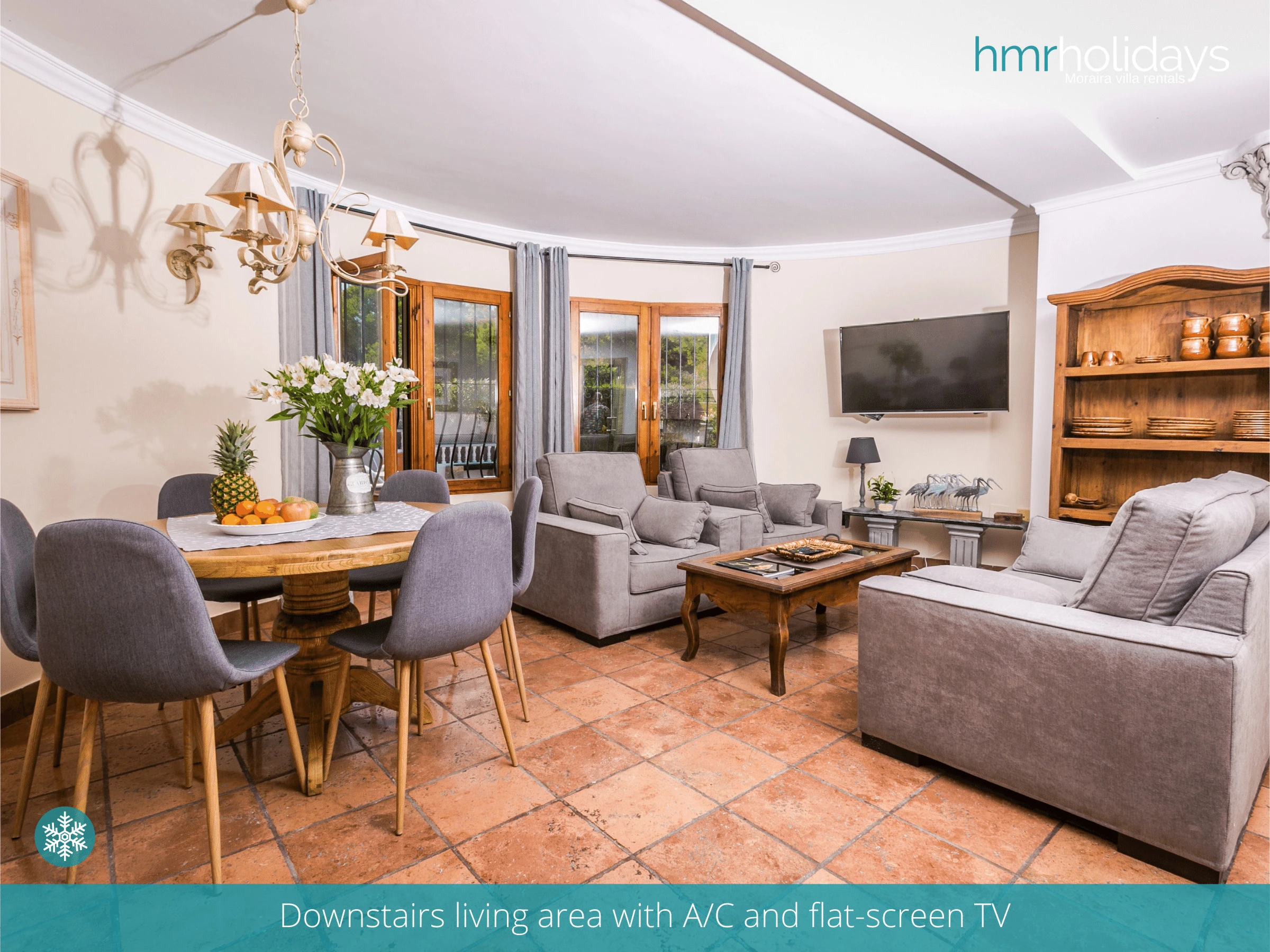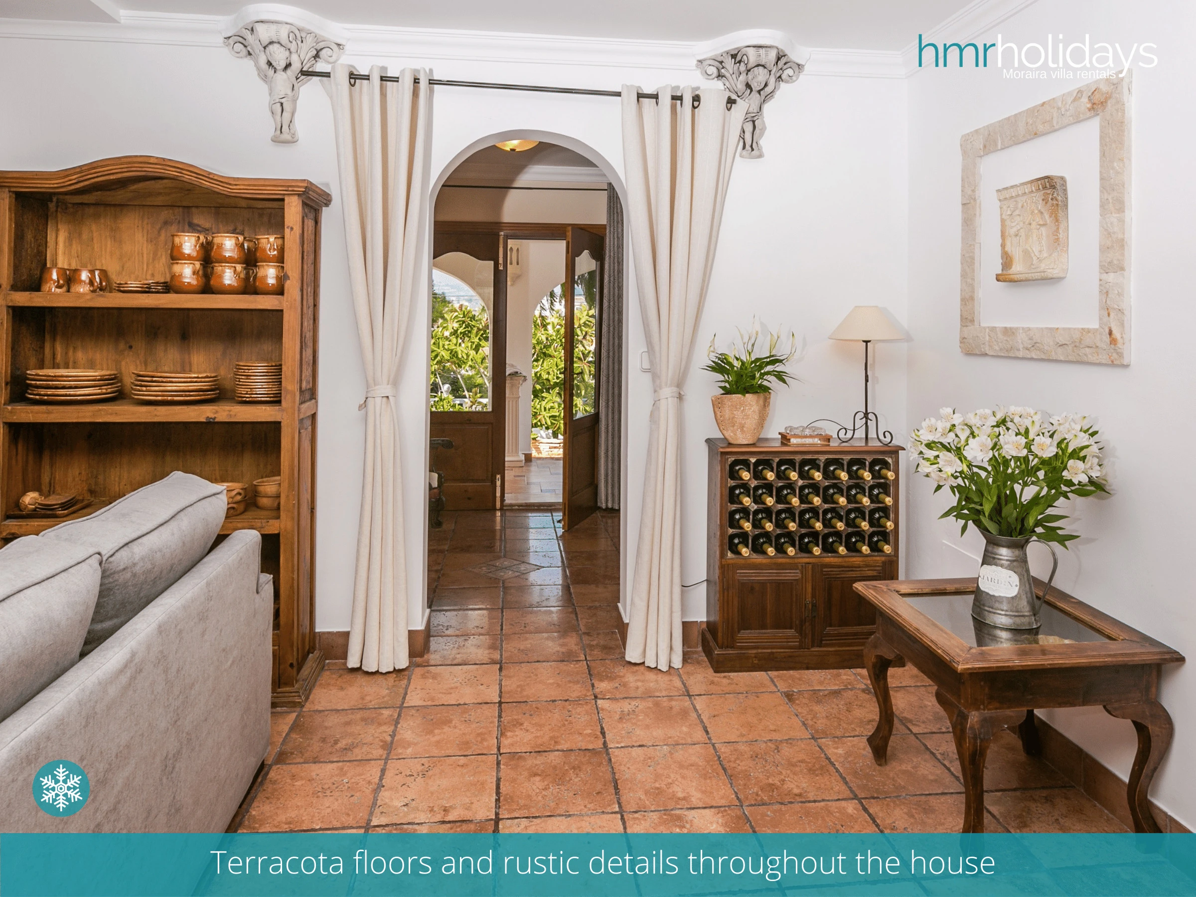 L'intérieur de la villa se caractérise par une architecture traditionnelle espagnole, avec de beaux carrelages et des accents en bois qui créent une atmosphère chaleureuse et accueillante. Le salon dispose d'un confortable coin salon.