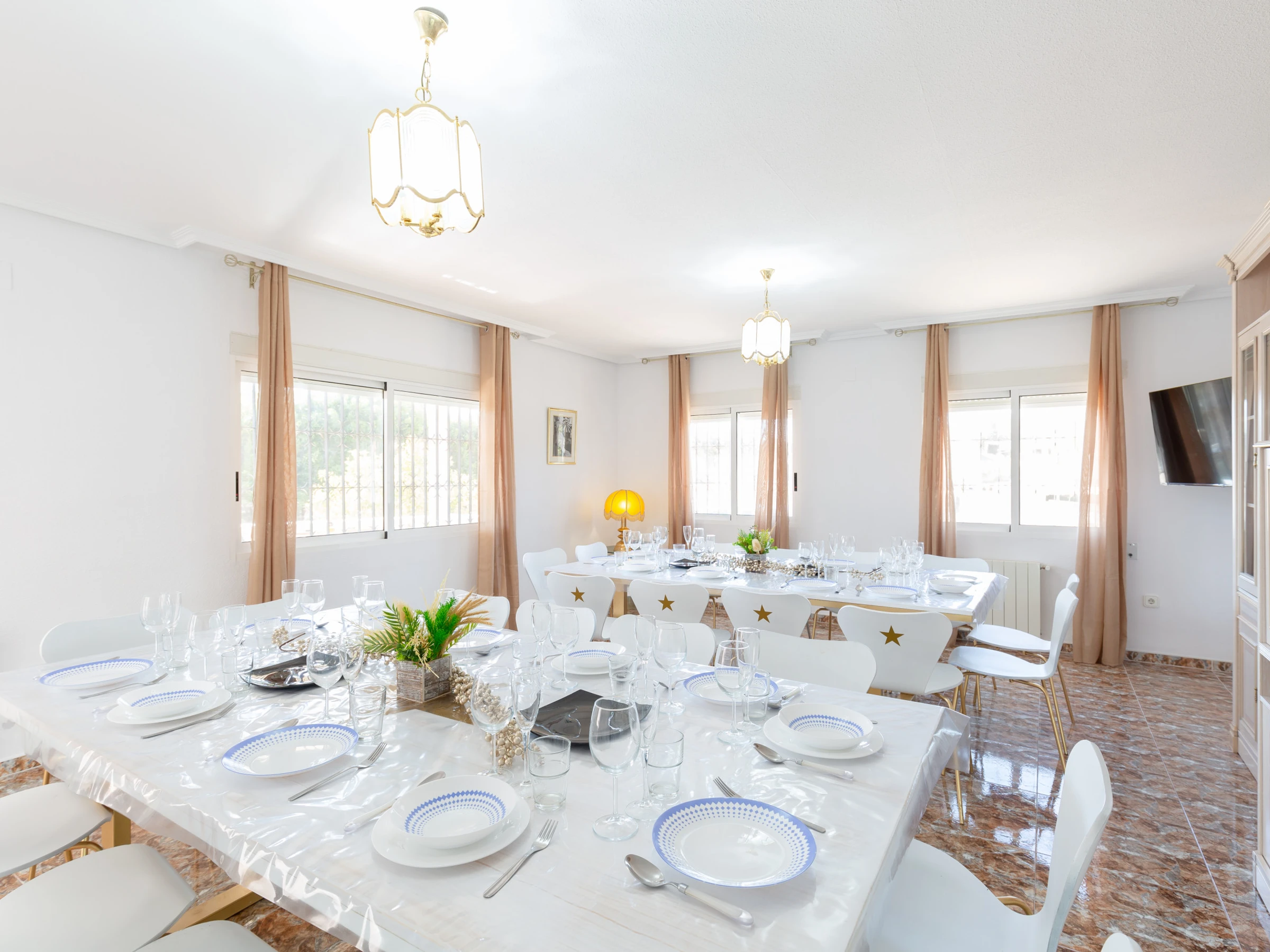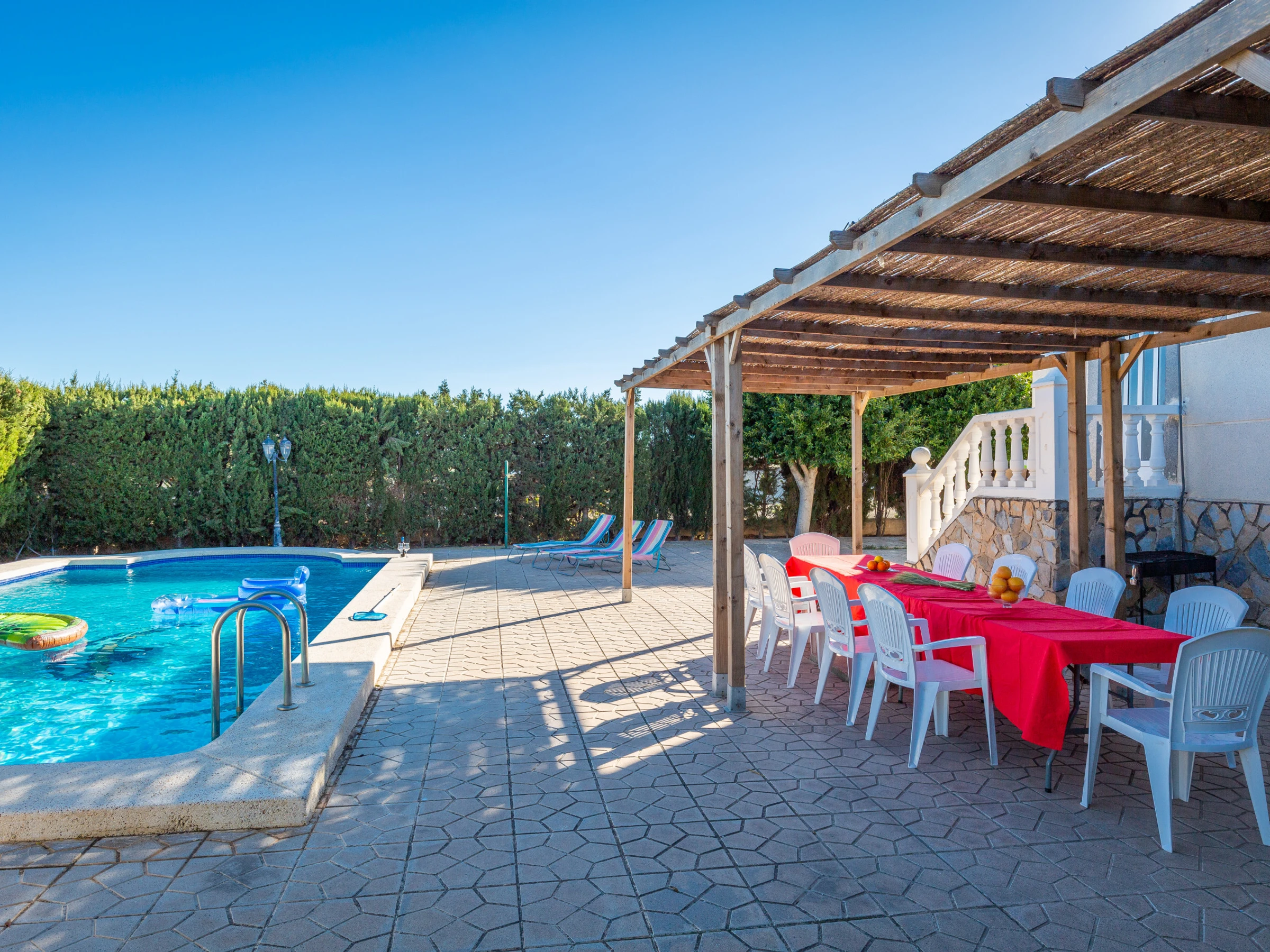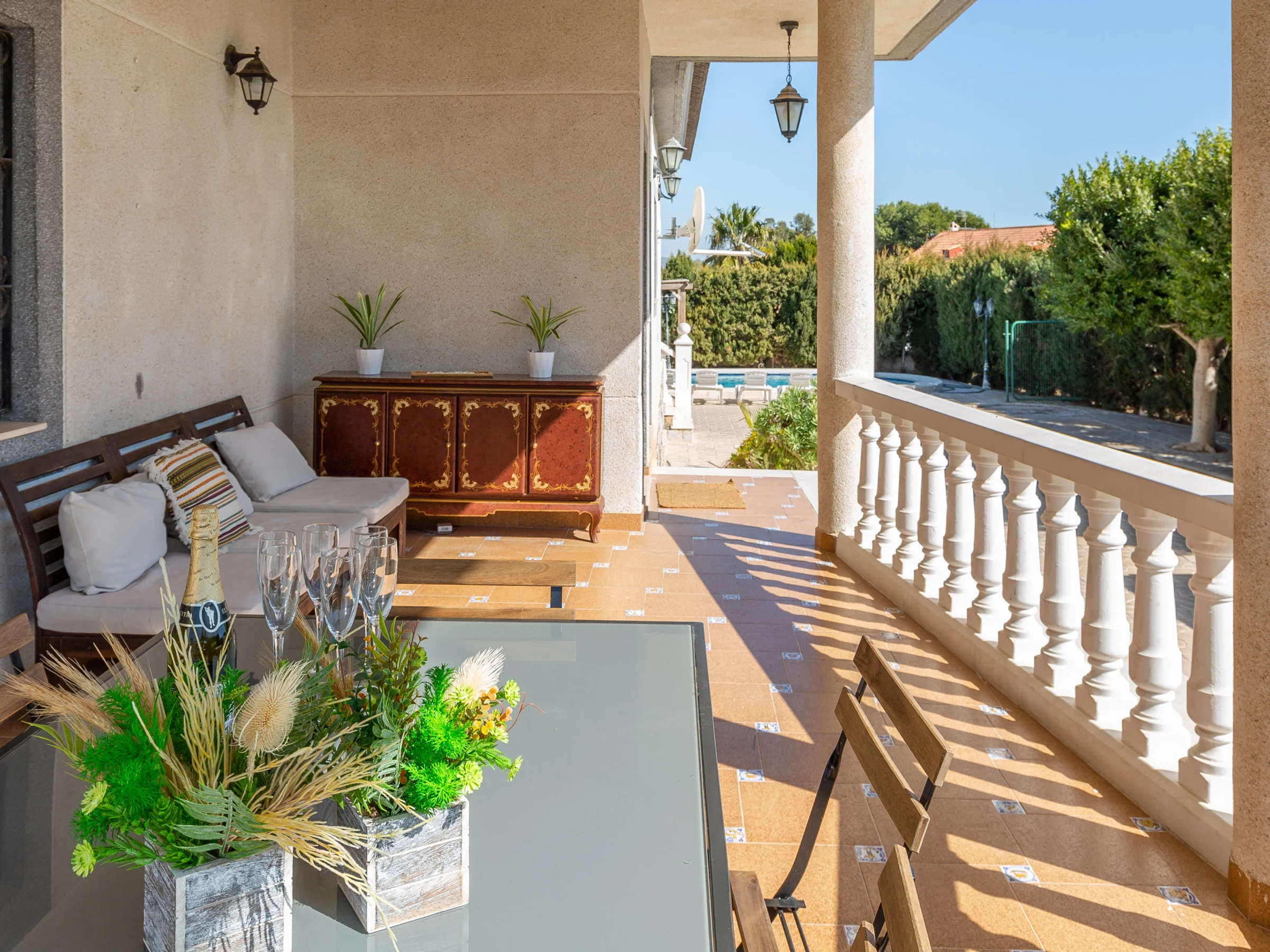 Entrez dans cette majestueuse villa de 9 chambres et 3 salles de bains, pouvant accueillir 16 personnes, un refuge idéal pour les grands groupes qui recherchent intimité, confort et un environnement inspirant près des plages ensoleillées de Mutxamiel et San Juan.