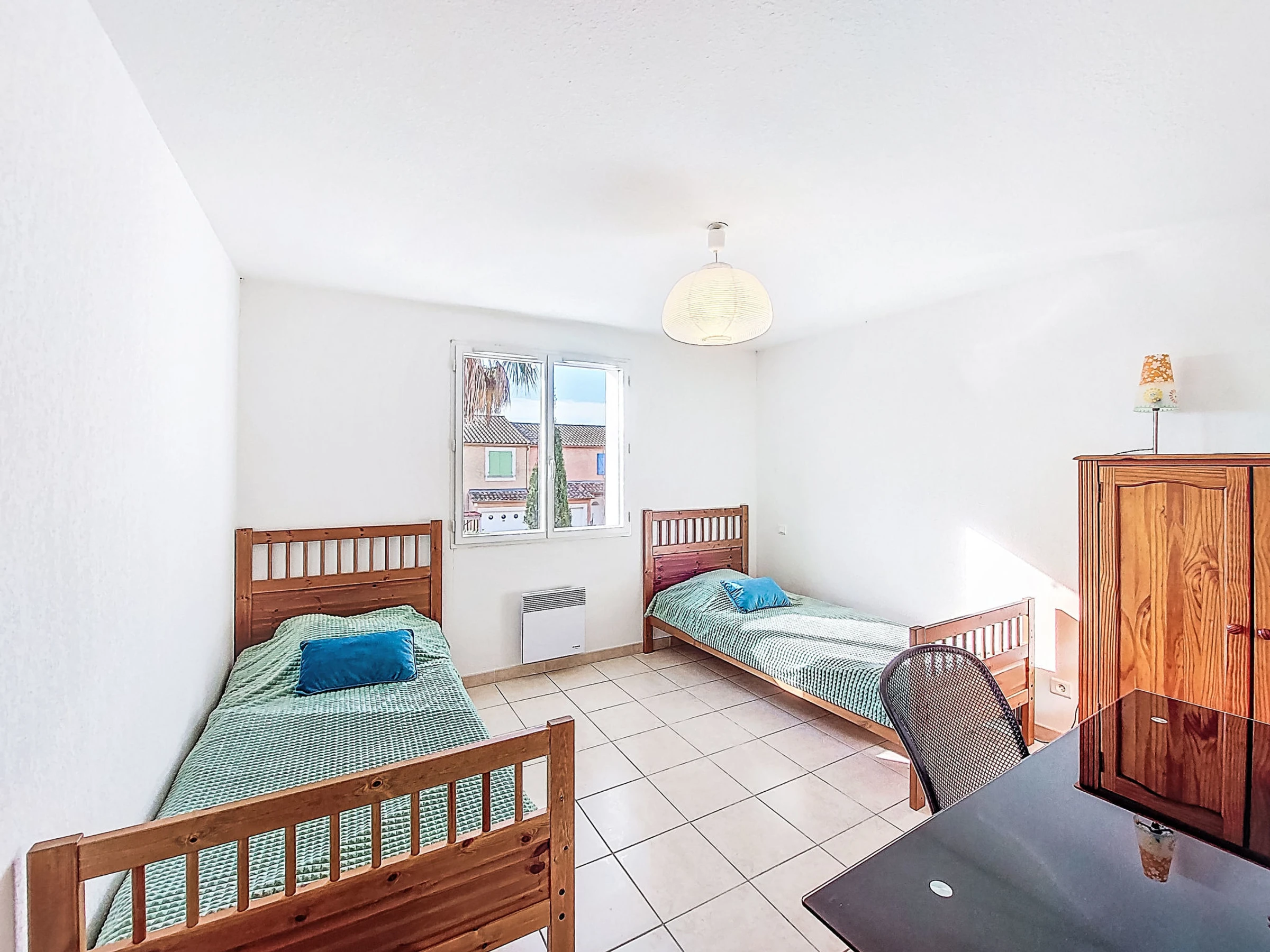 Maison mitoyenne 4 pièces 94 m2 sur 2 niveaux, situation sud. Aménagement confortable: séjour/salle à manger avec chaîne stéréo. Grande cuisine ouverte (four, lave-vaisselle, 4 plaques à induction, grille-pain, bouilloire électrique, micro-ondes, congélateur, cafetière électrique). WC séparé. À l'étage supérieur: 1 chambre avec 1 grand-lit (1 x 140 cm, longueur 190 cm). 2 chambres, chaque chambre avec: 2 lits (90 cm, longueur 190 cm). Salle de bains, WC séparé. Chauffage électrique. Terrasse 20 m2, situation nord. Meubles de terrasse. A disposition: lave-linge. Internet (Connexion WIFI, en sus). Place de parking (cloturée, 1 Voiture). Veuillez noter: détecteur de fumée. Annonce d'un particulier (art 155, IV du CGI).