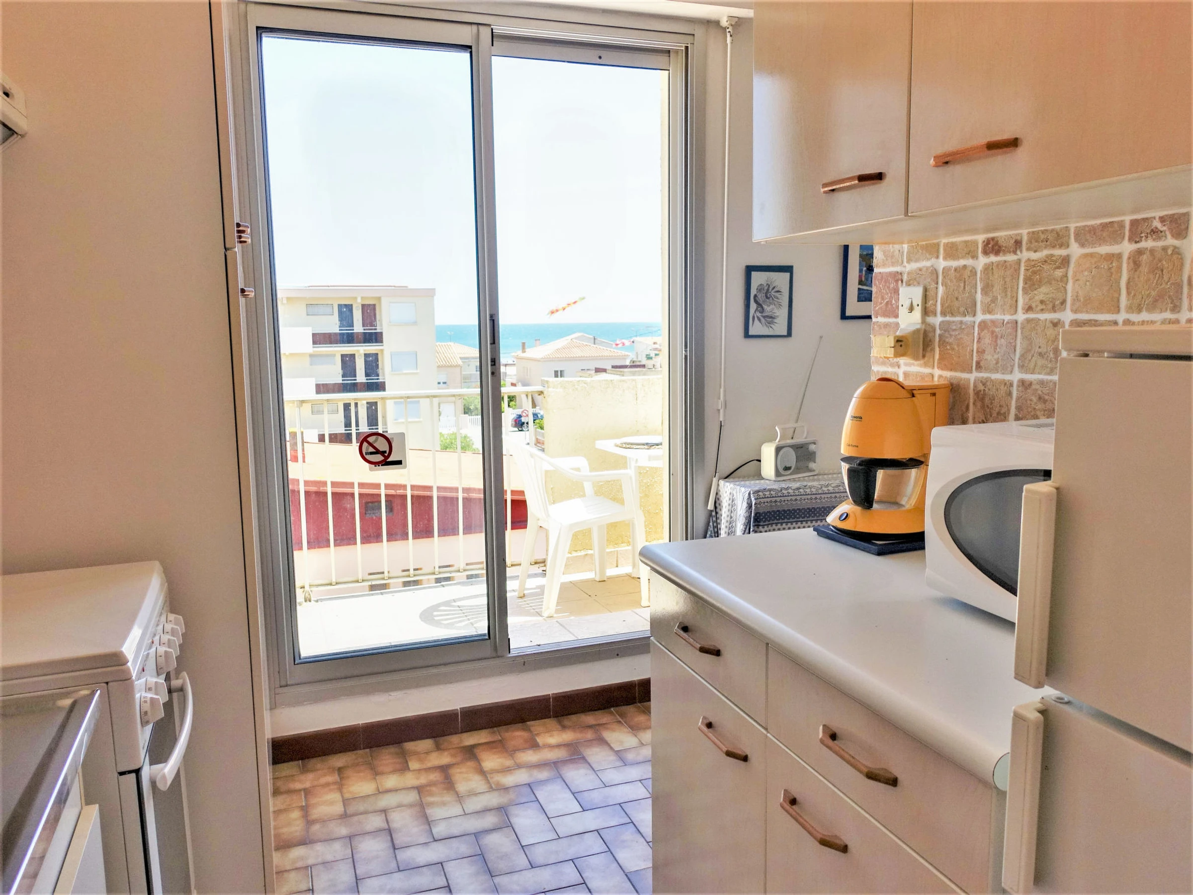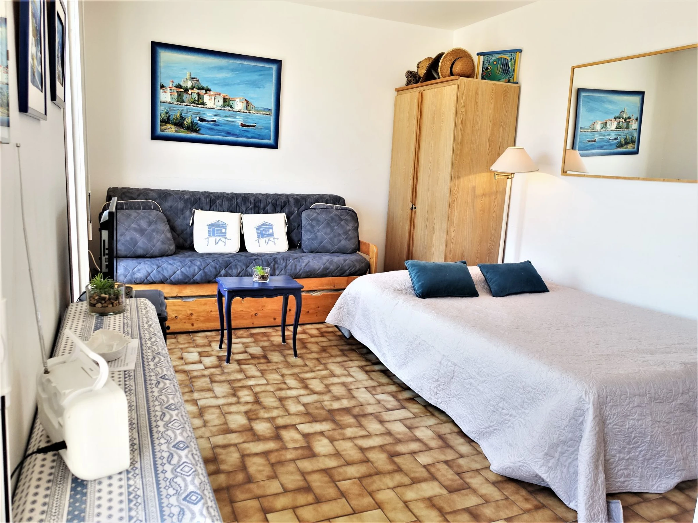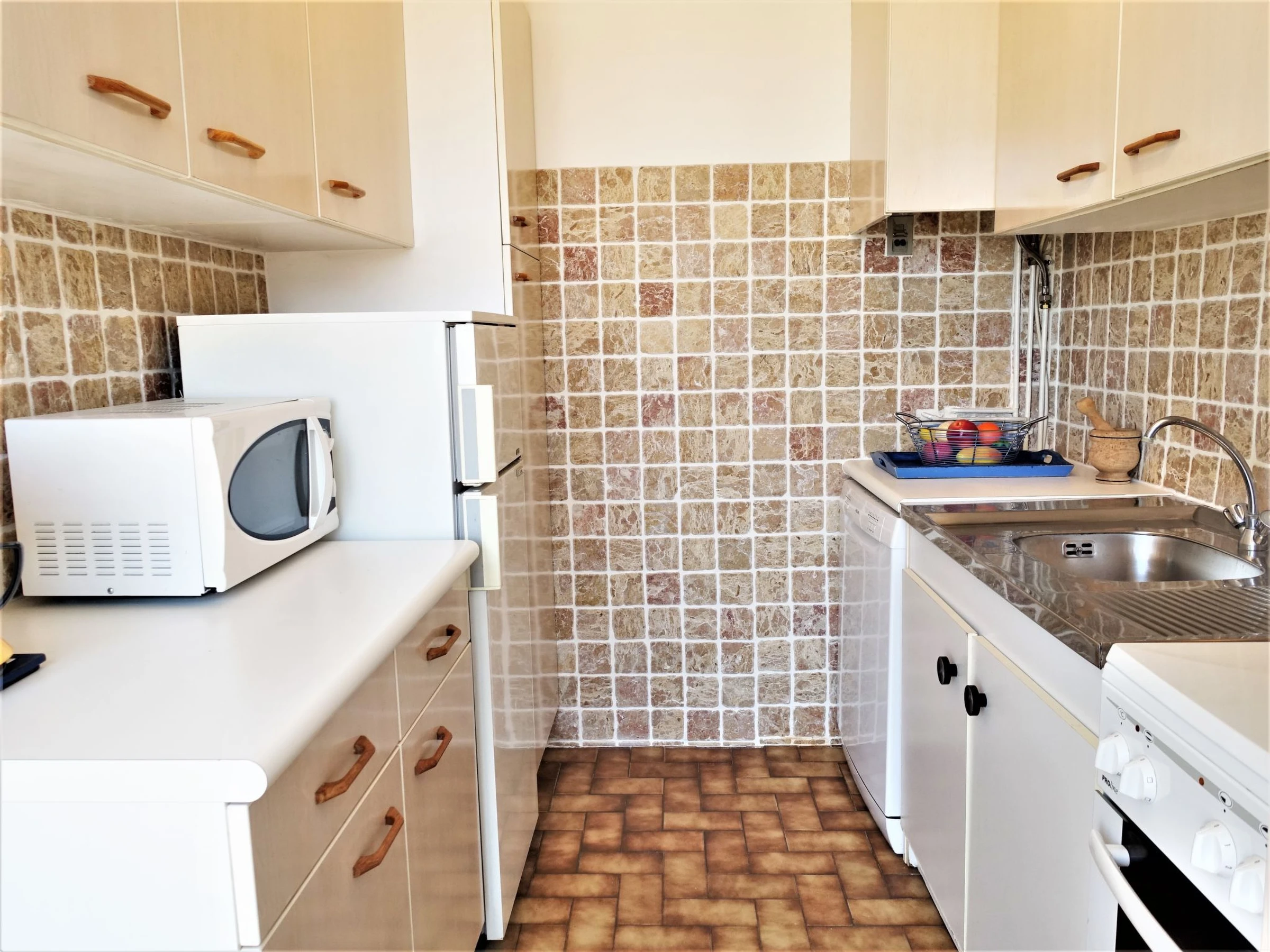Studio 27 m2 au 3ème étage. Aménagement fonctionnel: séjour/salle à manger avec 1 divan-lit double et TV. Sortie sur le balcon, orientée sud-est. Cuisine ouverte (4 plaques de cuisson, four, lave-vaisselle, micro-ondes, congélateur). Douche/WC. Pas de chauffage. Balcon 10 m2. Meubles de terrasse. Vue sur la mer. A disposition: Internet (Connexion WIFI, en sus). Place de parking No 6. Veuillez noter: maximum 1 animal/ chien autorisé. Détecteur de fumée. Annonce d'un particulier (art 155, IV du CGI).