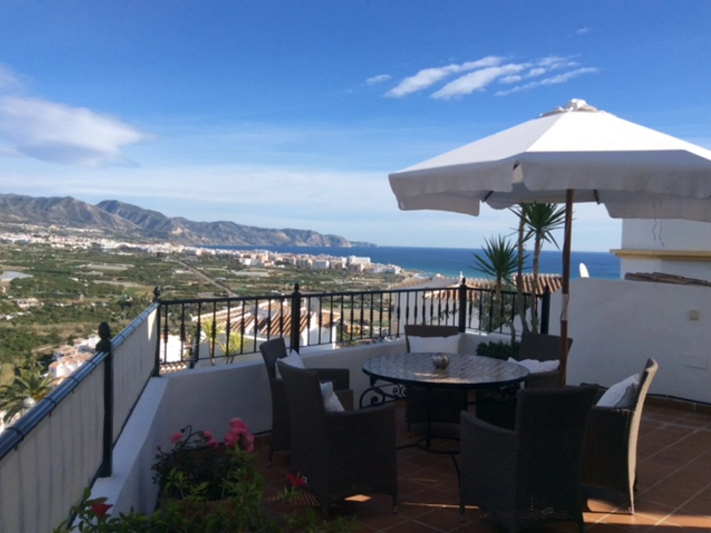 Nichée au sommet de Punta Lara, cette charmante maison offre une vue magnifique sur les montagnes, la mer et la ville de Nerja, idéale pour une escapade relaxante.