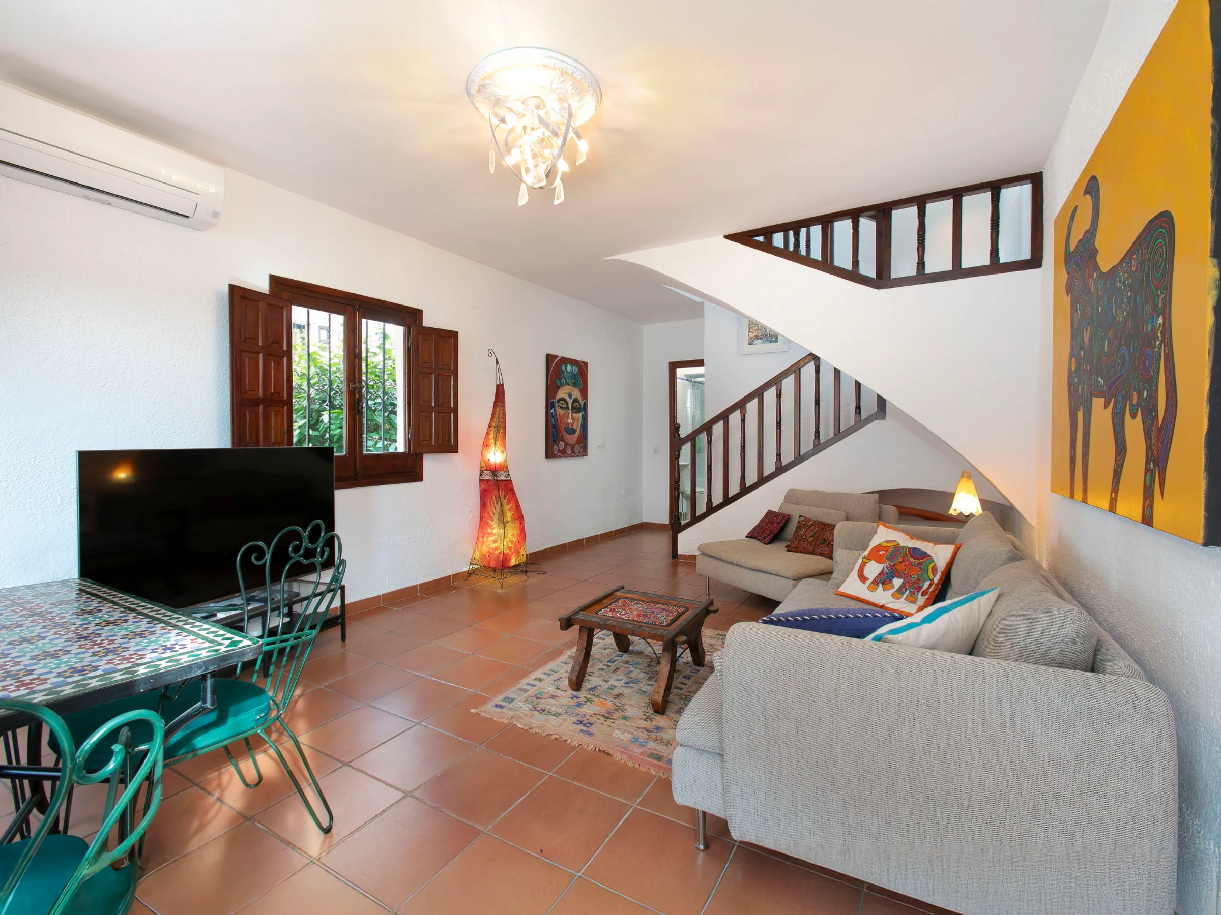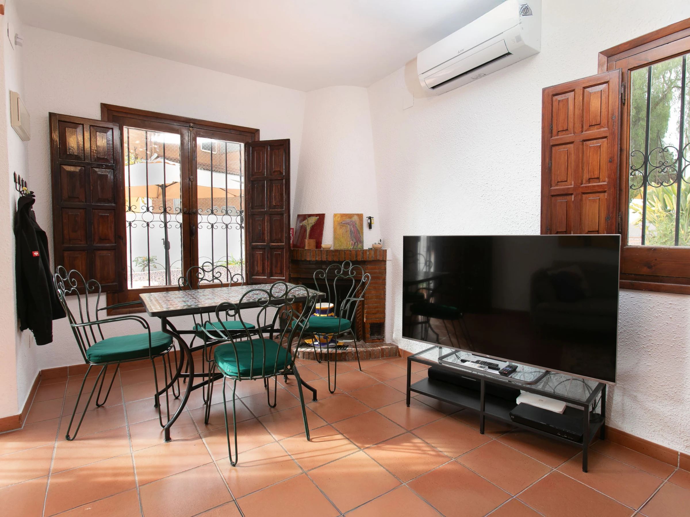 "Central Nerja", maison mitoyenne 3 pièces 90 m2. Aménagement confortable et agréable: séjour/salle à manger avec Télévision numérique, air-conditionné et chauffage à air chaud. Sortie sur la terrasse. Cuisine (four, 3 plaques vitrocéramiques, grille-pain, bouilloire électrique, micro-ondes, congélateur, cafetière électrique). Sortie sur la terrasse. Douche/WC. À l'étage supérieur: 1 chambre avec 2 lits (90 cm, longueur 200 cm), air-conditionné et chauffage à air chaud. 1 chambre avec 1 grand-lit (180 cm, longueur 200 cm), air-conditionné et chauffage à air chaud. Bain/WC. Meubles de terrasse. A disposition: lave-linge, fer à repasser, moustiquaire, chaise haute pour enfant, lit bébé, sèche-cheveux. Internet (Connexion WIFI, gratuit). [hidden] // Reg. Nr.: ESFCTU0000290130001080910000000000000000VUT/MA/514670
