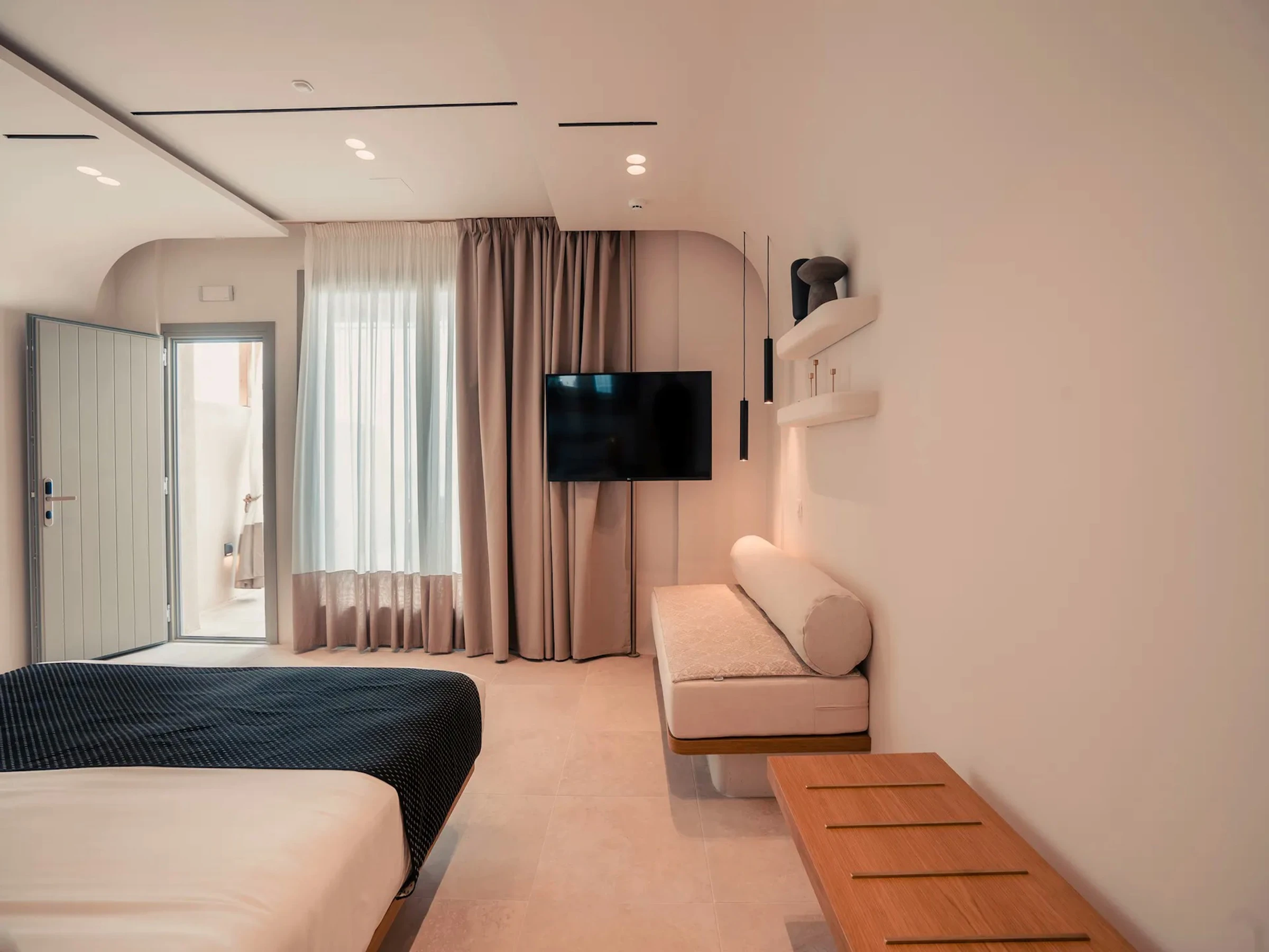 Offrez-vous un séjour en bord de mer et immergez-vous dans la nature avec la Suite Junior Vivid avec Jacuzzi. Ces suites offrent des espaces d'accueil parmi les plus spacieux de Santorin, allant de 32 à 37 m², offrant un espace généreux pour se détendre et se relaxer. Leur aménagement ouvert offre une liberté de mouvement confortable et sans effort.