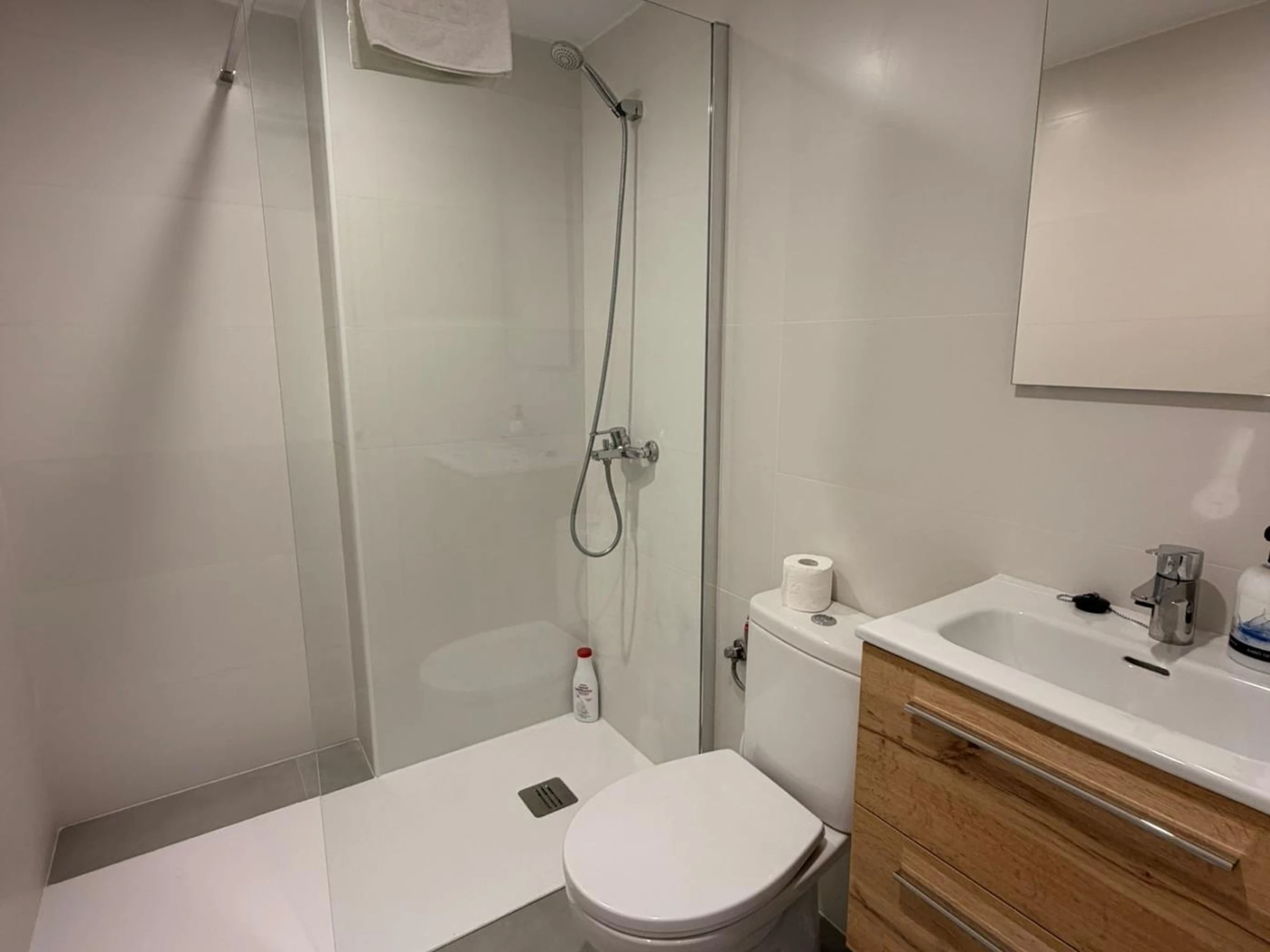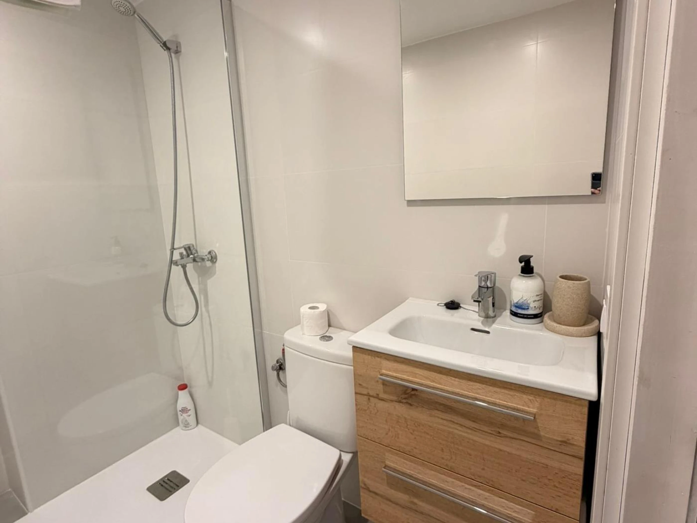 Appartement à 5 minutes de la plage, avec vue sur la mer depuis le balcon et depuis la chambre principale. Il dispose de 3 chambres et d'une salle de bain. Il y a une chambre avec un lit de 1'60m avec fenêtre extérieure et armoire. Une autre chambre avec un lit superposé et une armoire, avec fenêtre intérieure. Et une troisième chambre avec un lit et une fenêtre intérieure. La salle de bain dispose d'une baignoire, d'un sèche-cheveux, d'un fer à repasser et d'un bidet intégré aux toilettes. Il y a une buanderie avec un lave-linge et un espace de séchage.