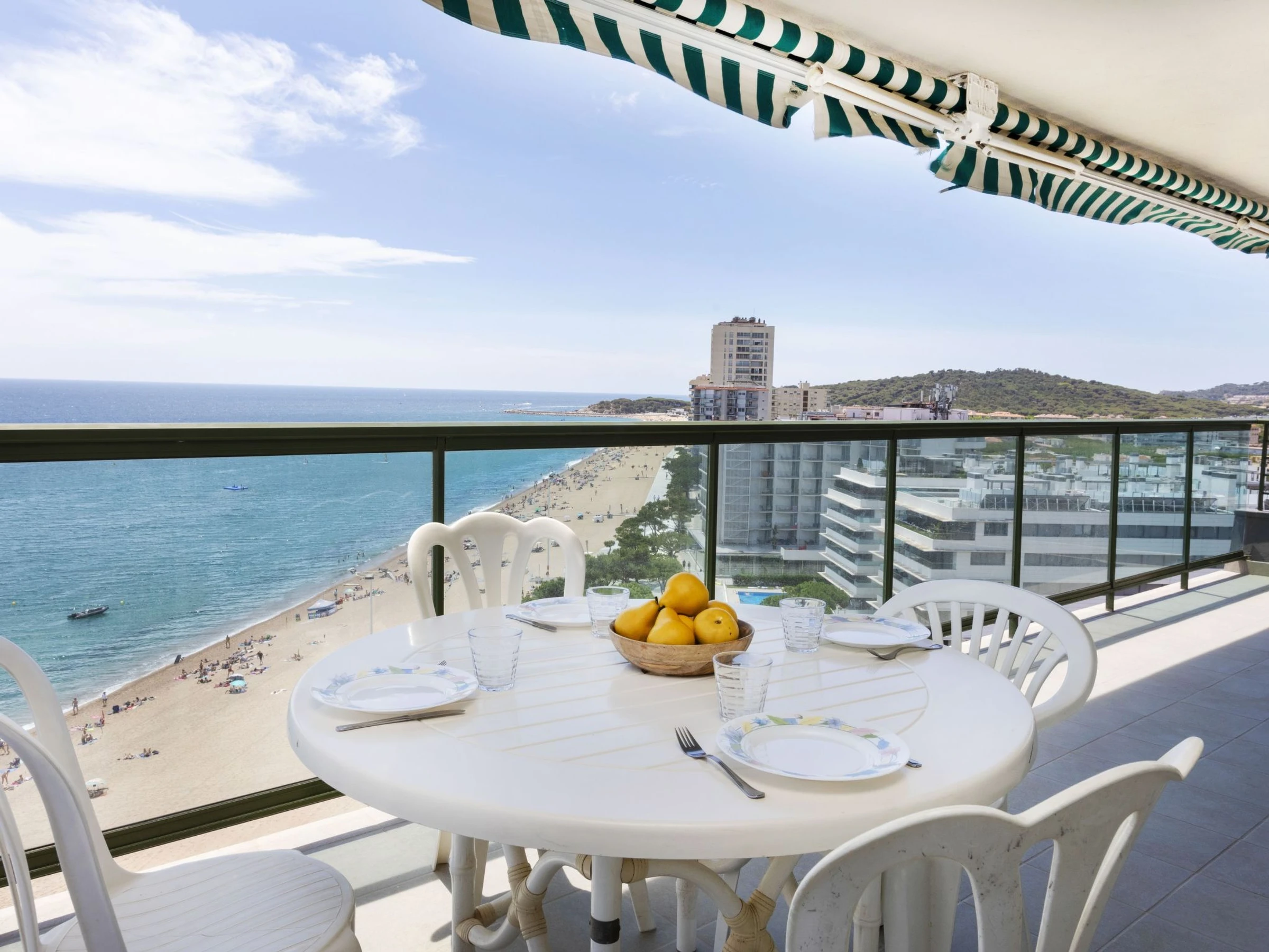 "Groc", apt 3 pièces 70 m2 au 10ème étage. Aménagement fonctionnel: séjour/salle à manger avec Télévision numérique. Sortie sur la terrasse. 1 chambre avec 1 grand-lit (150 cm, longueur 190 cm). Sortie sur la terrasse. 1 chambre avec 1 grand-lit (135 cm, longueur 180 cm). Cuisine (4 plaques vitrocéramiques, grille-pain, bouilloire électrique, micro-ondes, cafetière électrique). Douche/WC. Chauffage. Grande terrasse. Meubles de terrasse. Superbe vue sur la mer. A disposition: lave-linge, fer à repasser, sèche-cheveux. Veuillez noter: logement non-fumeur. TV seulement ES. [hidden] // Reg. Nr.: ESFCTU00001701700010840700000000000000000[hidden]5