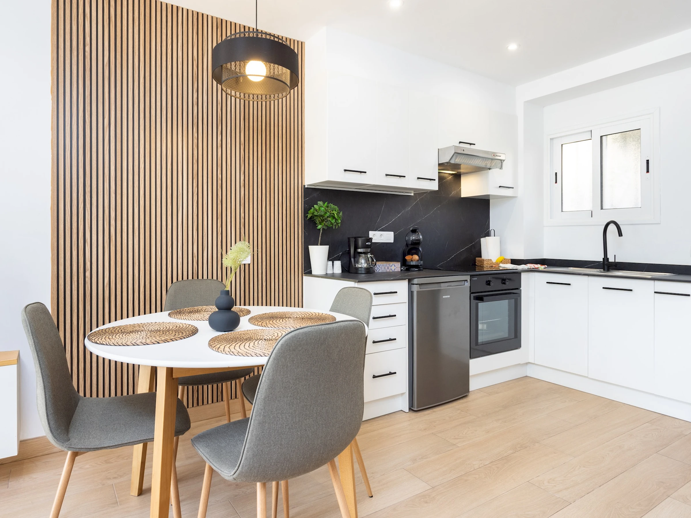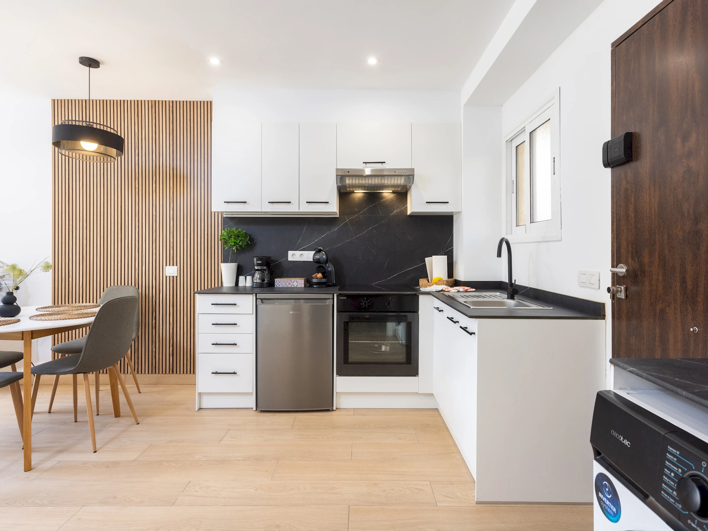 La cuisine, est équipée avec micro-ondes, four, ustensiles/cuisine, cafetière et grille pain.