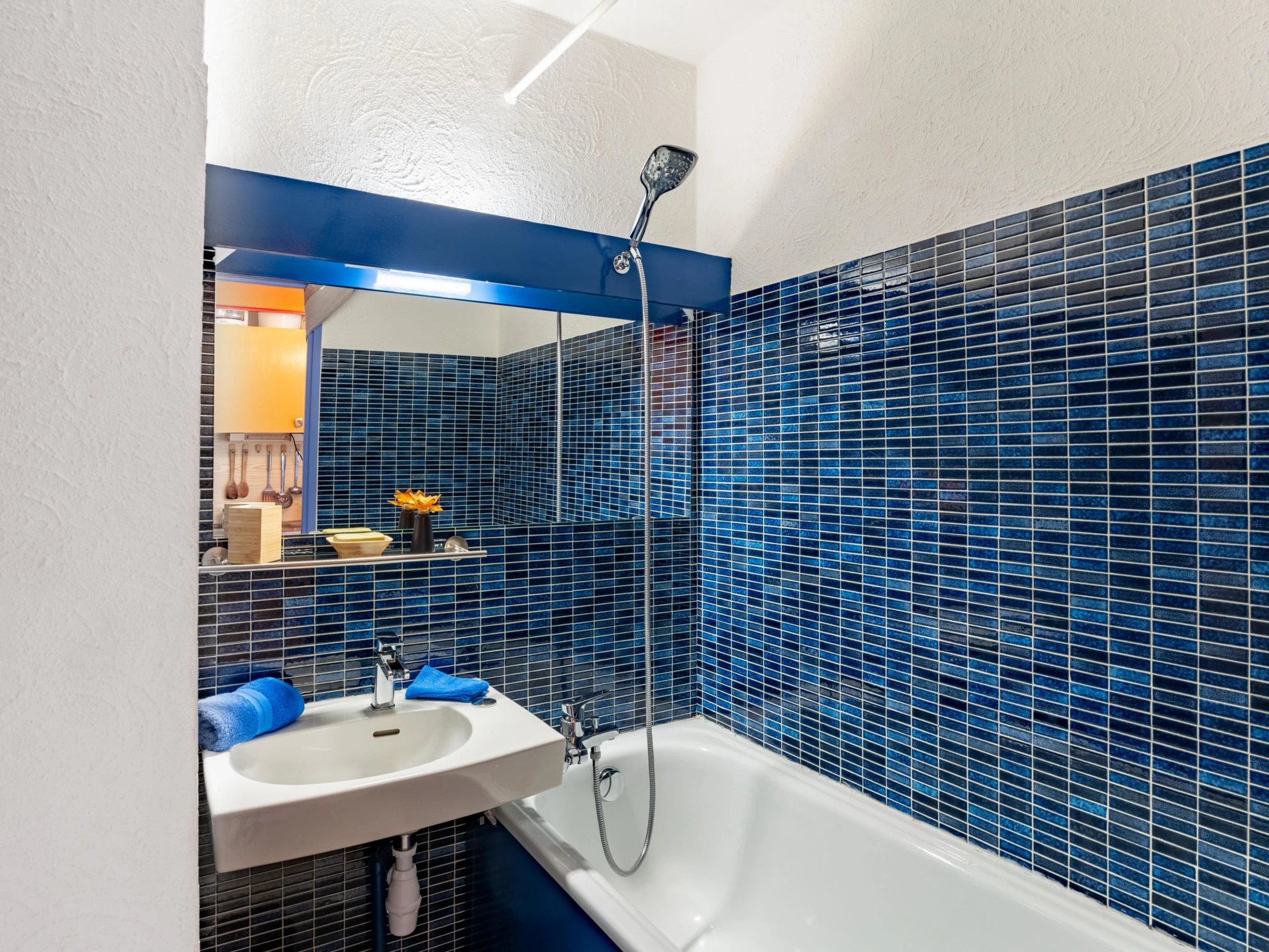 Studio 21 m2 au 2ème étage. Séjour/salle à manger avec 2 divans-lits (120 cm, longueur 190 cm), TV (écran plat). Coin cuisine dans l'entrée (mini-four, four, 2 plaques vitrocéramiques, cafetière électrique). Bain/WC. Terrasse 7 m2, situation sud-est. Meubles de terrasse. A disposition: Internet (Connexion WIFI, en sus). Veuillez noter: maximum 1 animal/ chien autorisé. Détecteur de fumée.