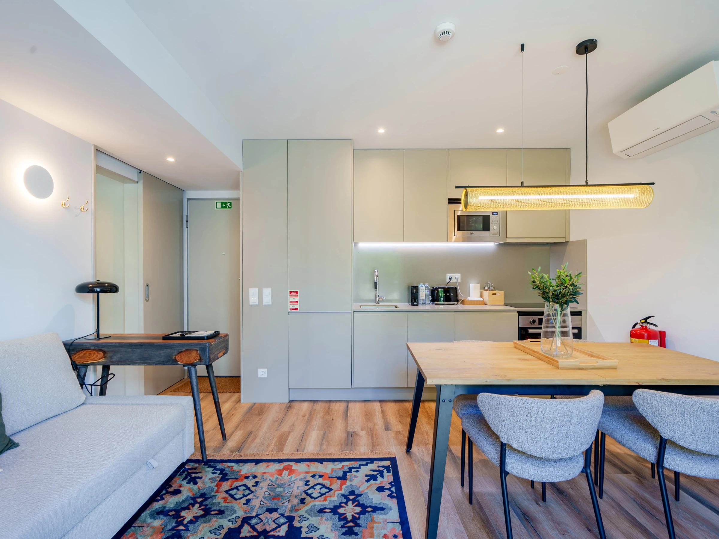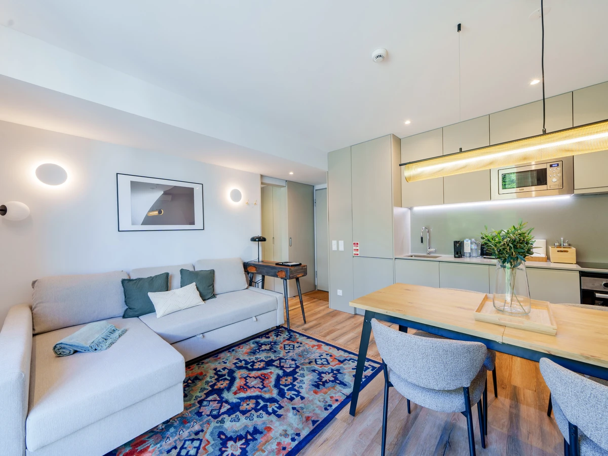 Découvrez cet élégant appartement de 40m², idéal pour 3 personnes, où le design moderne se combine avec le confort dans un emplacement privilégié en plein cœur de Porto.