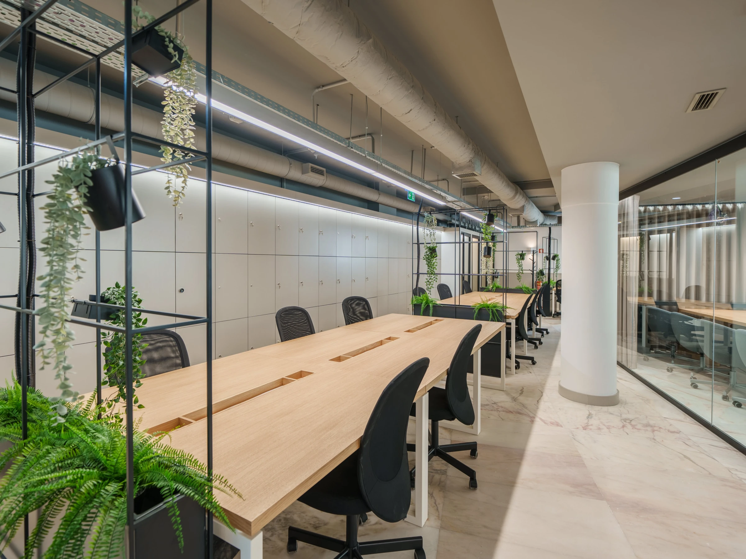 L'espace de Vertical Coworking Firmeza dispose d'une série d'espaces à la pointe de la technologie, de bureaux privés, de grandes salles de réunion, de phone booths avec une excellente isolation et d'une zone de détente. Il y a une cuisine entièrement équipée pour des repas pratiques, avec suffisamment d'espace pour déjeuner de la meilleure manière. L'espace offre également une connexion Internet haut débit pour améliorer la productivité et la création de contenu.