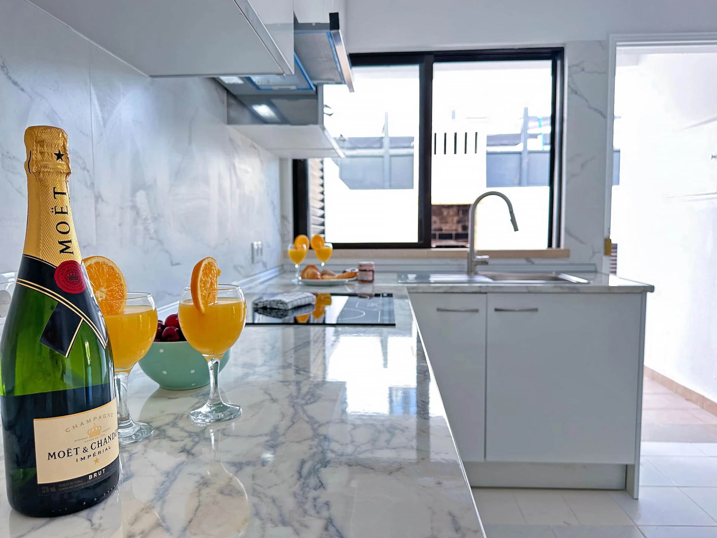 Le rez-de-chaussée dispose d'une cuisine entièrement équipée, adaptée aux familles, et d'un salon lumineux et ouvert — le cadre idéal pour des repas partagés et des soirées chaleureuses. Sortez pour profiter de la piscine exposée au sud, qui offre du soleil toute la journée.