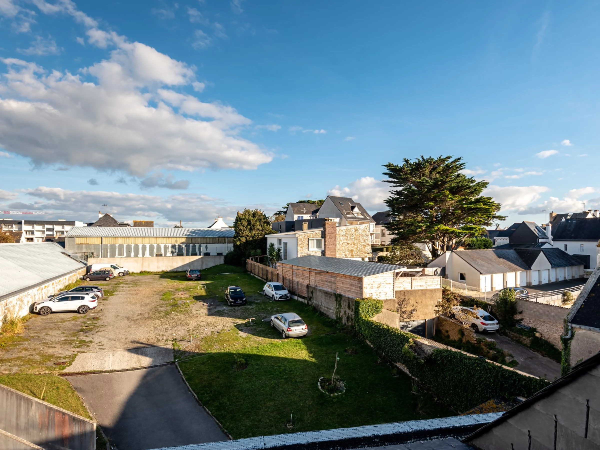 Quiberon: Immeuble de 3 étages. Au centre de Quiberon, à 50 m de la mer, à 50 m de la plage. Place de parking. Magasins, magasin d'alimentation 10 m, supermarché 500 m, centre commercial 10 m, restaurant, bar 50 m, boulangerie 200 m, location de bicyclettes 100 m, arrêt de bus 50 m, plage de sable "Grande plage de Quiberon" 50 m. Attractions à proximité: Gare maritime les iles Houat, Hoedic. 800 m, Les alignements de Carnac 26 km, Auray et le port de St Goustan 33 km, Vannes 48 km, Lorient 50 km. La remise des clés a lieu à l’agence de Quiberon, 1 km.