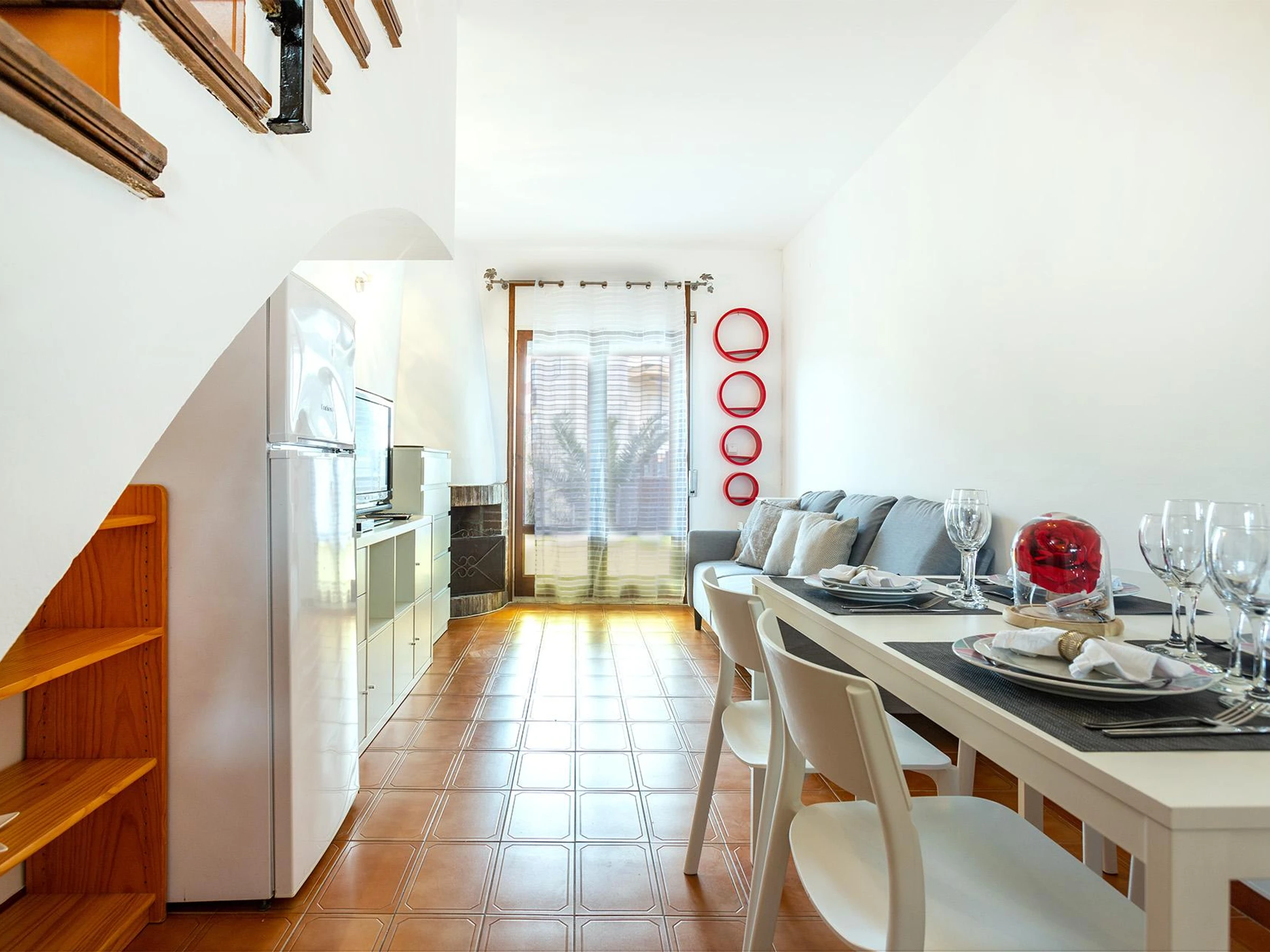 Bienvenue dans notre charmant maison à louer à Roses, Costa Brava ! Situé à seulement 1000 mètres de la magnifique plage de Santa Margarita, cette maison confortable est idéal pour ceux qui souhaitent passer des vacances reposantes près de la mer. Maison mitoyenne à Roses (Costa Brava) qui possède 2 chambres et capacité pour 5 personnes . Logement de 60 m² confortable et extérieur. Elle dispose de jardin, mobilier de jardin, clôture, 30 m² de terrasse, barbecue, cheminée, fer à repasser, chauffage pompe à chaleur, climatisations dans certaines chambres, garage même bâtiment, 1 Télévision, tv satellite (Langues: Espagnol, Anglais, Allemand, Français). La cuisine américaine, à vitrocéramique, est équipée avec réfrigérateur, four, vaisselle/couvert, ustensiles/cuisine, cafetière et grille pain. La maison est située dans un quartier idéal pour les familles, dans un complexe résidentiel. Dans le cas d'un groupe de jeunes, merci de consulter les conditions. La maison est située au: - 10 m du supermarché Suma - 800 m du restaurant Nou Aquaurium - 1 km de la plage de sable de Santa Margarida - 1 km de la gare routière de Santa Margarita - 3 km du parc aquatique Aquabrava - 3 km de la ville de Roses - 5 km du parc naturel du Cap de Creus - 5 km de la plage rocheuse de Cala Montjoi - 17 km du parcours de golf de Peralada - 17 km de la gare de Figueras - 80 km de l'aéroport de Gérone