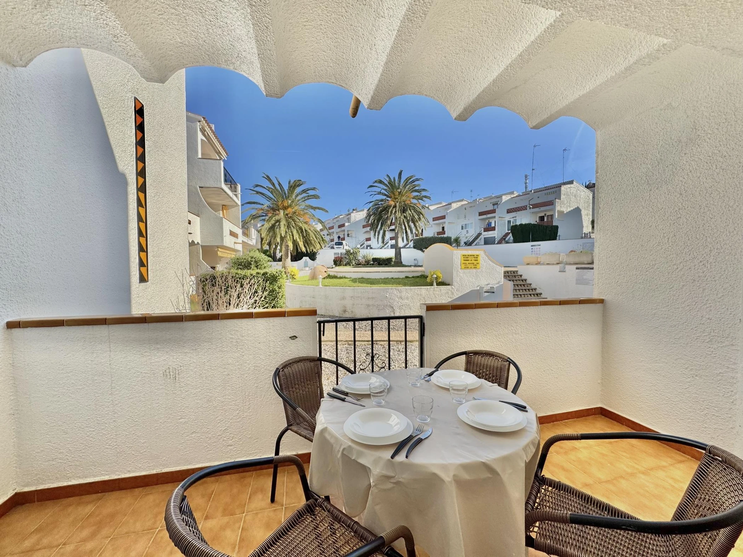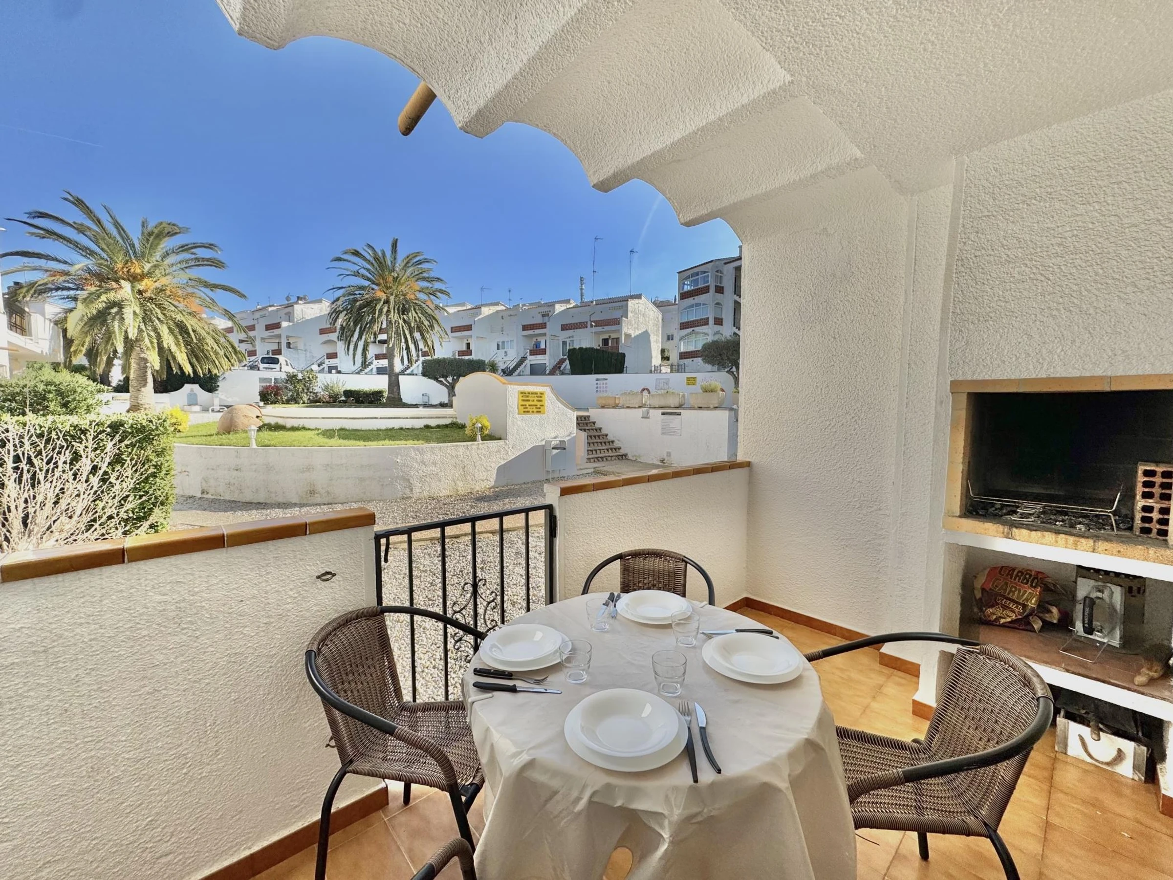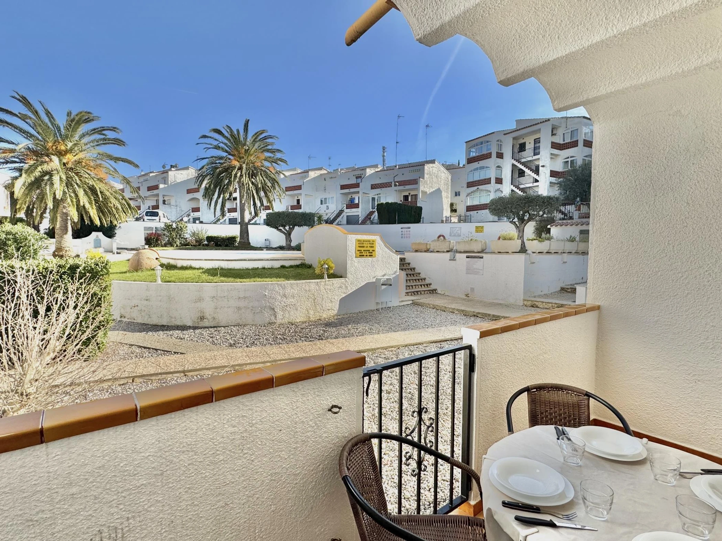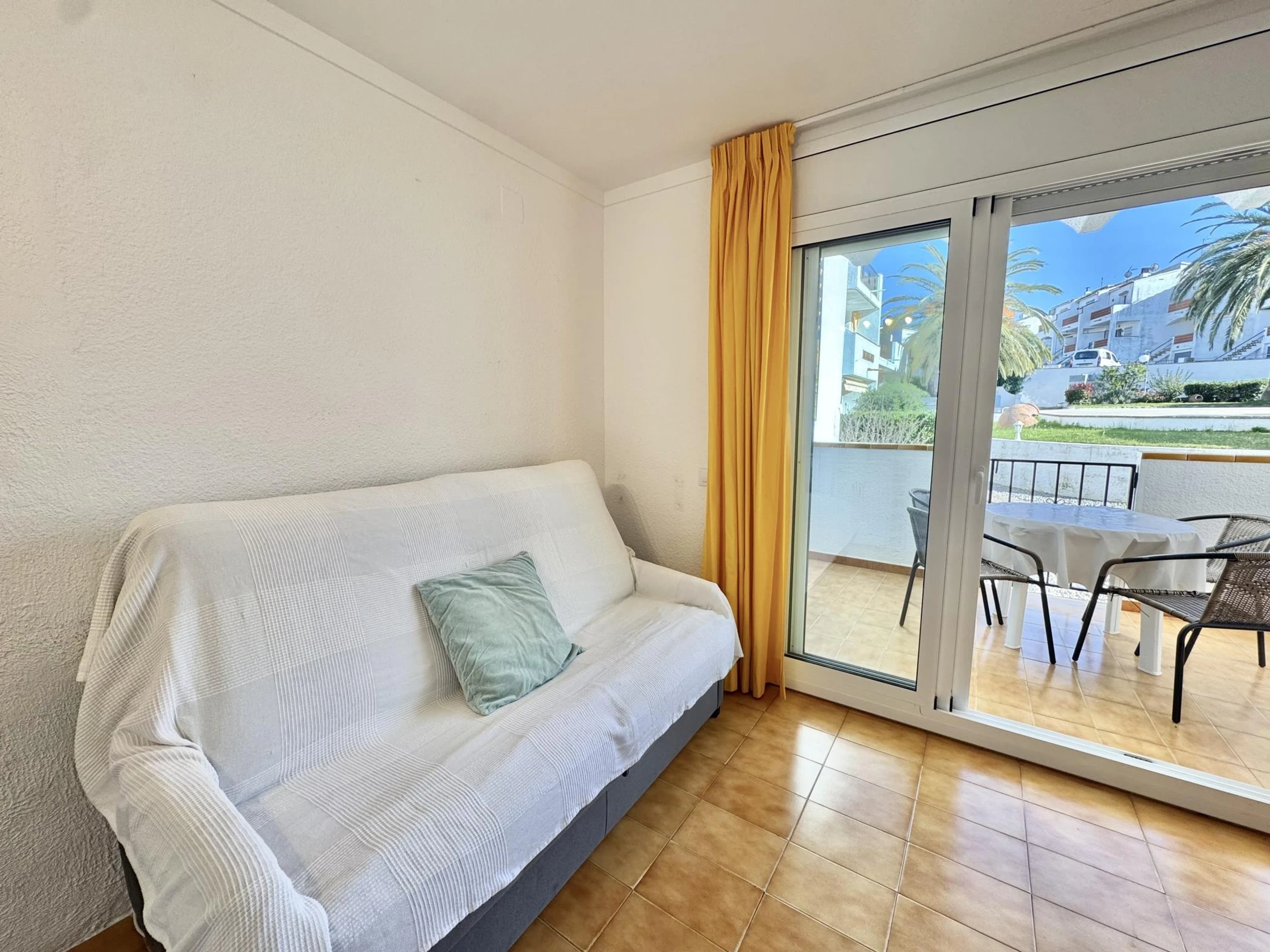 Bel appartement situé en rez-de-chaussée dans un immeuble avec piscine communautaire à 2.000m du centre de Roses, pour 1-4 personnes. Dans la zone du Puig Rom.