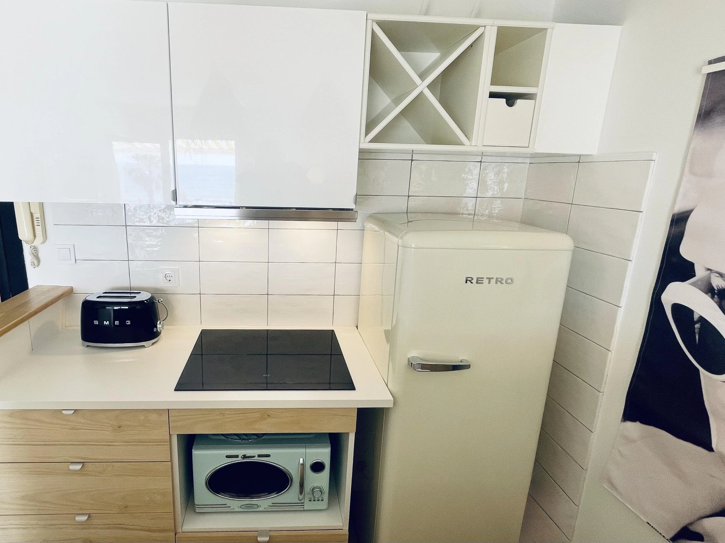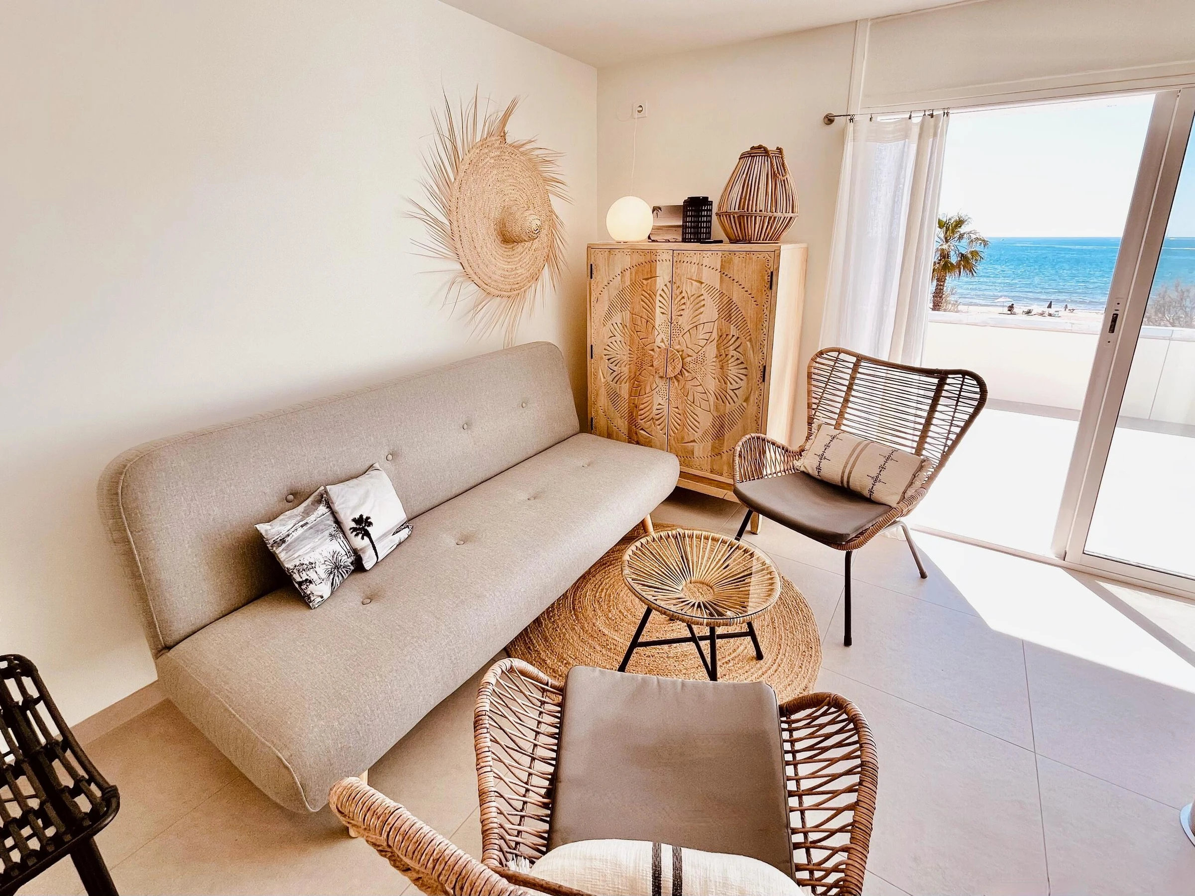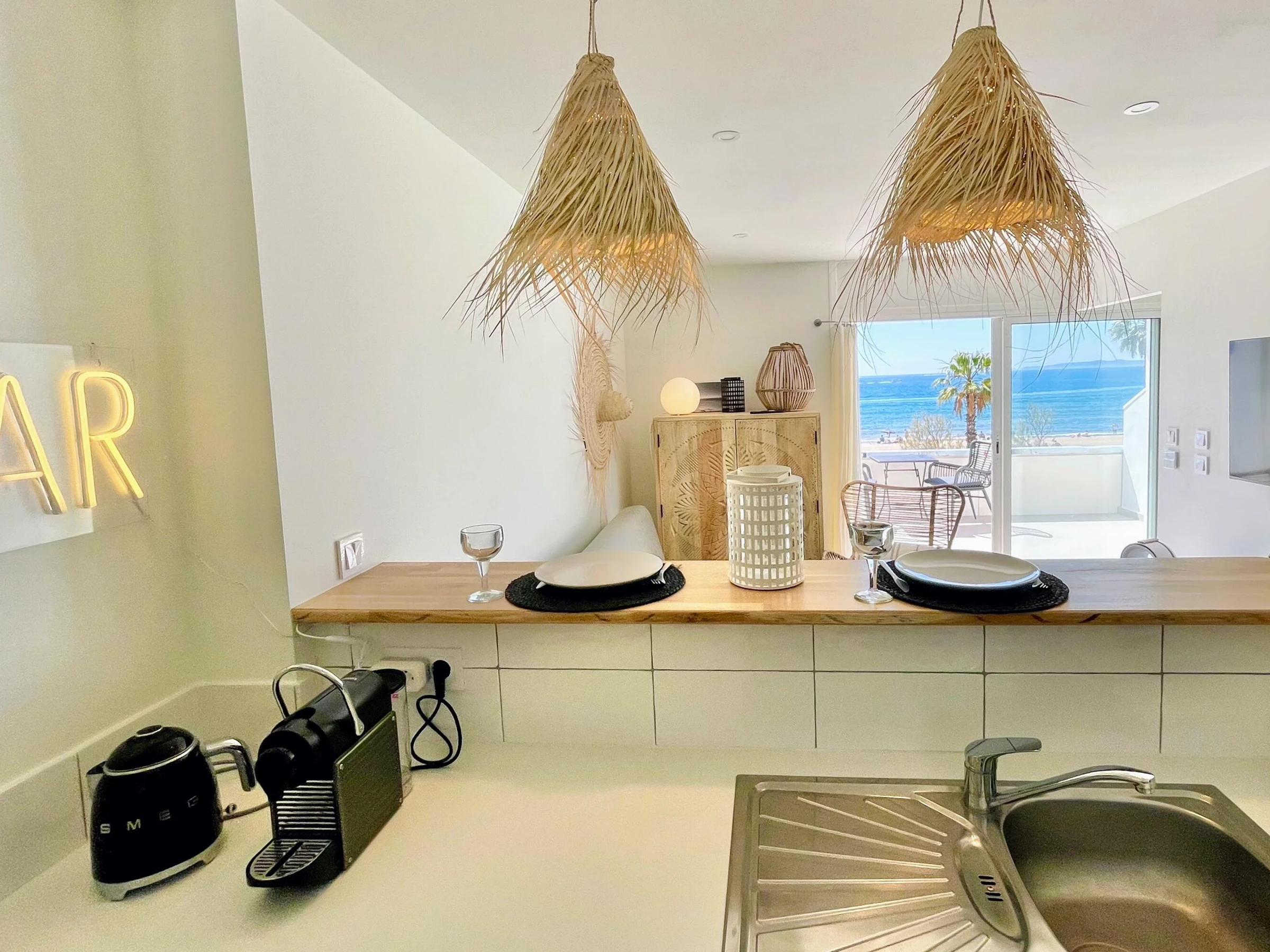 Bienvenue dans notre appartement moderne face à la mer, situé au deuxième étage avec ascenseur du bâtiment Roses Holiday Center. Il a 1 chambre et capacité pour 3 personnes. Logement confortable et moderne de 37 m², situé en front de mer, surplombant la mer avec une grande terrasse de 16m2. Il dispose d'une cuisine de style américain moderne, d'une salle de bains, d'une chambre double et d'un salon avec un canapé-lit pour 1 personne. Equipé de sets bistrot et de tabourets pour le petit-déjeuner et le dîner en intérieur ou en extérieur, où vous pourrez déguster un café Nespresso. Si vous n'allez pas dîner dans l'un des centaines de restaurants de Roses : la cuisinière électrique, le micro-ondes, l'élégant grille-pain et la bouilloire SMEG vous aideront à cuisiner vos repas à votre guise ou à vous inspirer du livre de recettes d'Audrey Hepburn que vous trouver dans la petite librairie. Vous disposerez d'un canapé pour regarder vos séries Netflix préférées sur une Smart TV de bonne taille. Vous pouvez utiliser le purificateur d'air Dyson Hot+Cool comme ventilateur de refroidissement en été ou comme radiateur pour les jours les plus froids. Et vous pouvez respirer de l'air purifié toute l'année. Enfin, vous pourrez vous détendre sur les chaises en bambou de la terrasse avec une vue imprenable sur la magnifique baie de Roses. De la cuisine, du salon, de la chambre et de la terrasse vous aurez une pleine vue sur la mer ! Rêver au son des vagues... L'appartement dispose d'une connexion Wi-Fi gratuite, d'un sèche-cheveux, de matériel de repassage, d'une piscine extérieure pour une baignade rafraîchissante. Au rez-de-chaussée, en front de mer, vous trouverez des glaciers, des crêperies, des bars à cocktails, des restaurants, un supermarché, des boutiques... et bien plus encore. Profitez de la piscine communautaire, ouverte du 01/06 au 15/10, avec des horaires élargis de 10h00 à 19h00. Venez vous amuser! Il suffit de sortir et de plonger dans la mer. Consulter dans le cas d'un groupe de jeunes. L'appartement est situé dans une zone idéale pour les couples ou les petites familles, face à la mer à Roses Costa Brava. Consulter dans le cas d'un groupe de jeunes. L'appartement est situé au : - 0 m de la plage de Santa Margatita - 150 m du supermarché d'un petit Super - 1 km de la gare routière de Santa Margarita - 3 km de la ville de Roses - 18 km du parcours de golf de Perelada - 20 km de la gare de Figueras - 68 km de l'aéroport de Gérone