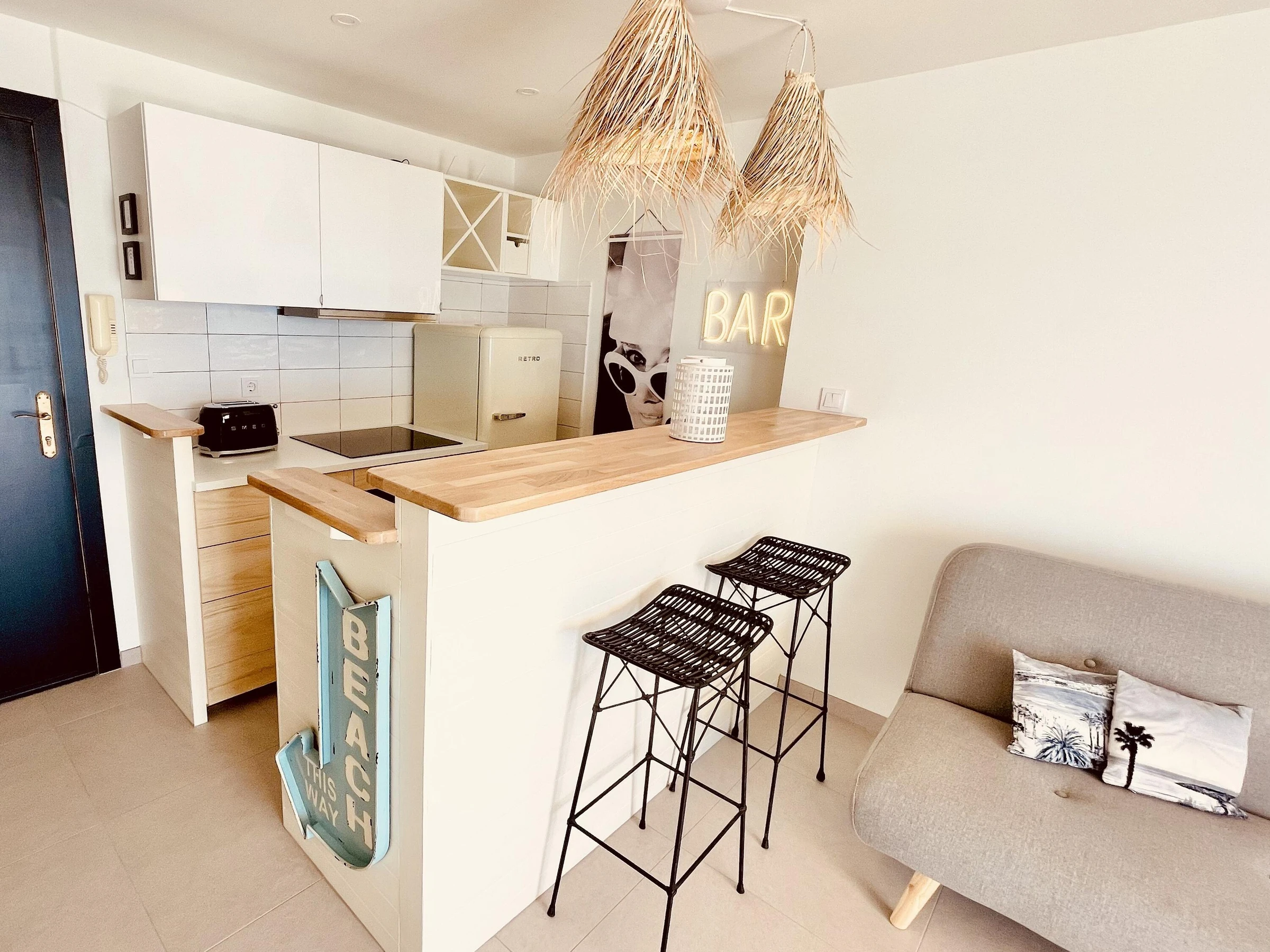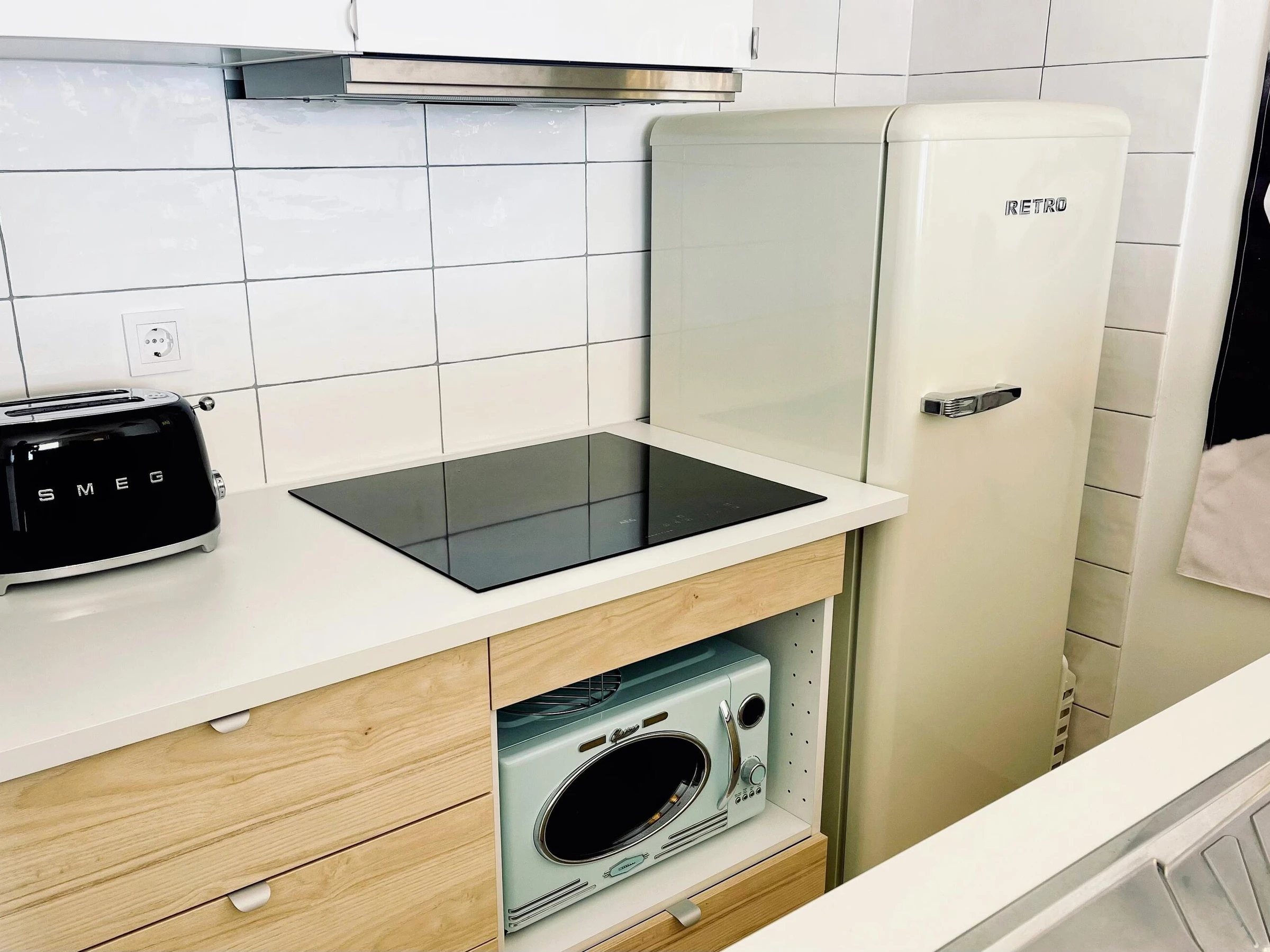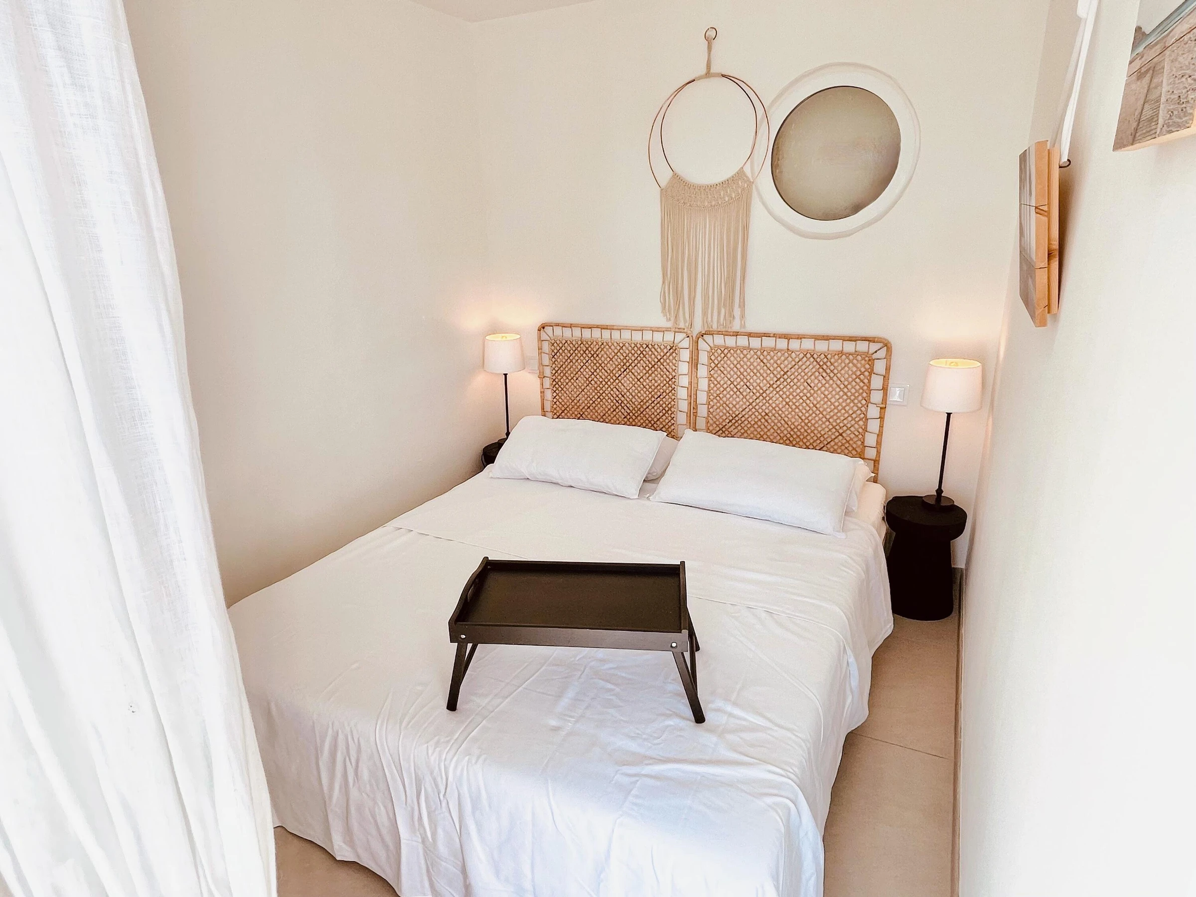 Bienvenue dans notre appartement moderne face à la mer, situé au deuxième étage avec ascenseur du bâtiment Roses Holiday Center. Il a 1 chambre et capacité pour 3 personnes. Logement confortable et moderne de 37 m², situé en front de mer, surplombant la mer avec une grande terrasse de 16m2. Il dispose d'une cuisine de style américain moderne, d'une salle de bains, d'une chambre double et d'un salon avec un canapé-lit pour 1 personne. Equipé de sets bistrot et de tabourets pour le petit-déjeuner et le dîner en intérieur ou en extérieur, où vous pourrez déguster un café Nespresso. Si vous n'allez pas dîner dans l'un des centaines de restaurants de Roses : la cuisinière électrique, le micro-ondes, l'élégant grille-pain et la bouilloire SMEG vous aideront à cuisiner vos repas à votre guise ou à vous inspirer du livre de recettes d'Audrey Hepburn que vous trouver dans la petite librairie. Vous disposerez d'un canapé pour regarder vos séries Netflix préférées sur une Smart TV de bonne taille. Vous pouvez utiliser le purificateur d'air Dyson Hot+Cool comme ventilateur de refroidissement en été ou comme radiateur pour les jours les plus froids. Et vous pouvez respirer de l'air purifié toute l'année. Enfin, vous pourrez vous détendre sur les chaises en bambou de la terrasse avec une vue imprenable sur la magnifique baie de Roses. De la cuisine, du salon, de la chambre et de la terrasse vous aurez une pleine vue sur la mer ! Rêver au son des vagues... L'appartement dispose d'une connexion Wi-Fi gratuite, d'un sèche-cheveux, de matériel de repassage, d'une piscine extérieure pour une baignade rafraîchissante. Au rez-de-chaussée, en front de mer, vous trouverez des glaciers, des crêperies, des bars à cocktails, des restaurants, un supermarché, des boutiques... et bien plus encore. Profitez de la piscine communautaire, ouverte du 01/06 au 15/10, avec des horaires élargis de 10h00 à 19h00. Venez vous amuser! Il suffit de sortir et de plonger dans la mer. Consulter dans le cas d'un groupe de jeunes. L'appartement est situé dans une zone idéale pour les couples ou les petites familles, face à la mer à Roses Costa Brava. Consulter dans le cas d'un groupe de jeunes. L'appartement est situé au : - 0 m de la plage de Santa Margatita - 150 m du supermarché d'un petit Super - 1 km de la gare routière de Santa Margarita - 3 km de la ville de Roses - 18 km du parcours de golf de Perelada - 20 km de la gare de Figueras - 68 km de l'aéroport de Gérone