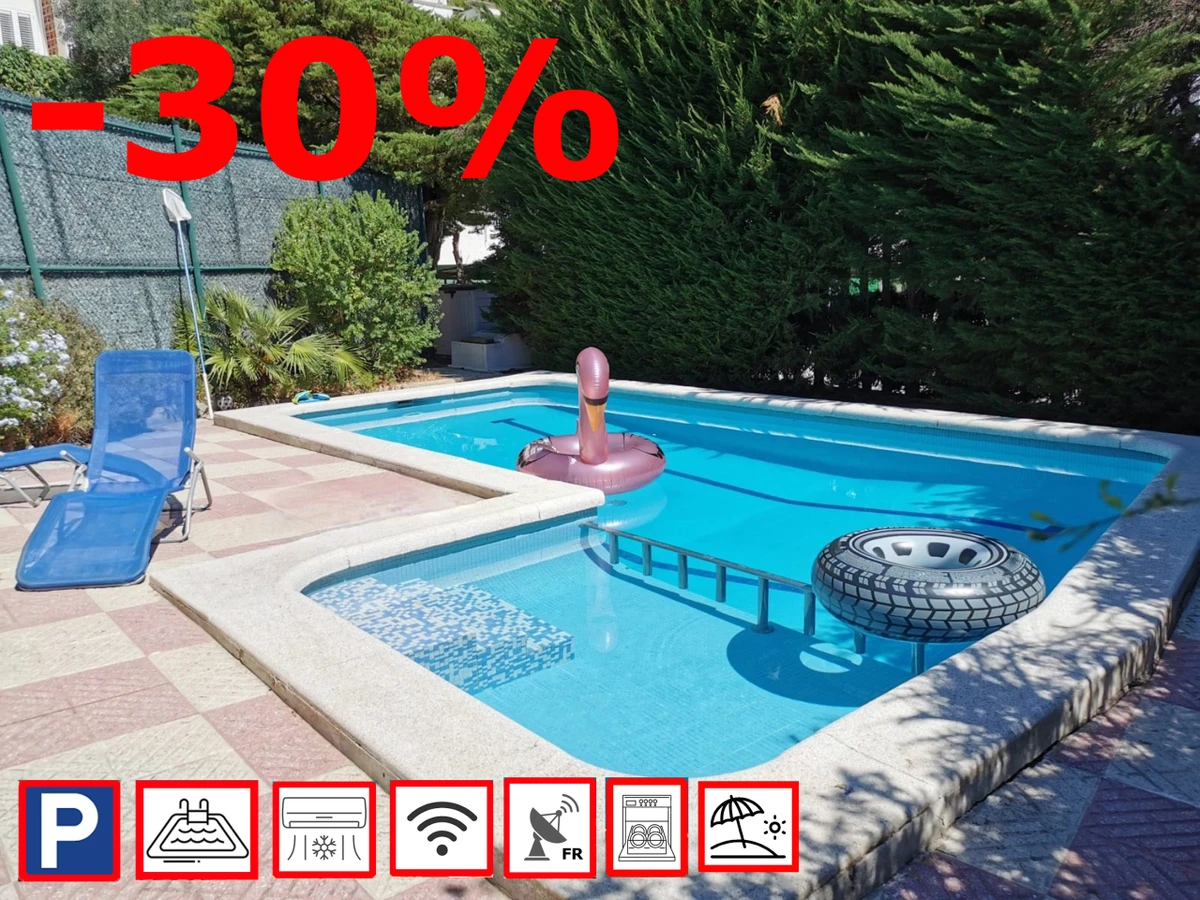 Elle dispose de mobilier de jardin, 12 m² de terrasse, lave-linge, accès internet (wifi), chauffage pompe à chaleur, climatisation dans tout le logement, piscine collective, garage même bâtiment, 1 Télévision, tv satellite (Langues: Français).