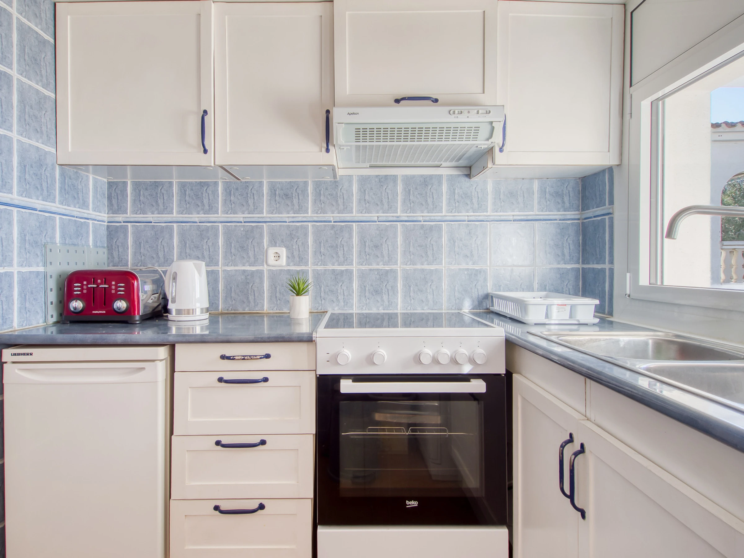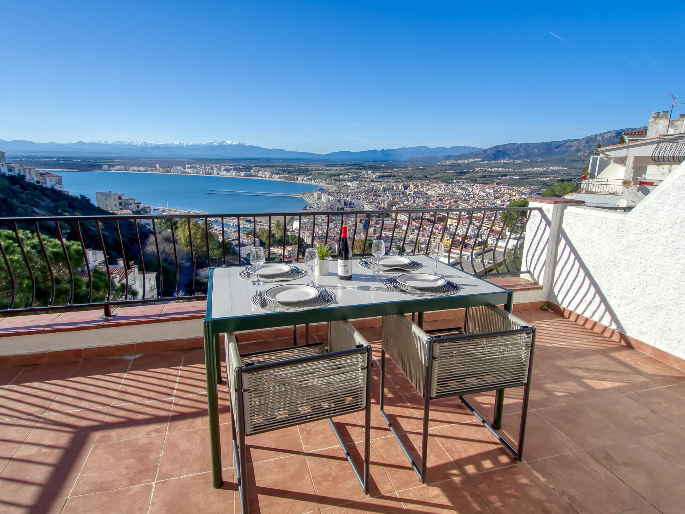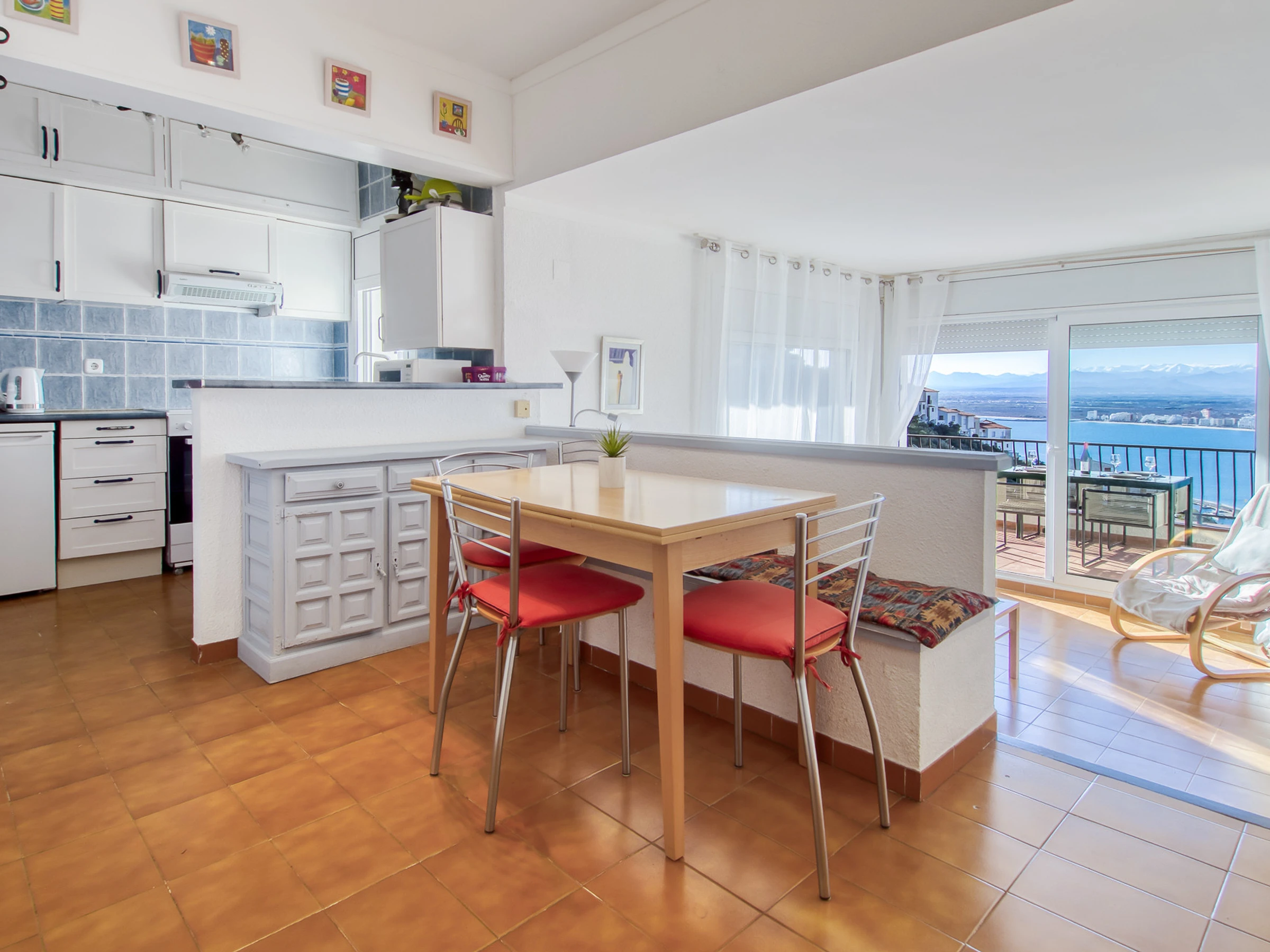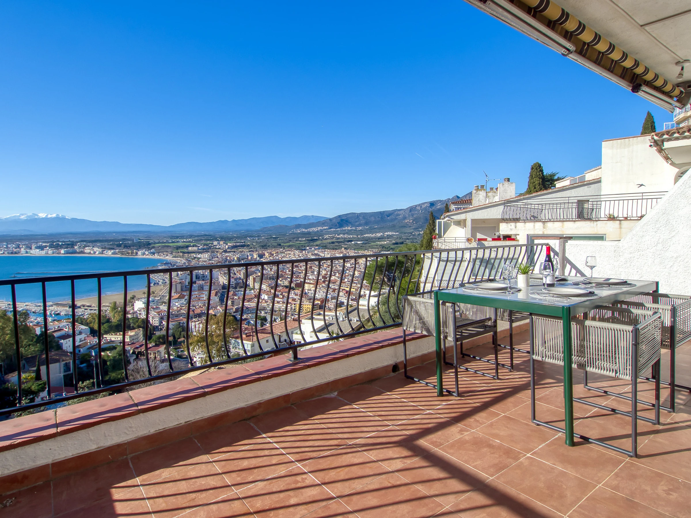 Appartement équipé tous soins, avec climatisation, situé sur la colline Puig Rom à 1 km de la jolie plage de Canyelles Petites. Impressionnante vue panoramique sur la baie et les montagnes.
