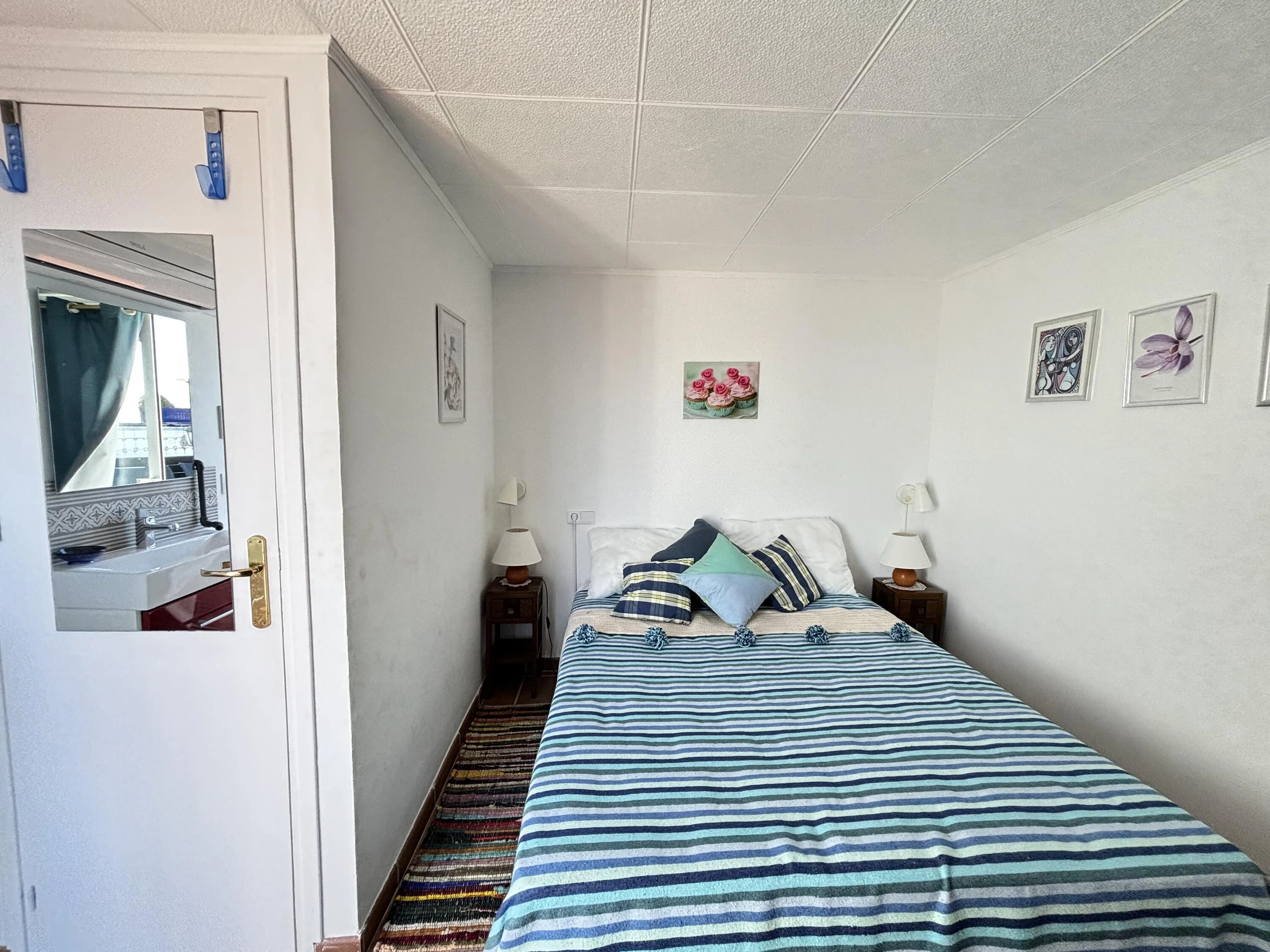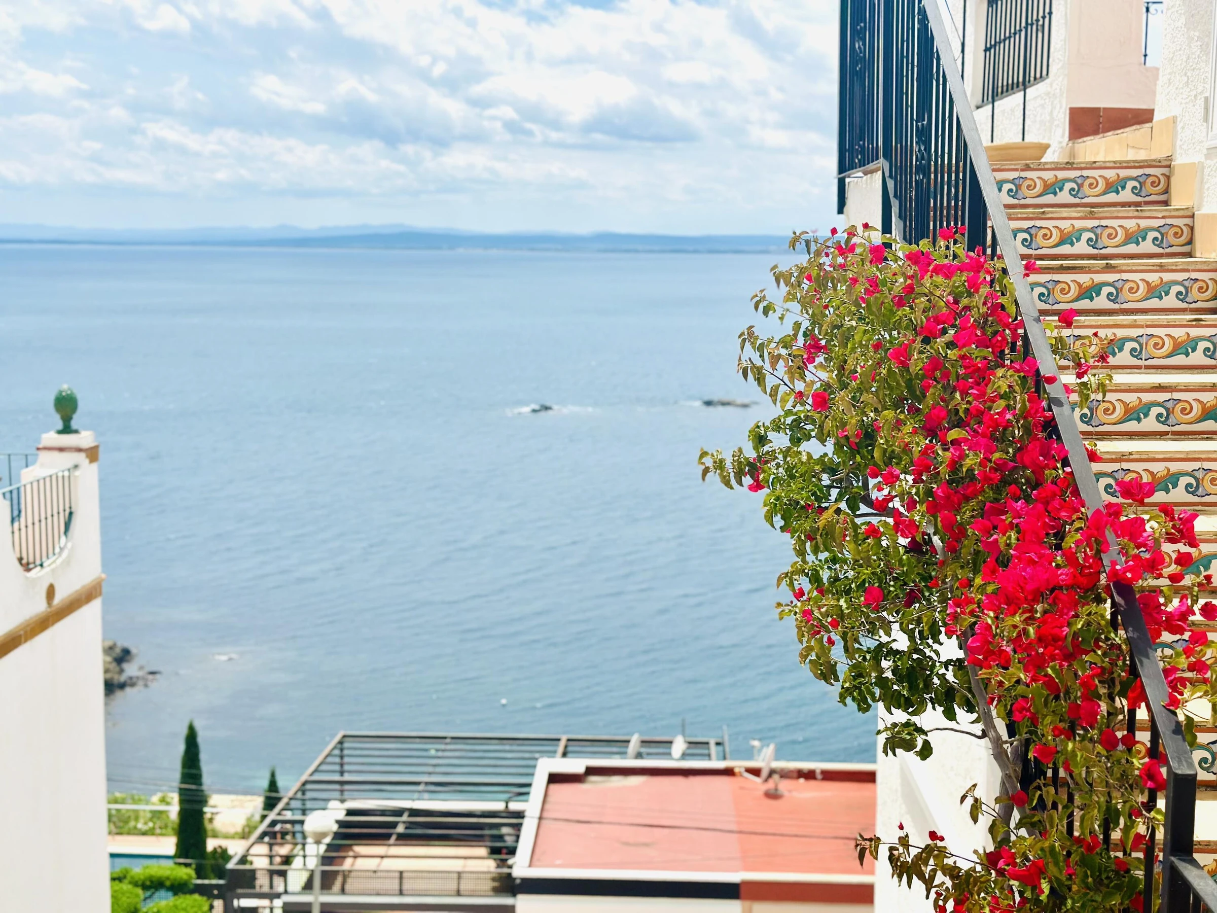 Bienvenue à Casa Boganvillas, un refuge méditerranéen conçu pour ceux qui recherchent tranquillité, confort et vues à couper le souffle. Cette élégante maison mitoyenne, pouvant accueillir jusqu’à 6 personnes, dispose de3 chambres spacieuses et de pièces lumineuses invitant à la détente. Chaque pièce est équipée declimatisation, garantissant une atmosphère fraîche et agréable même pendant les journées les plus chaudes. Depuis la terrasse privée et les espaces extérieurs, vous pourrez profiter d’ incroyables vues sur la mer, tandis que le mobilier de jardin et le barbecue permettent d’organiser des dîners inoubliables en plein air. La cuisine moderne et entièrement équipée facilite la préparation de vos plats favoris, et la piscine commune, ouverte de mai à septembre, ajoute une touche de fraîcheur à vos moments de détente. Située à seulement 1,2 km du centre de Roses et de la plage, cette propriété allie intimité et proximité des commerces, restaurants et de la vie côtière animée. Le parking privé assure un confort maximal pendant votre séjour. Veuillez noter que la maison n’est pas adaptée aux personnes à mobilité réduite, l’accès aux différents étages se faisant par des escaliers.
